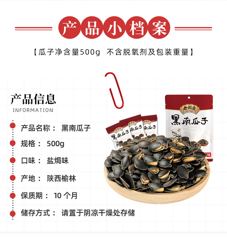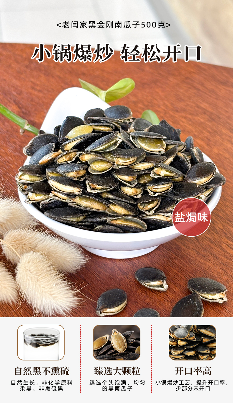 老闫家毛边黑南瓜子500g盐焗味精选黑南瓜子陕北特产南瓜子