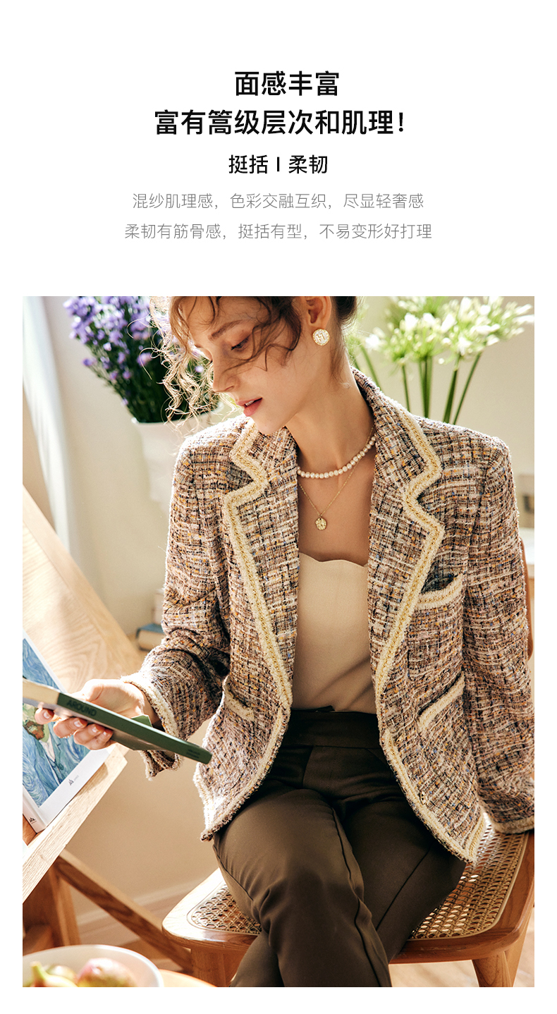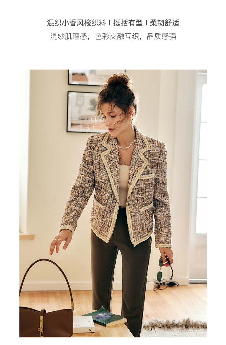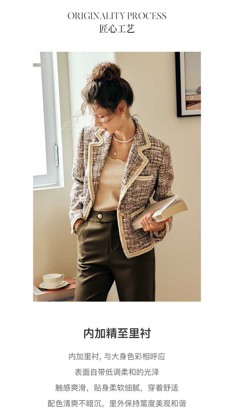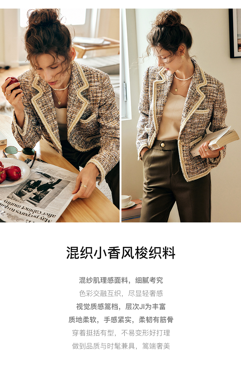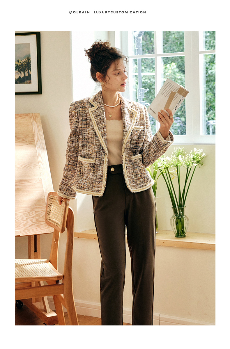 OLrain欧芮儿法式浅咖色西装外套女早秋2022年新款骑士小香风上衣