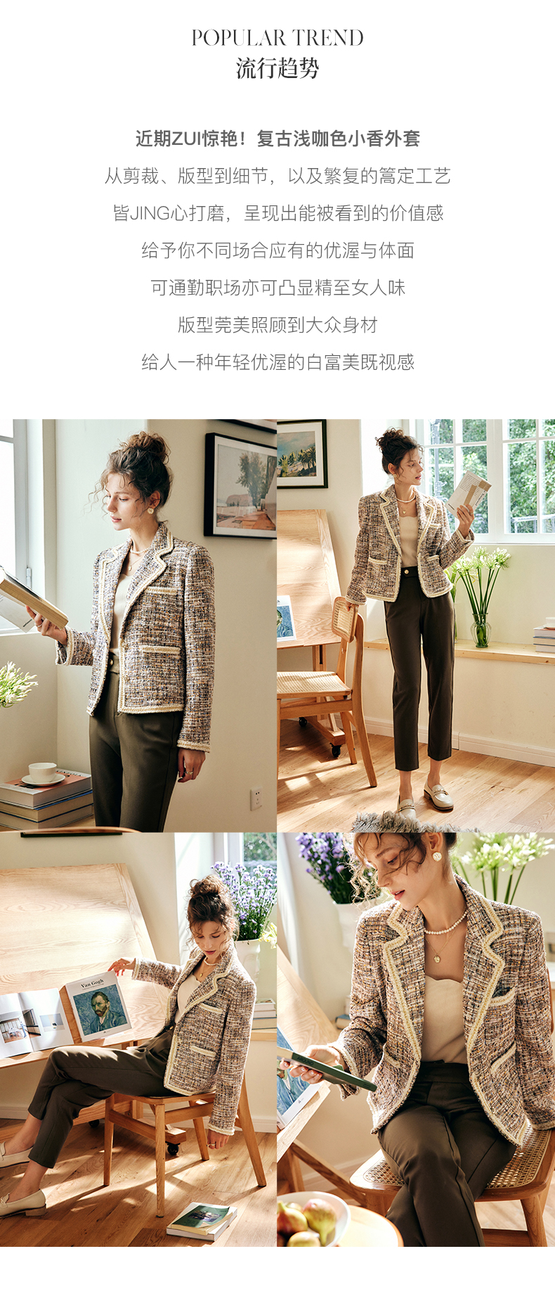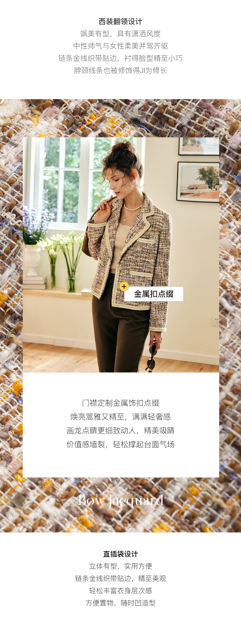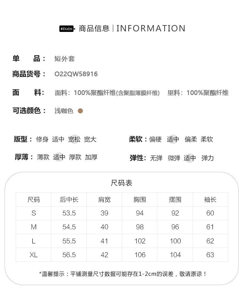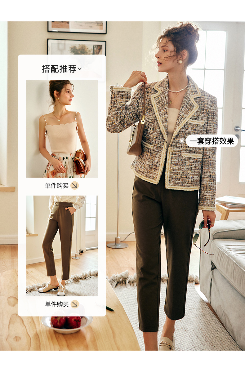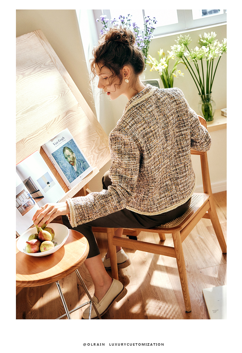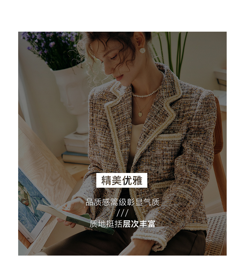 OLrain欧芮儿法式浅咖色西装外套女早秋2022年新款骑士小香风上衣