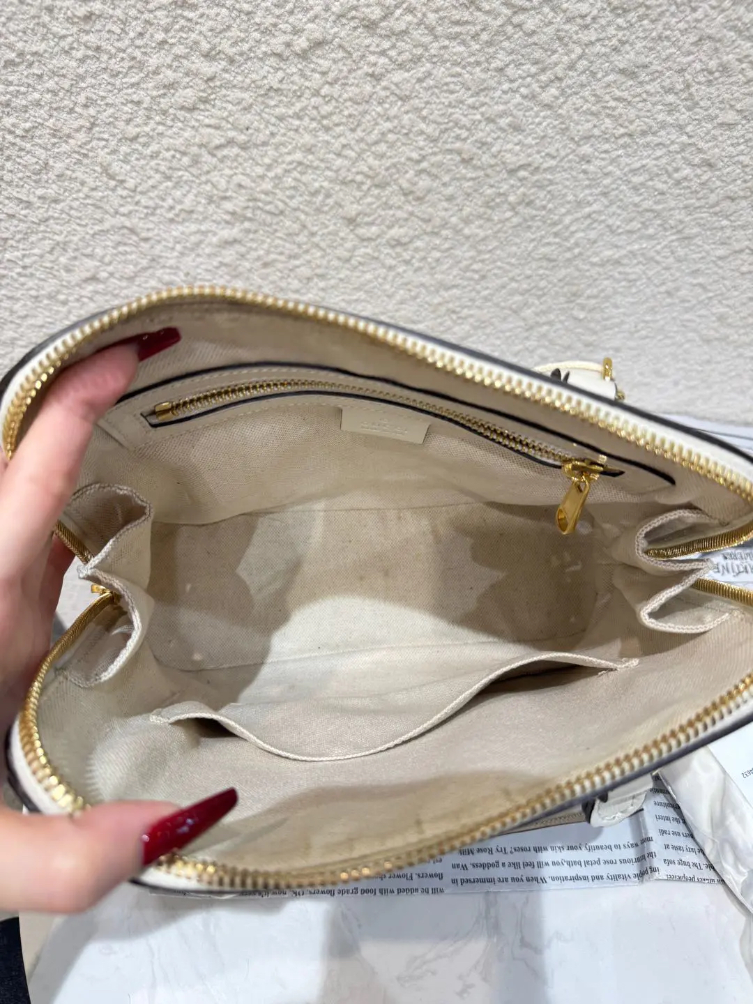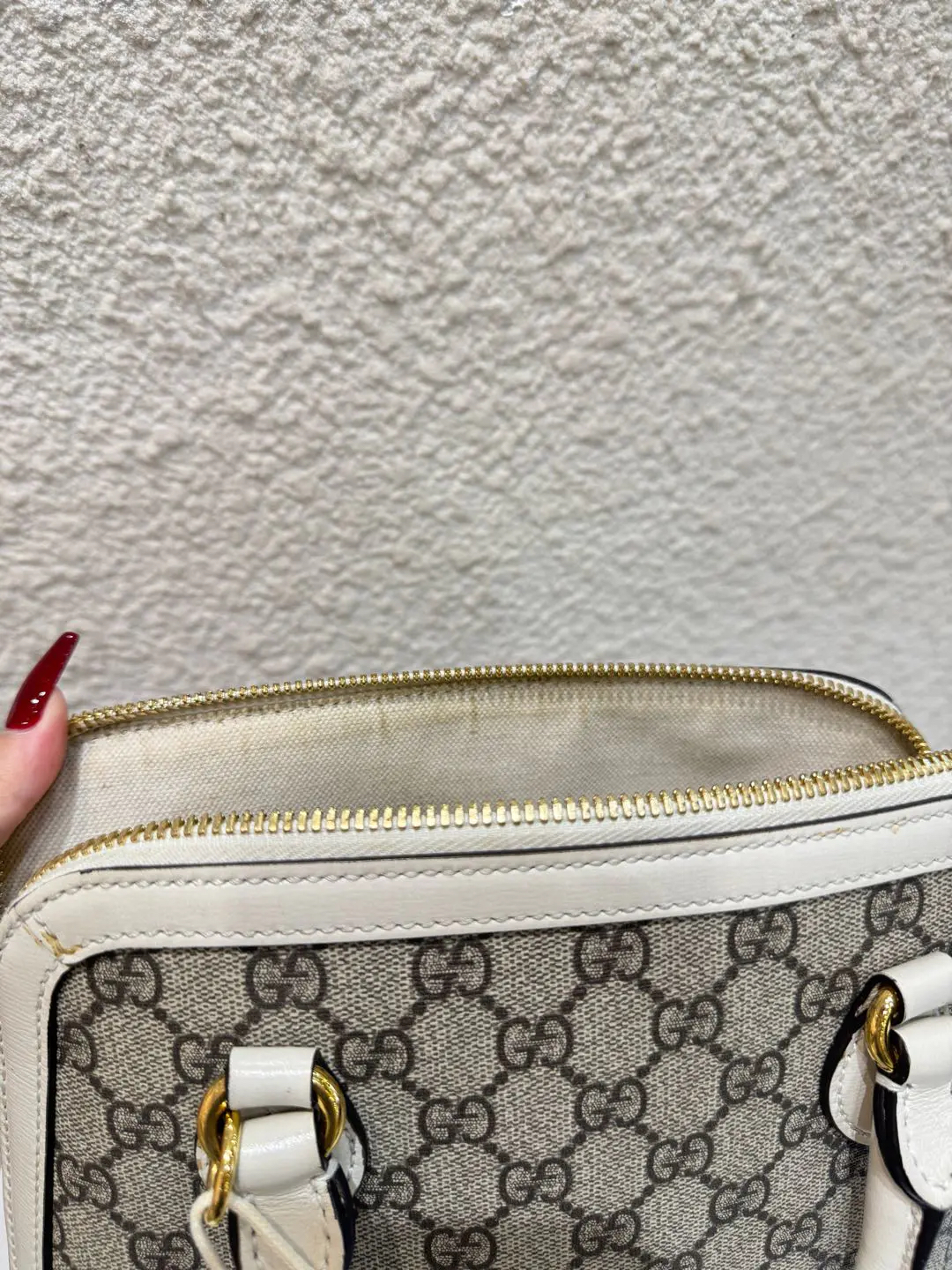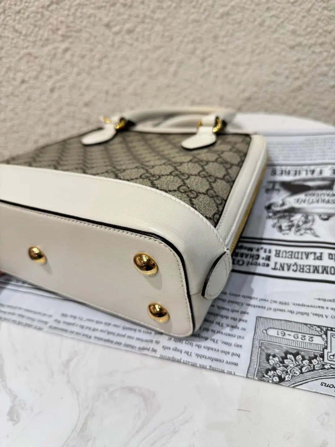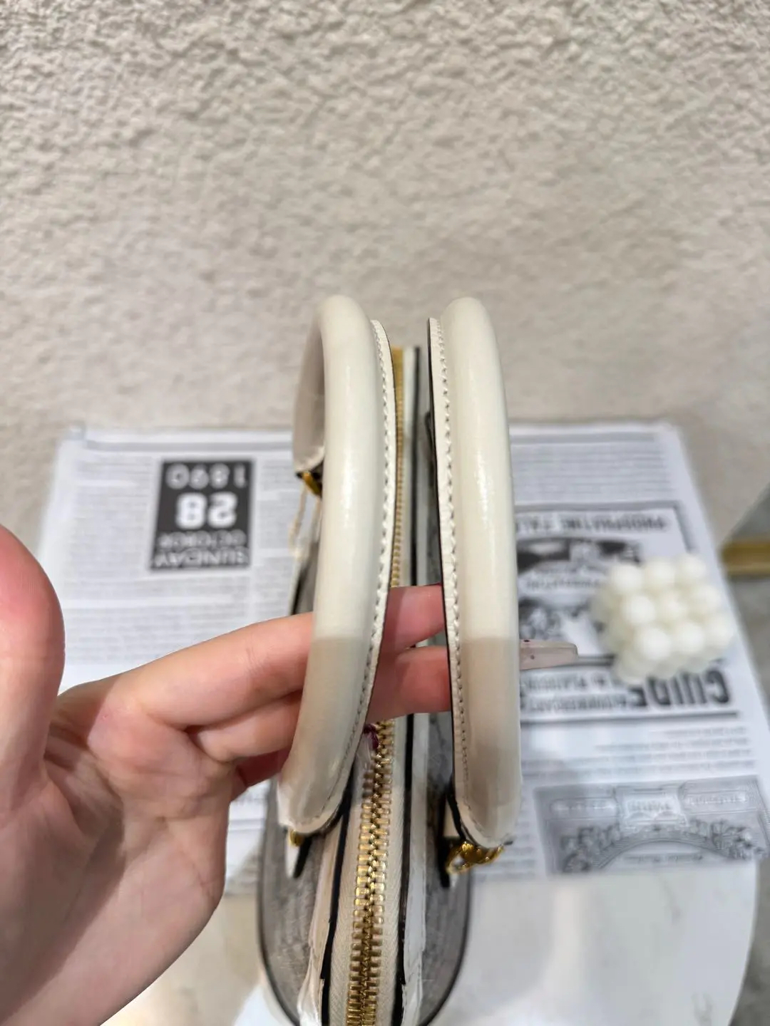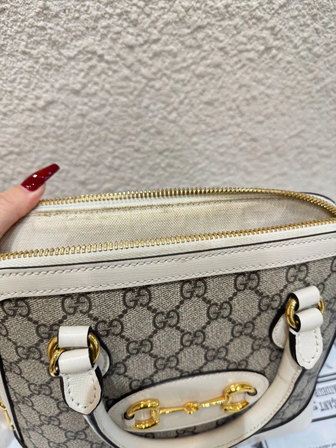 【商品详情】正品二手 Gucci Horsebit 1955 小号 白金 老花拼皮 贝壳包🐚95新 25*22 配件:肩带 防尘袋。内包口和金属正常使用感。复古百搭