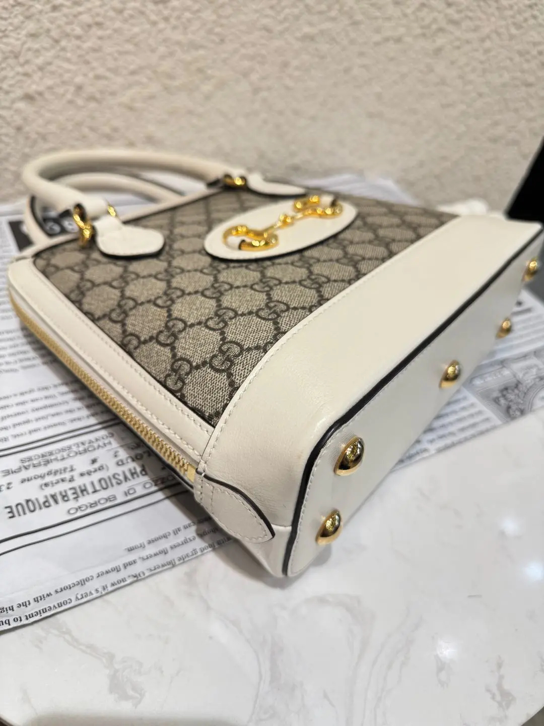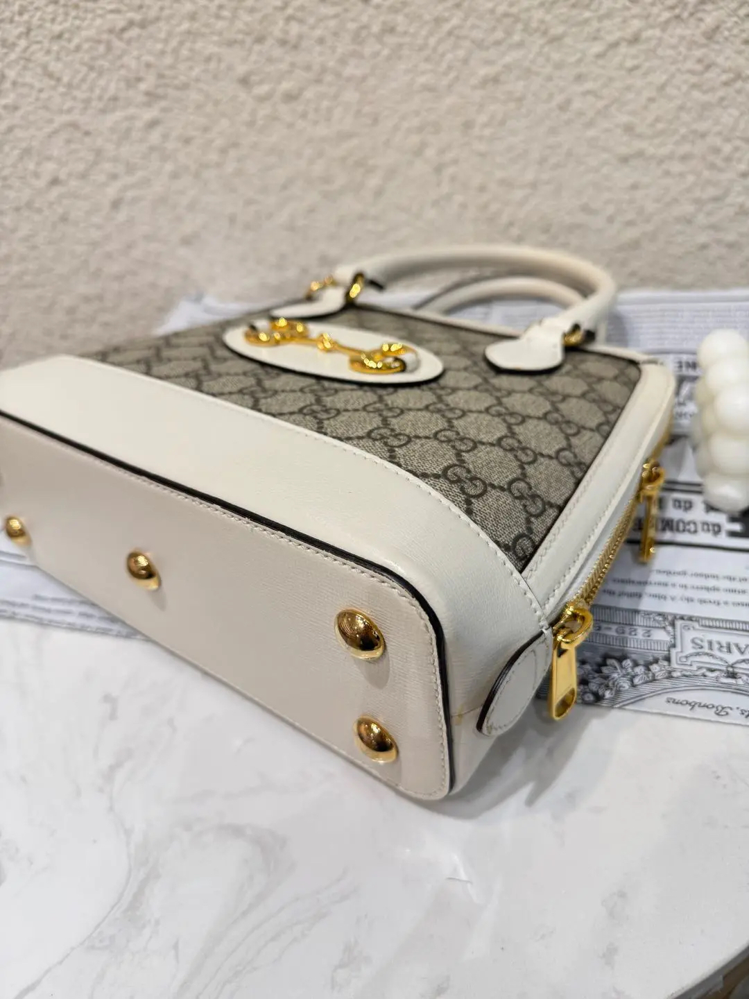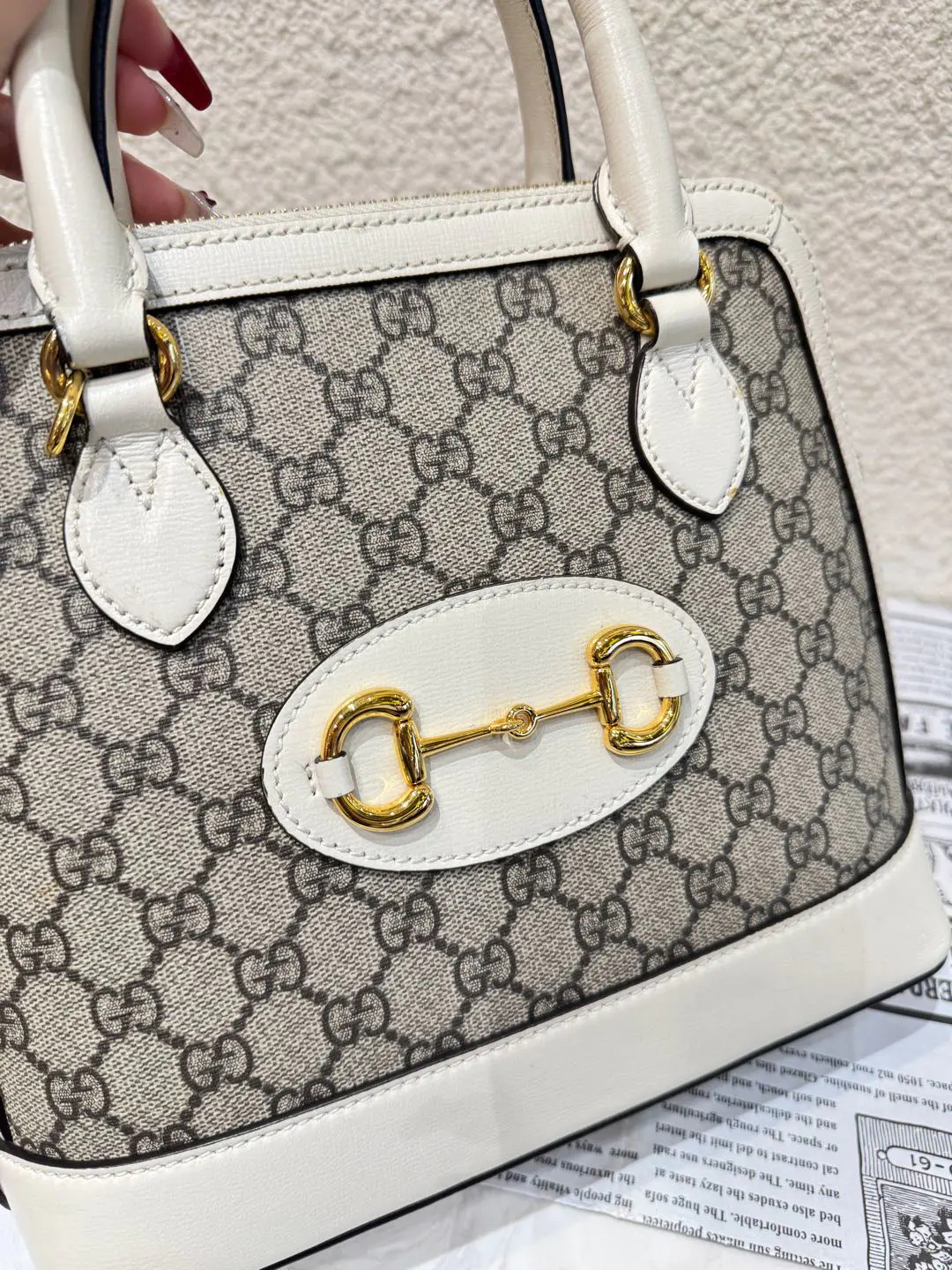 Gucci Horsebit 1955 小号 白金 老花拼皮 贝壳包