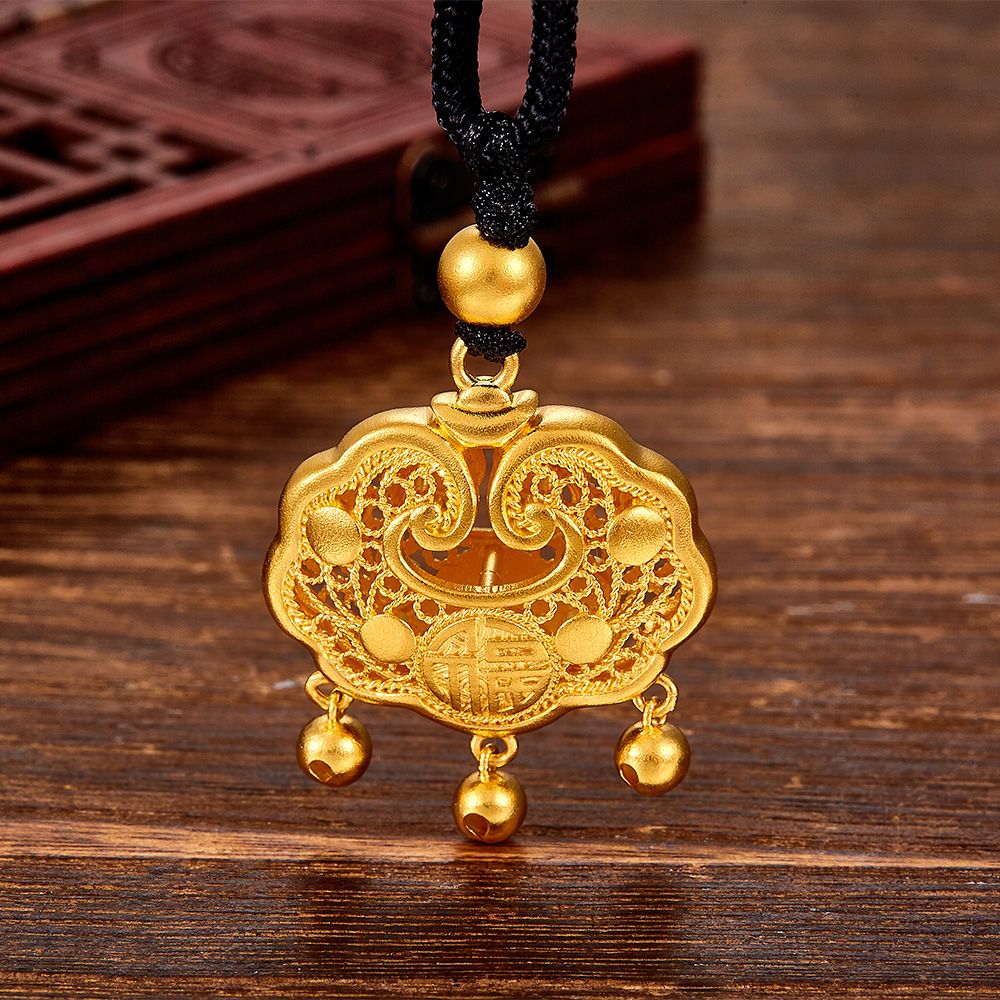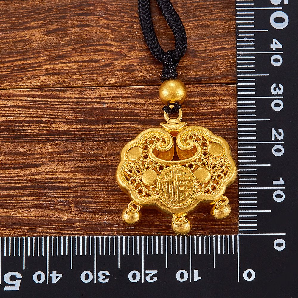 【限时克减128元】足金999 #儿童/宝宝 古法镂空福字铃铛如意锁包挂绳吊坠(含珠子)(YGFDZ00003-2)(预售产品下单后不退款不退货不换货不补差价)