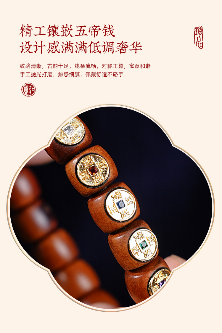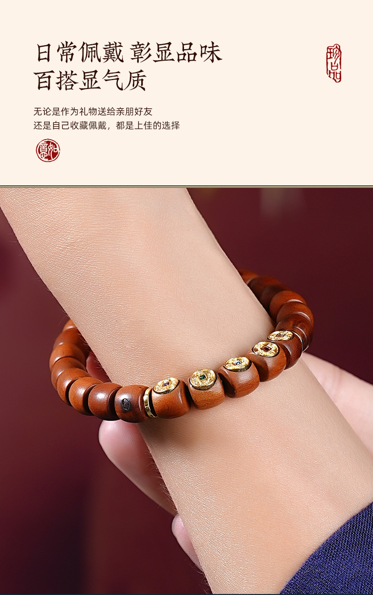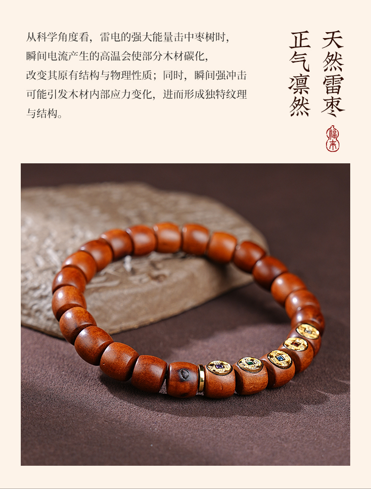 老式桶珠雷击木手串复古男女气质百搭手链生日礼物
