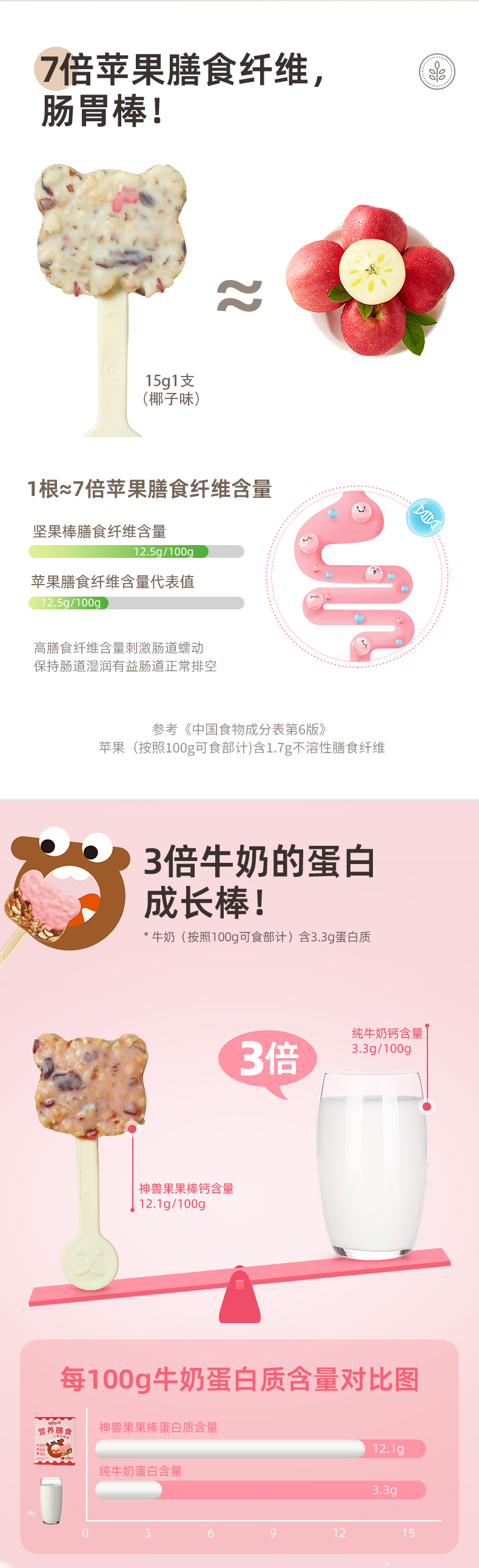 3岁+ | 神兽果果 营养膳食儿童坚果棒 DHA益生元 草莓椰子 宝宝辅食零食成长坚果棒营养能量棒 单只装(新旧包装随机发)