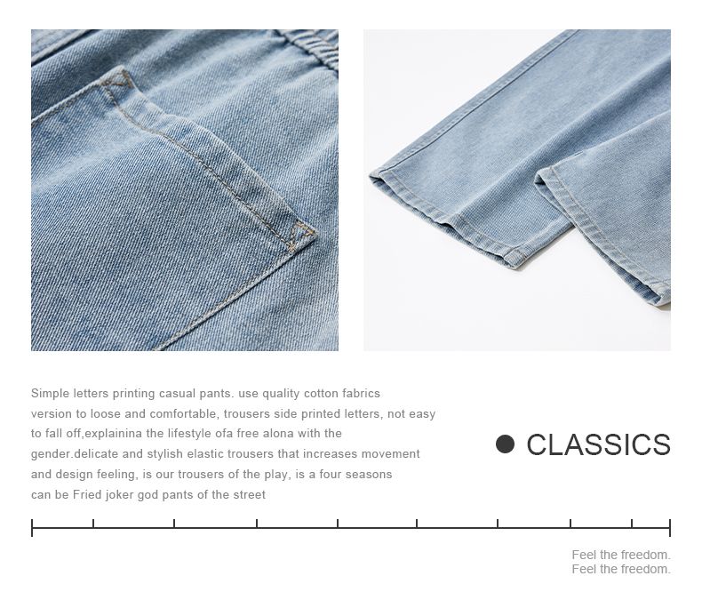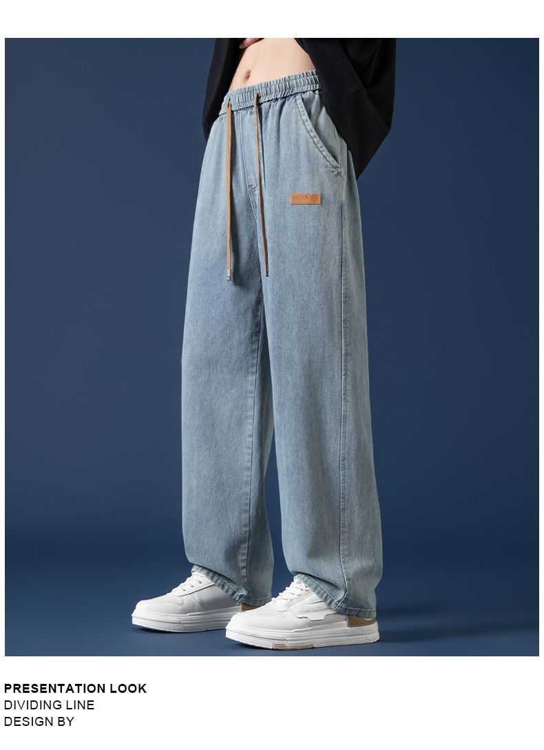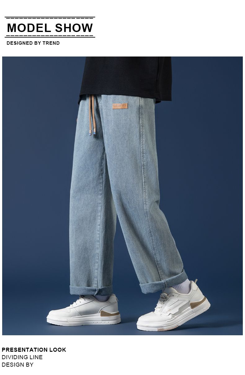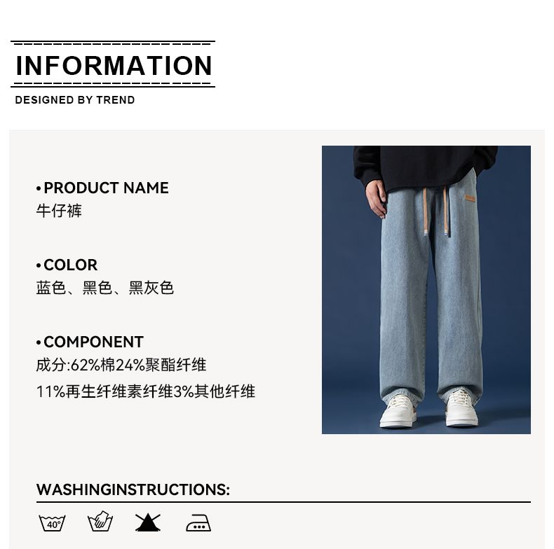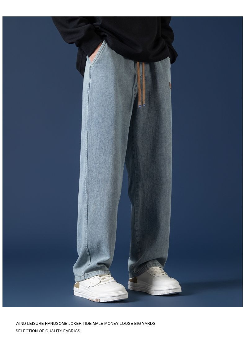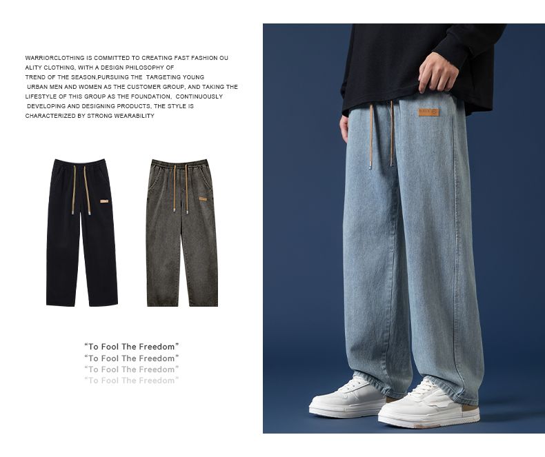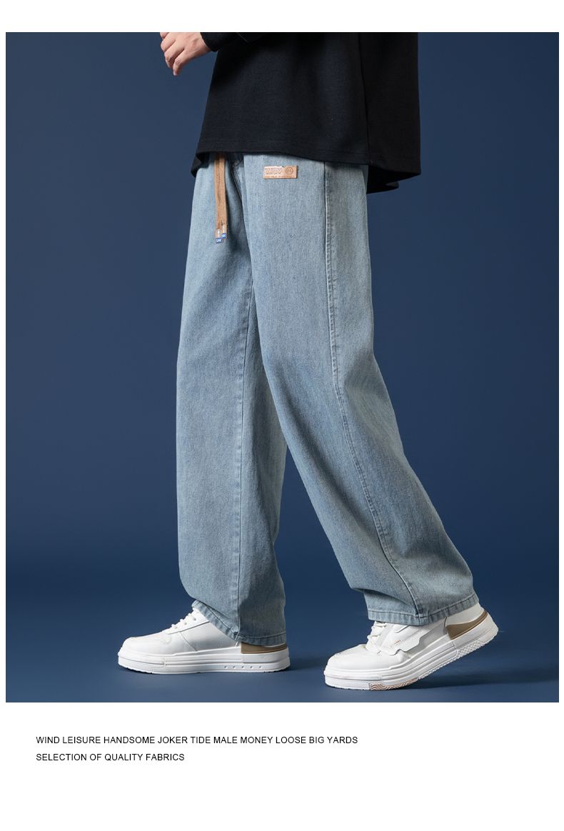 回力牛仔裤男秋冬款2024新款加绒美式高街休闲长裤宽松直筒裤子男