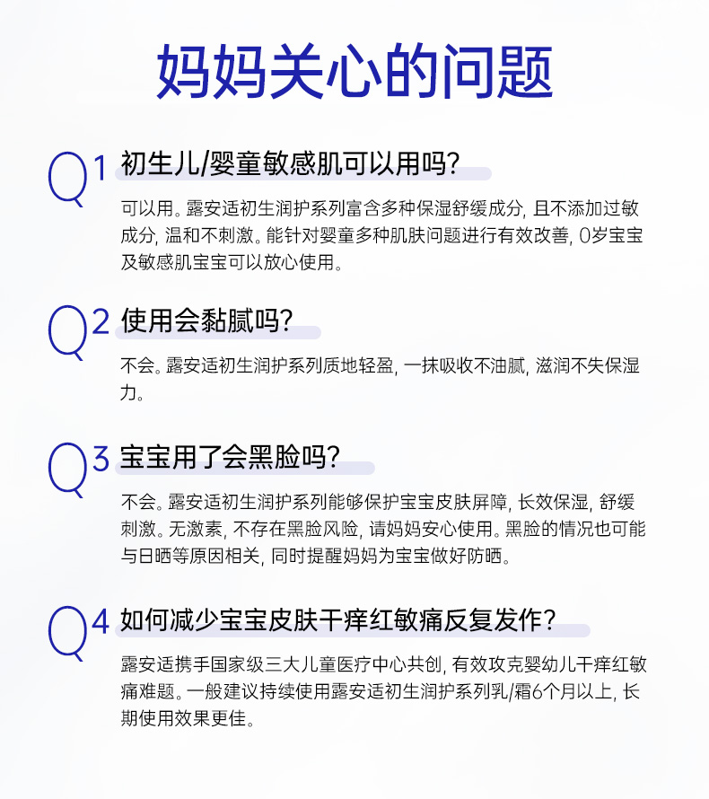 - Lelch®露安适,一直致力于研究初生婴儿、婴幼儿、儿童、孕妇及新任妈妈们幼嫩的皮肤,研制出合适的健康护理产品。