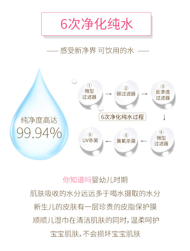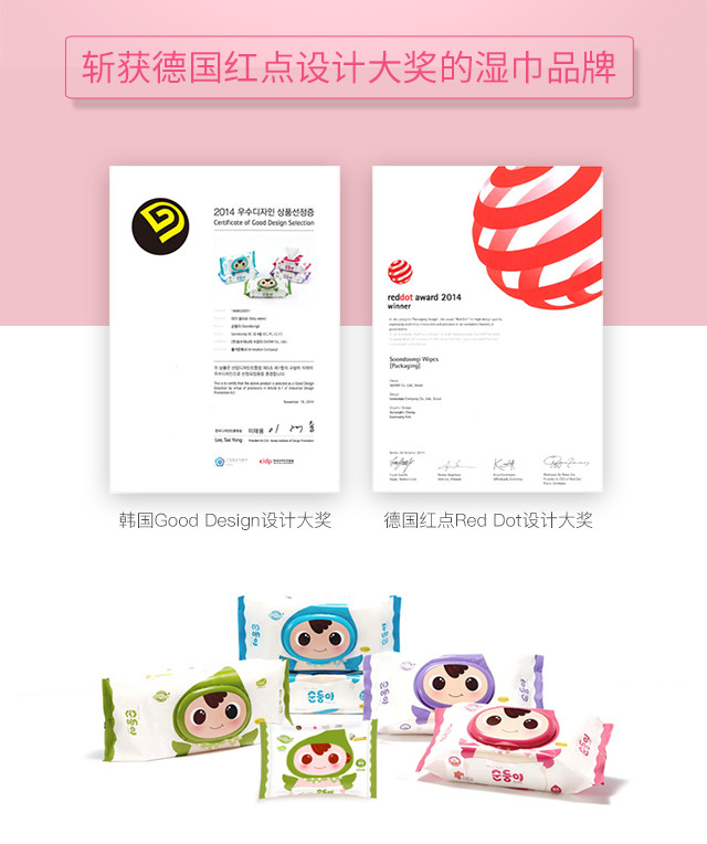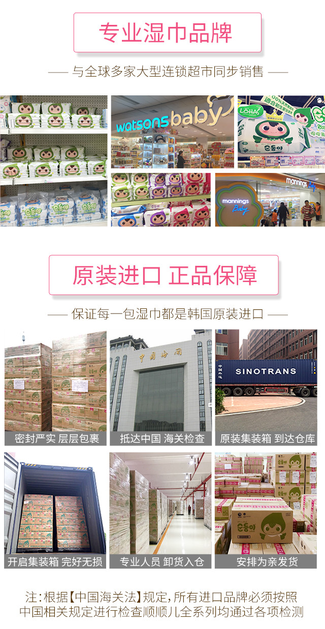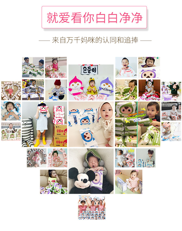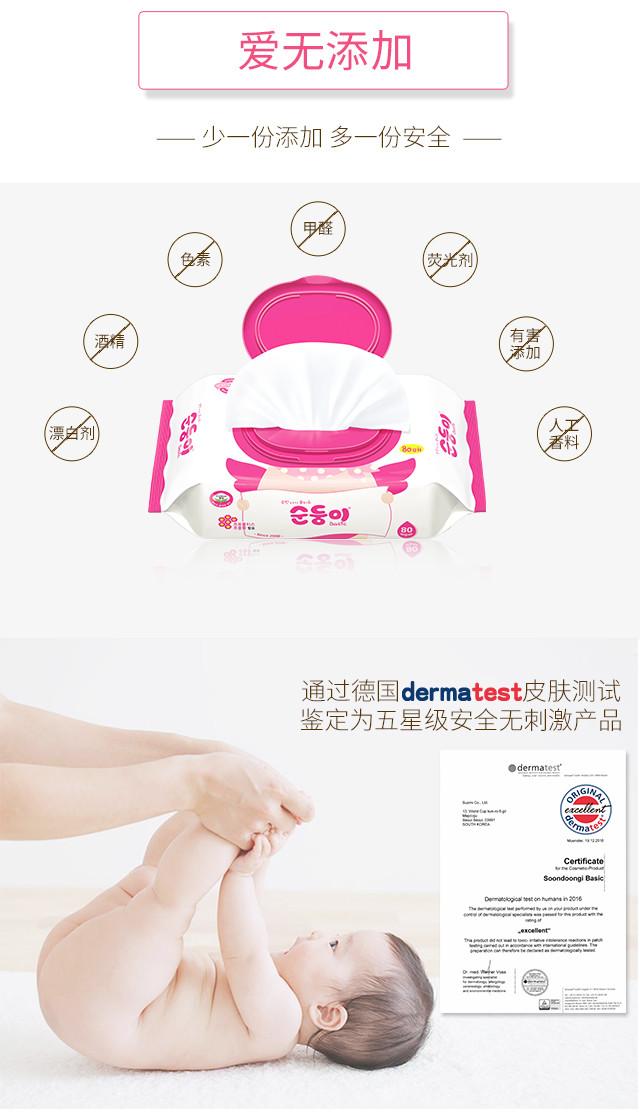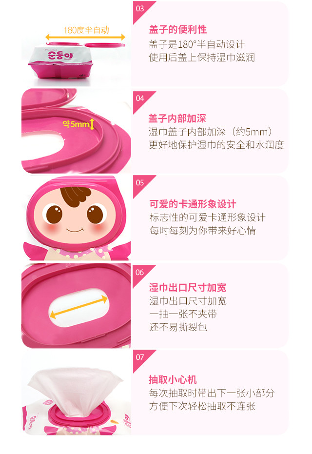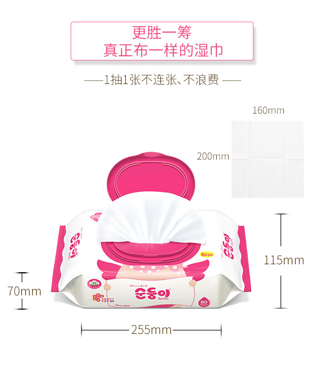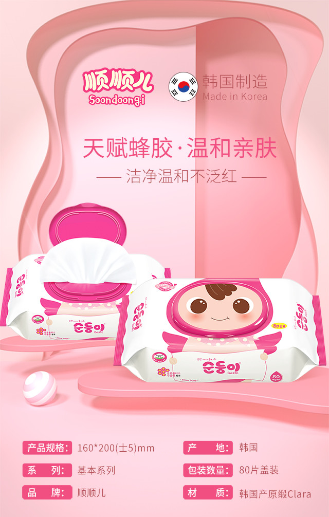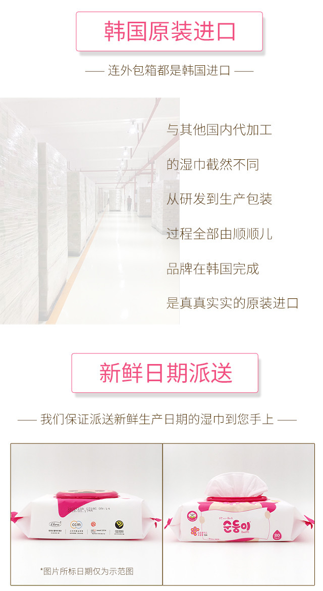 顺顺儿韩国原装进口婴儿湿巾粉色80抽10包
