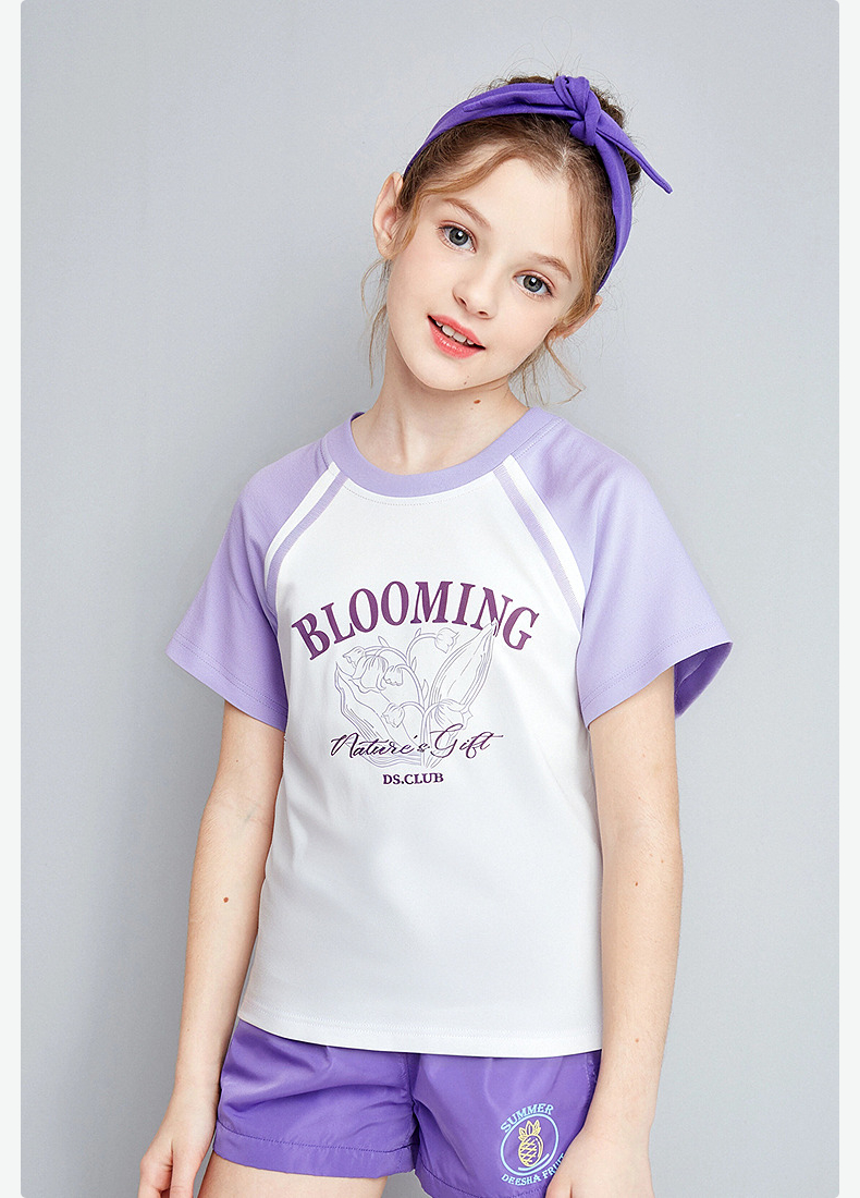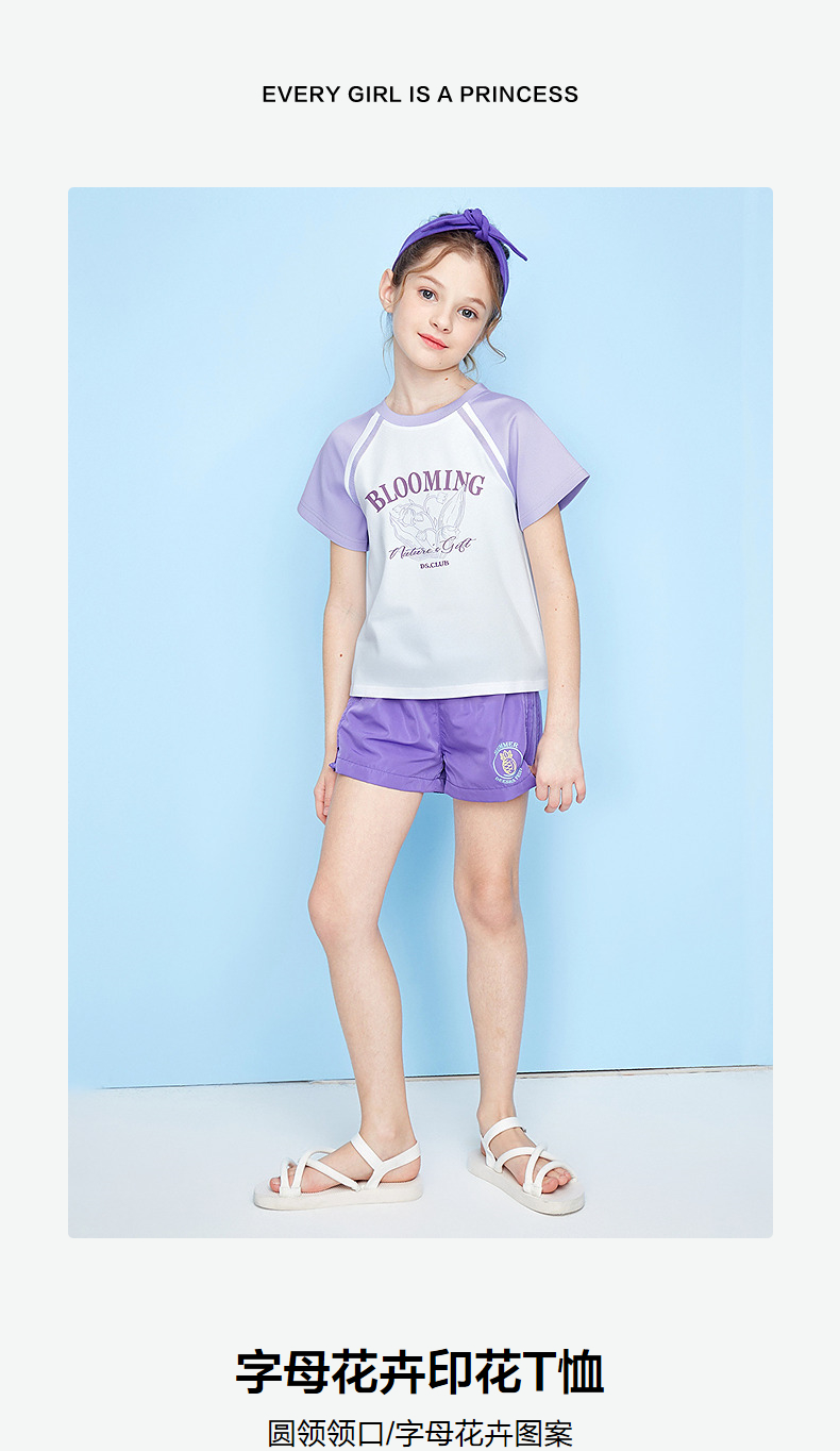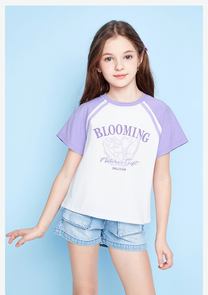 笛莎Deesha 童装女童T恤2025夏新款女童字母花卉印花T恤