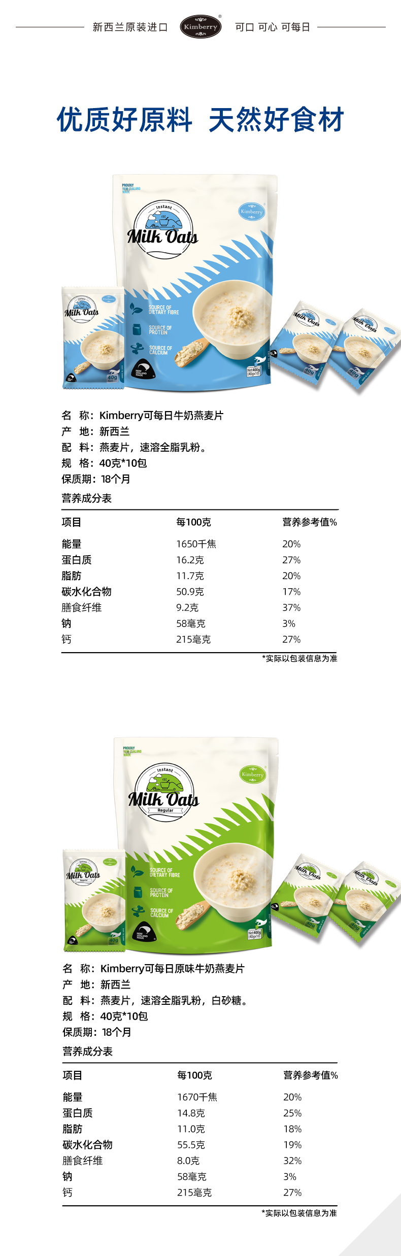 【节日礼盒】新西兰kimberry可每日 牛奶燕麦片礼盒400g