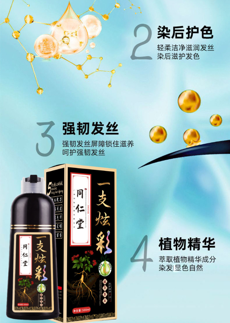 同仁堂一洗黑染发剂 不沾头皮草本护发养发 还你乌黑亮丽的秀发
