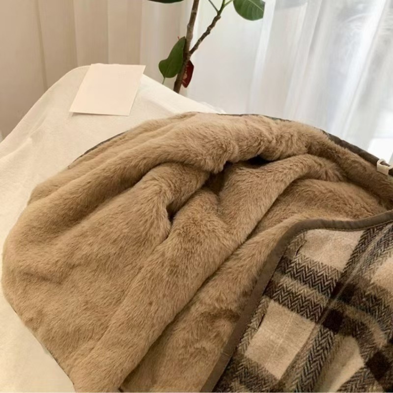 谁能拒绝这种软软糯糯的格子外套+棕裤套装啊!
