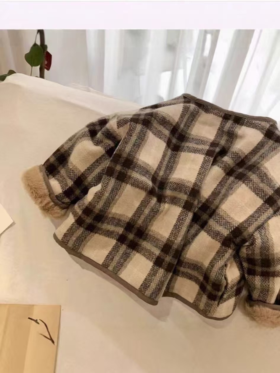 宝妈们,儿童冬季新款咖色系格子外套来咯🥳