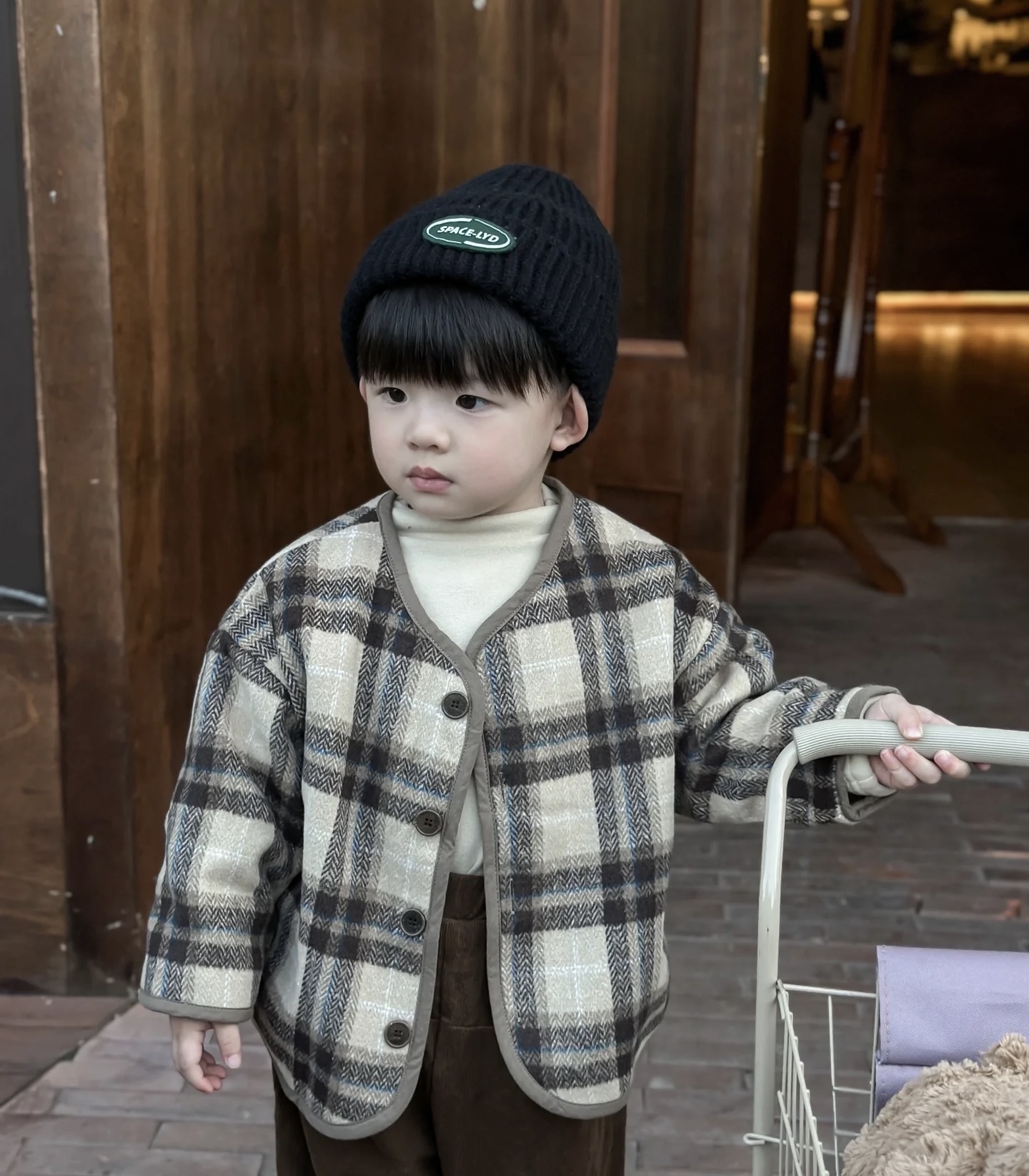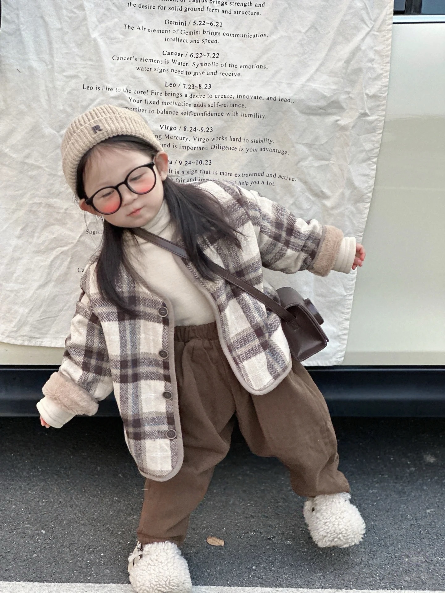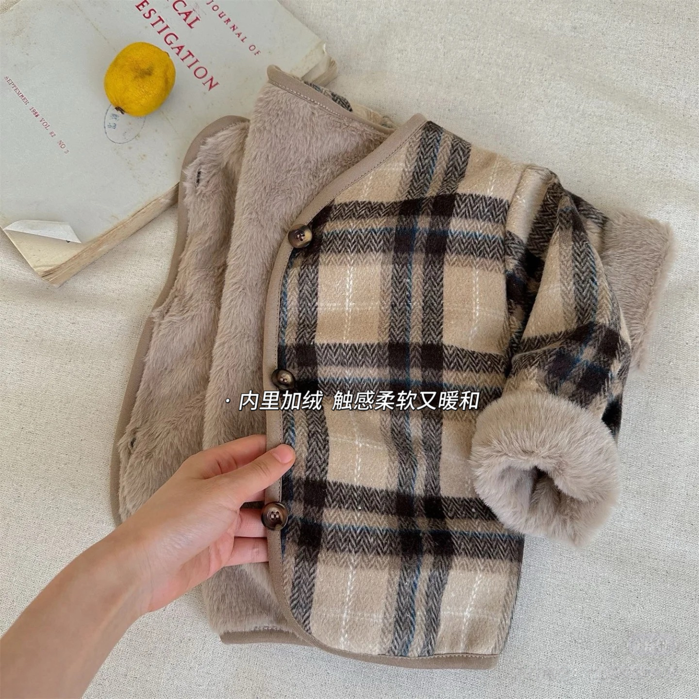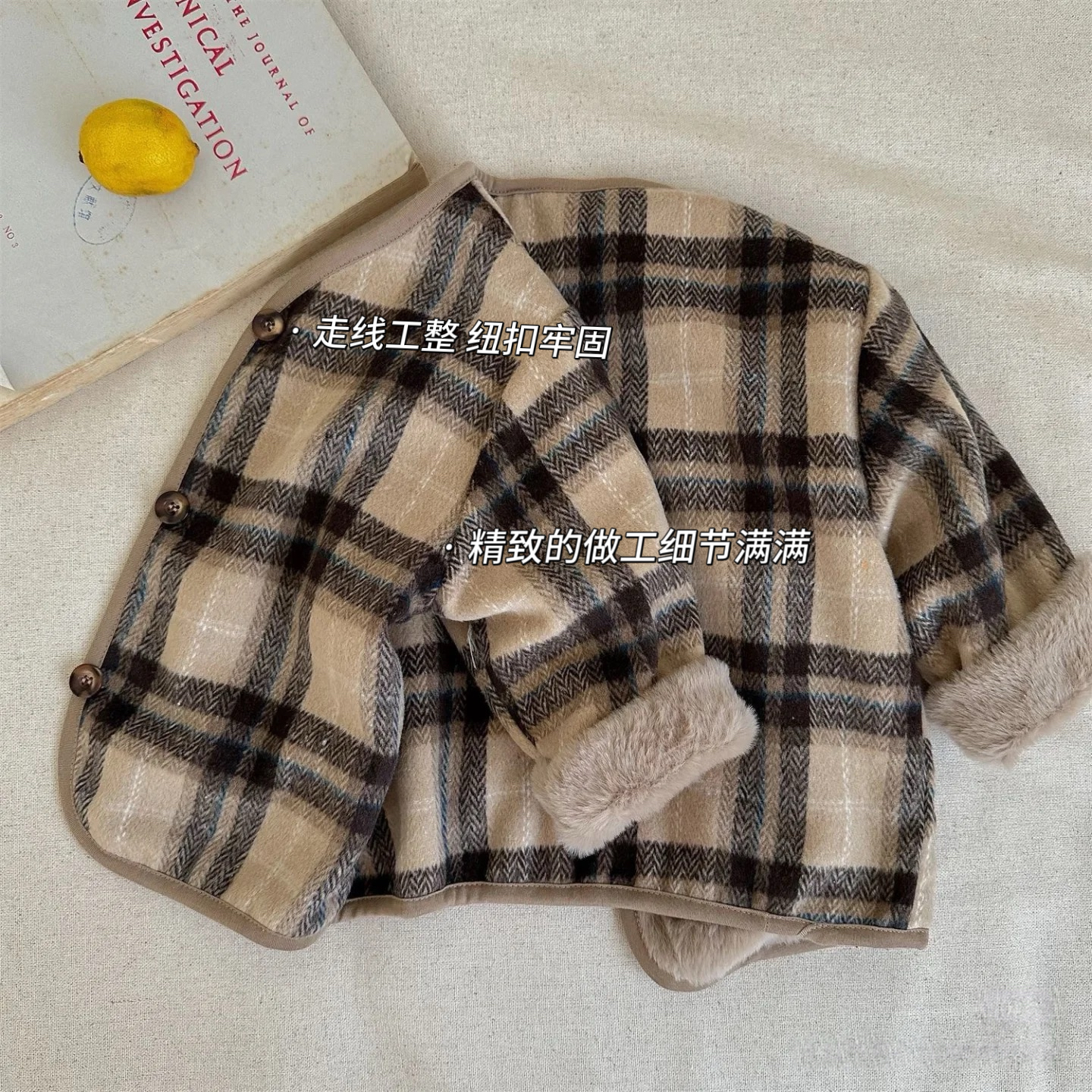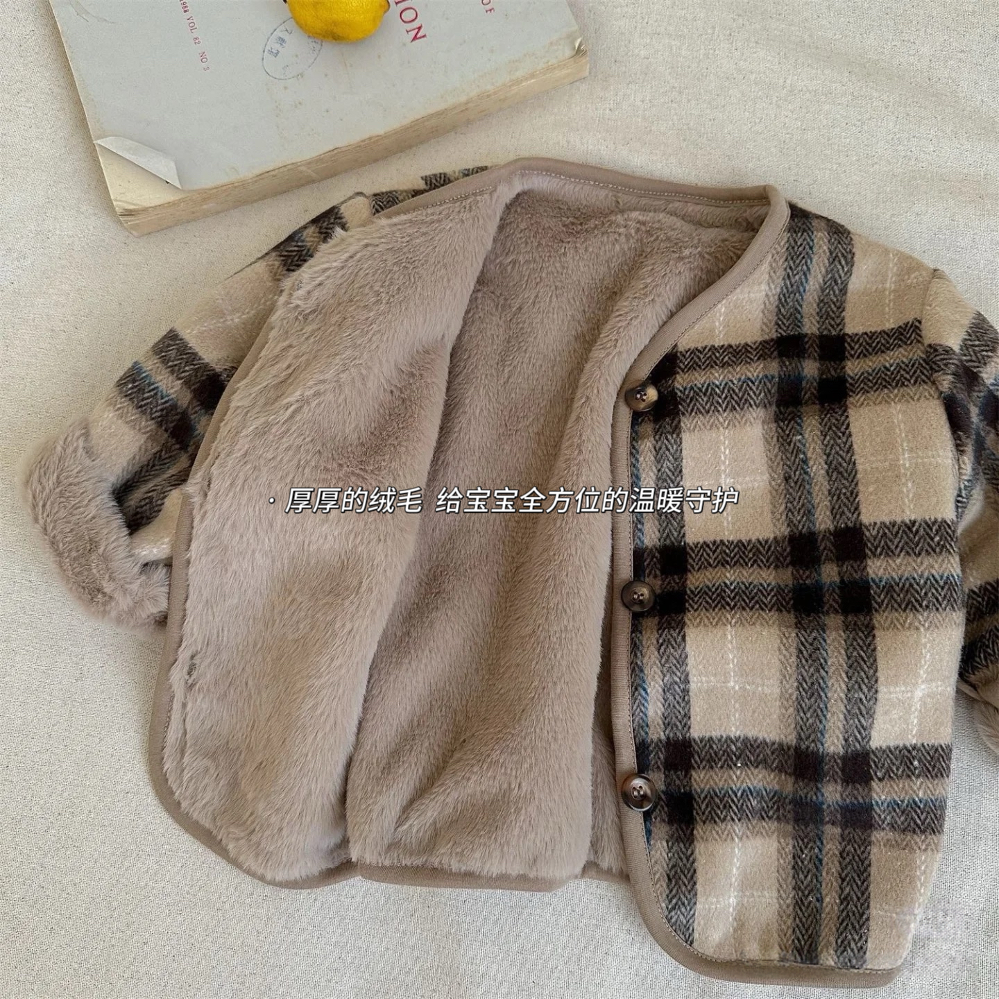 【📣薅羊毛捡漏39.9/件】🥳毛呢格子格子加绒外套韩版2025秋冬新款男童女童外衣宽松宝宝棉衣聚