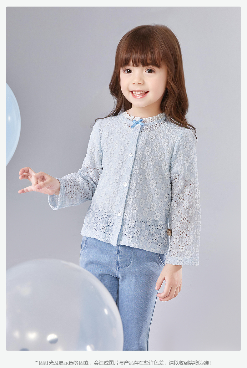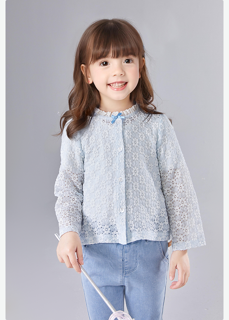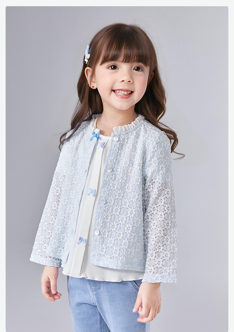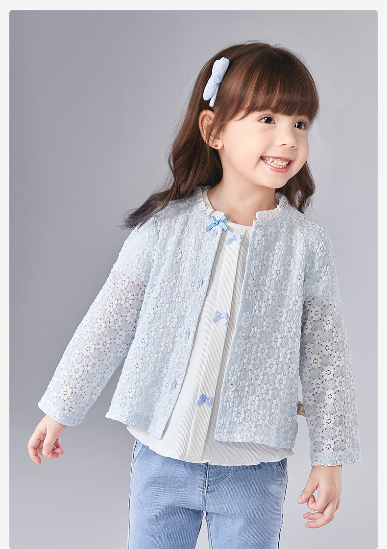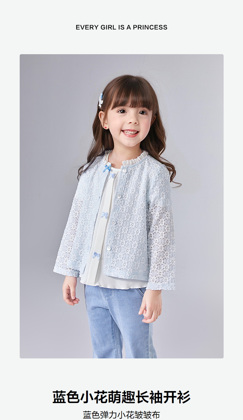 笛莎Deesha 童装女童外套2025夏新款女童蓝色小花萌趣长袖开衫
