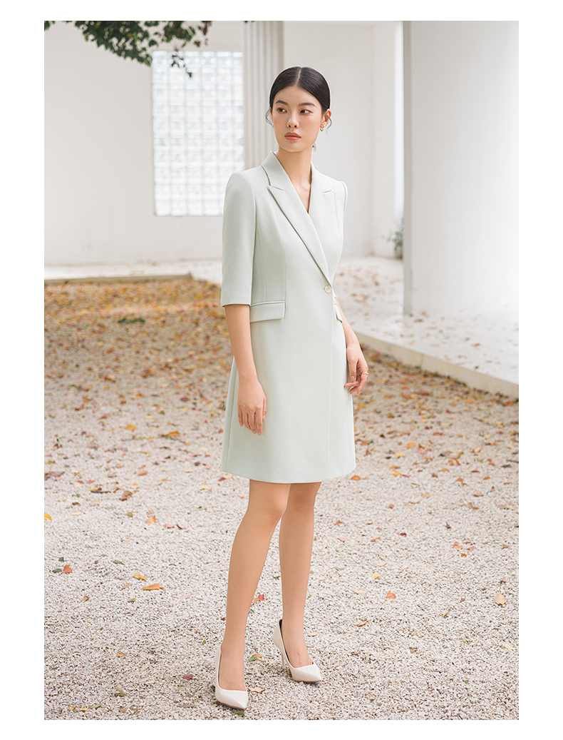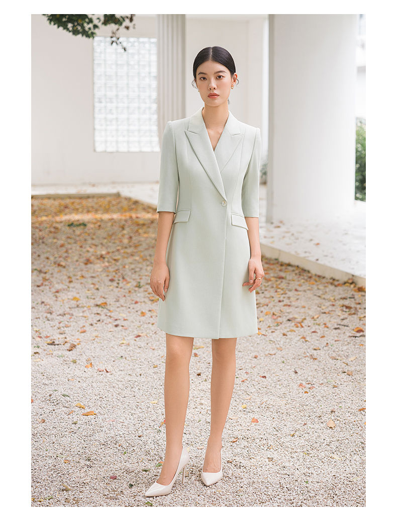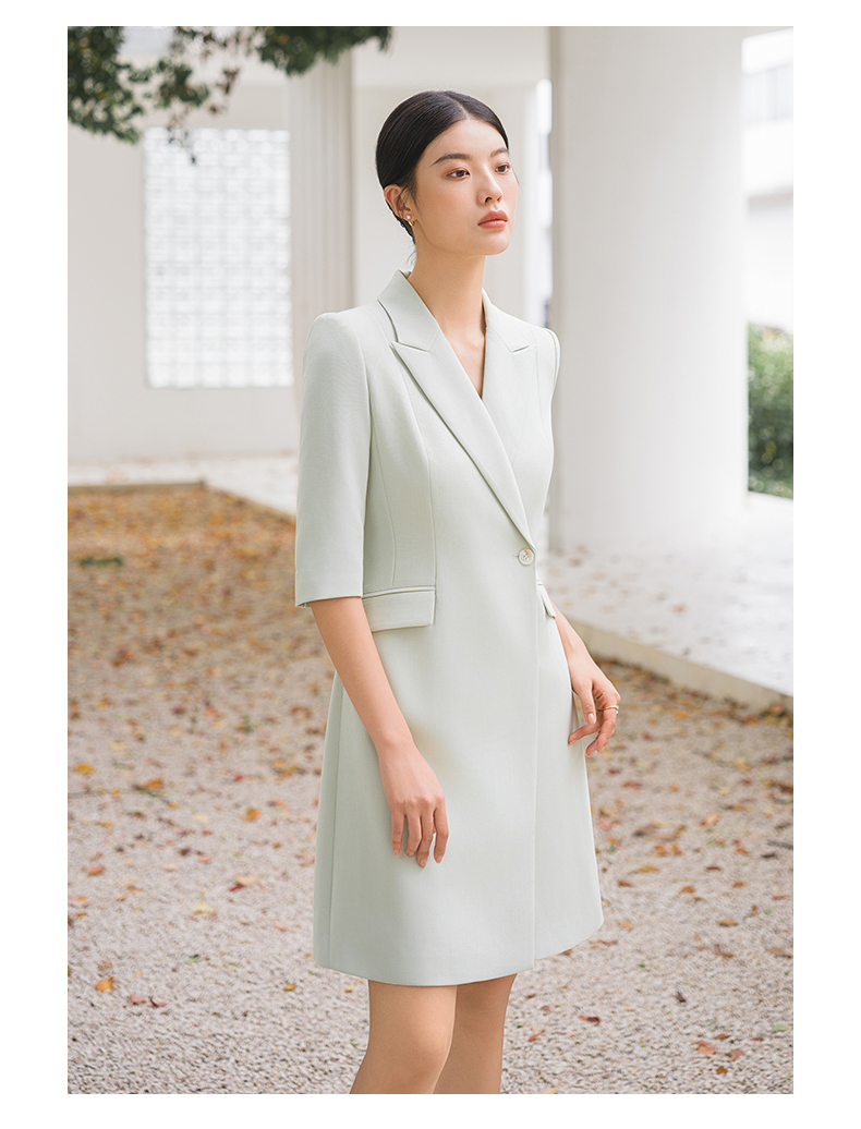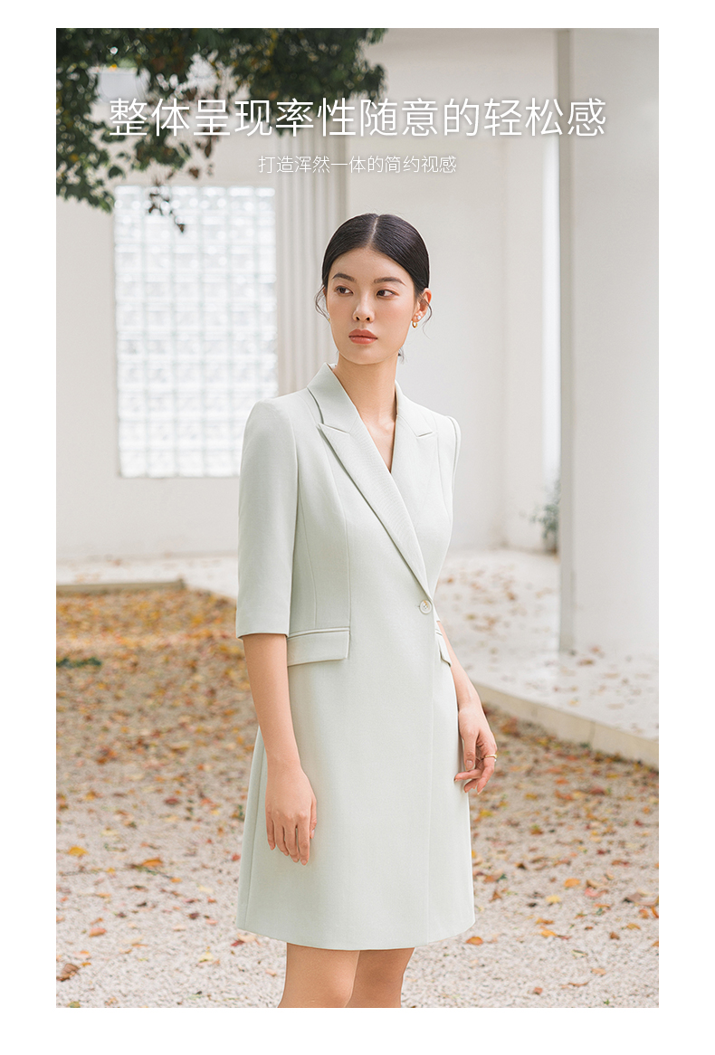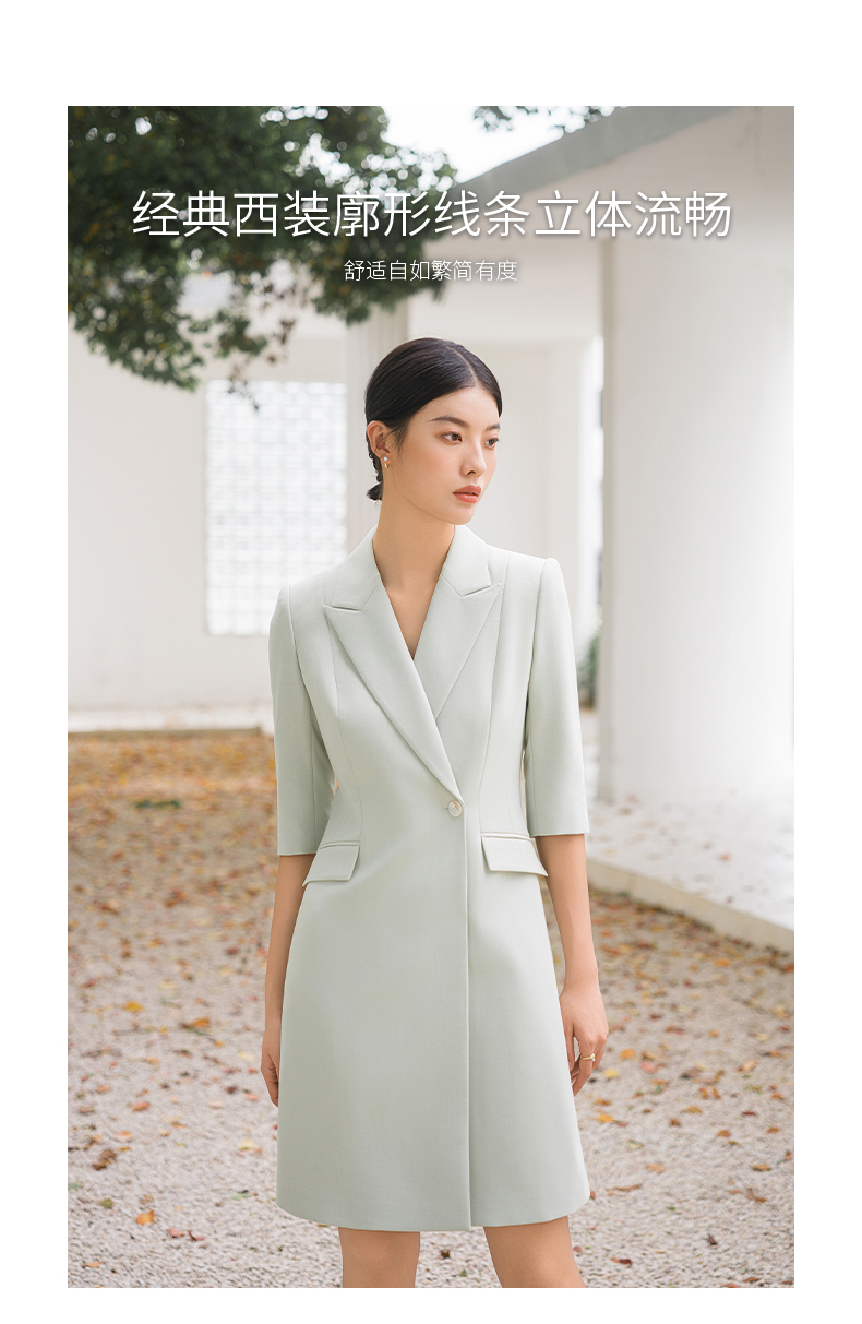 IWY/优雅绿色职业连衣裙女修身西装裙正装通勤修身商务演讲比赛裙Q14118