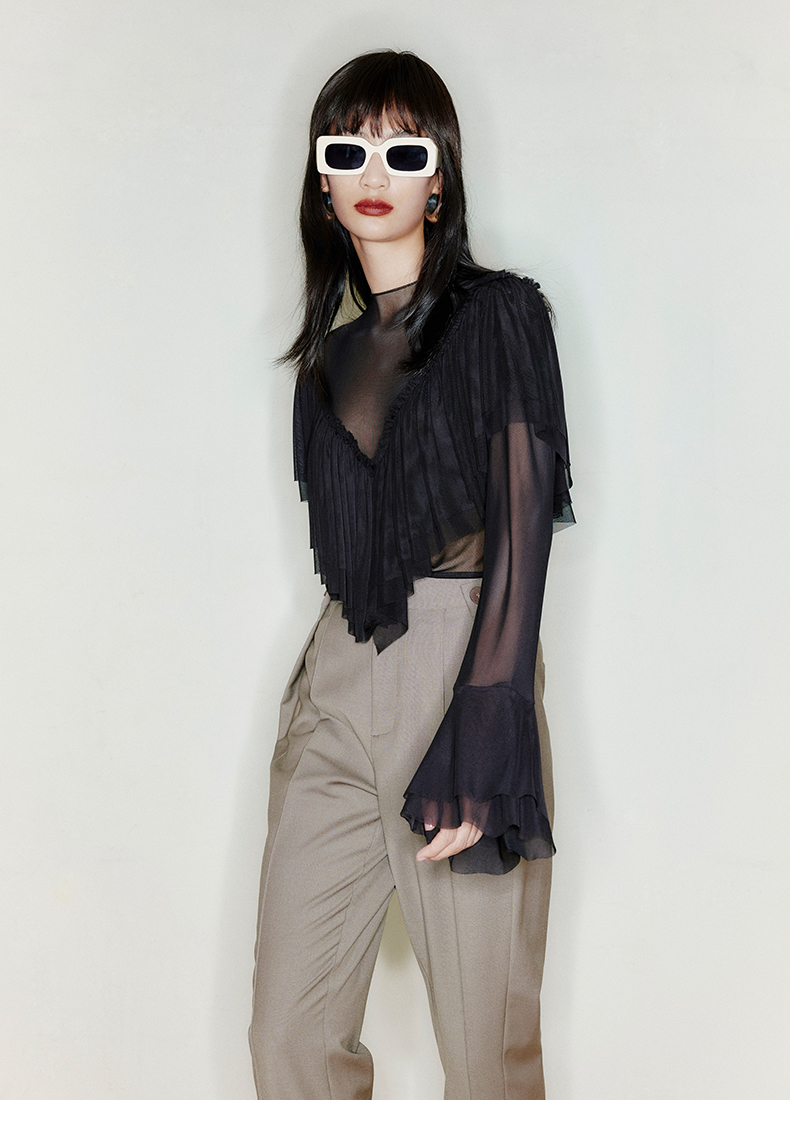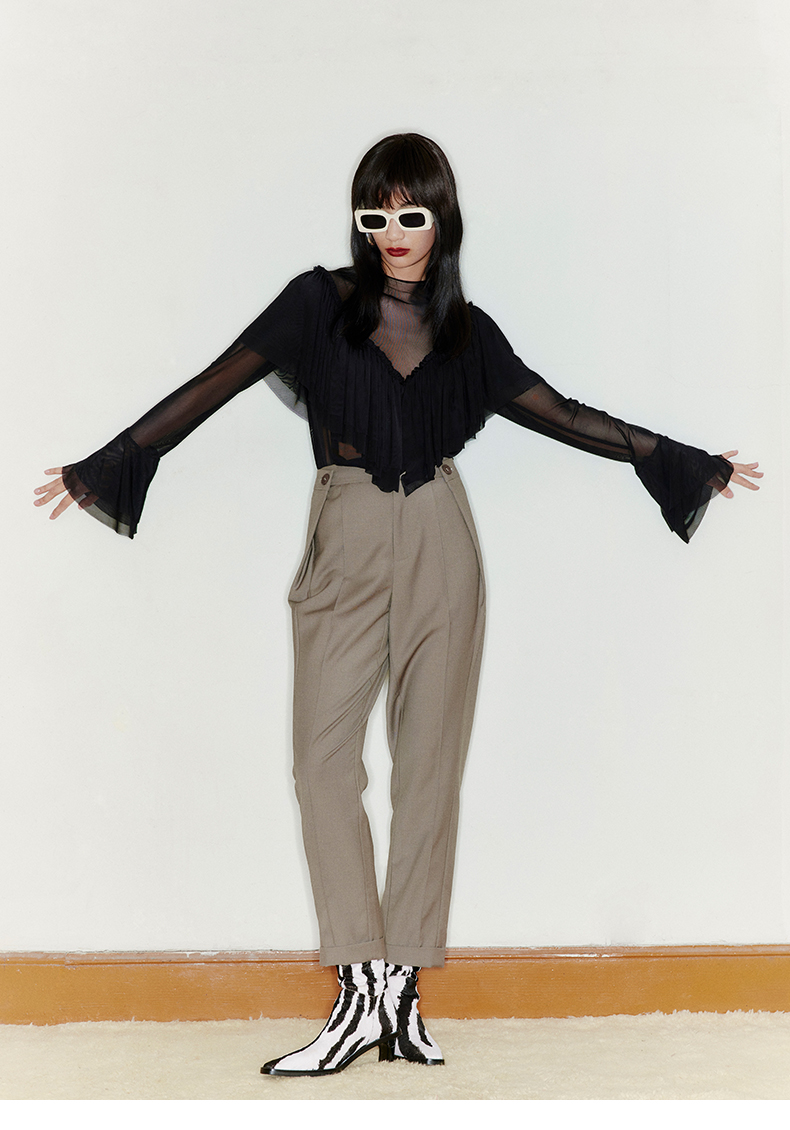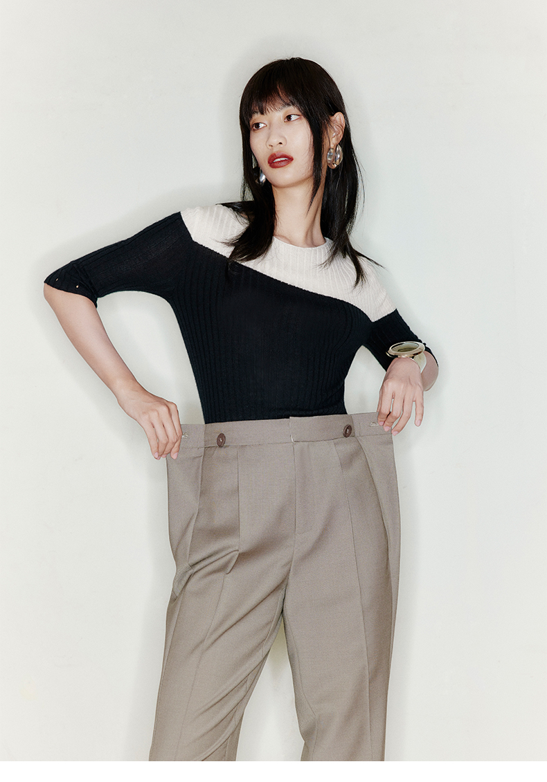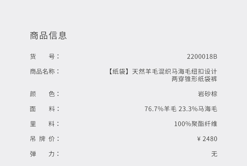 【纸袋】天然羊毛混织马海毛纽扣设计两穿锥形纸袋裤/2200018B