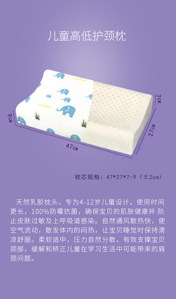 【授权商品】Uoolatex犹拉缇天然乳胶儿童高低枕泰国4-12岁儿童使用U9
