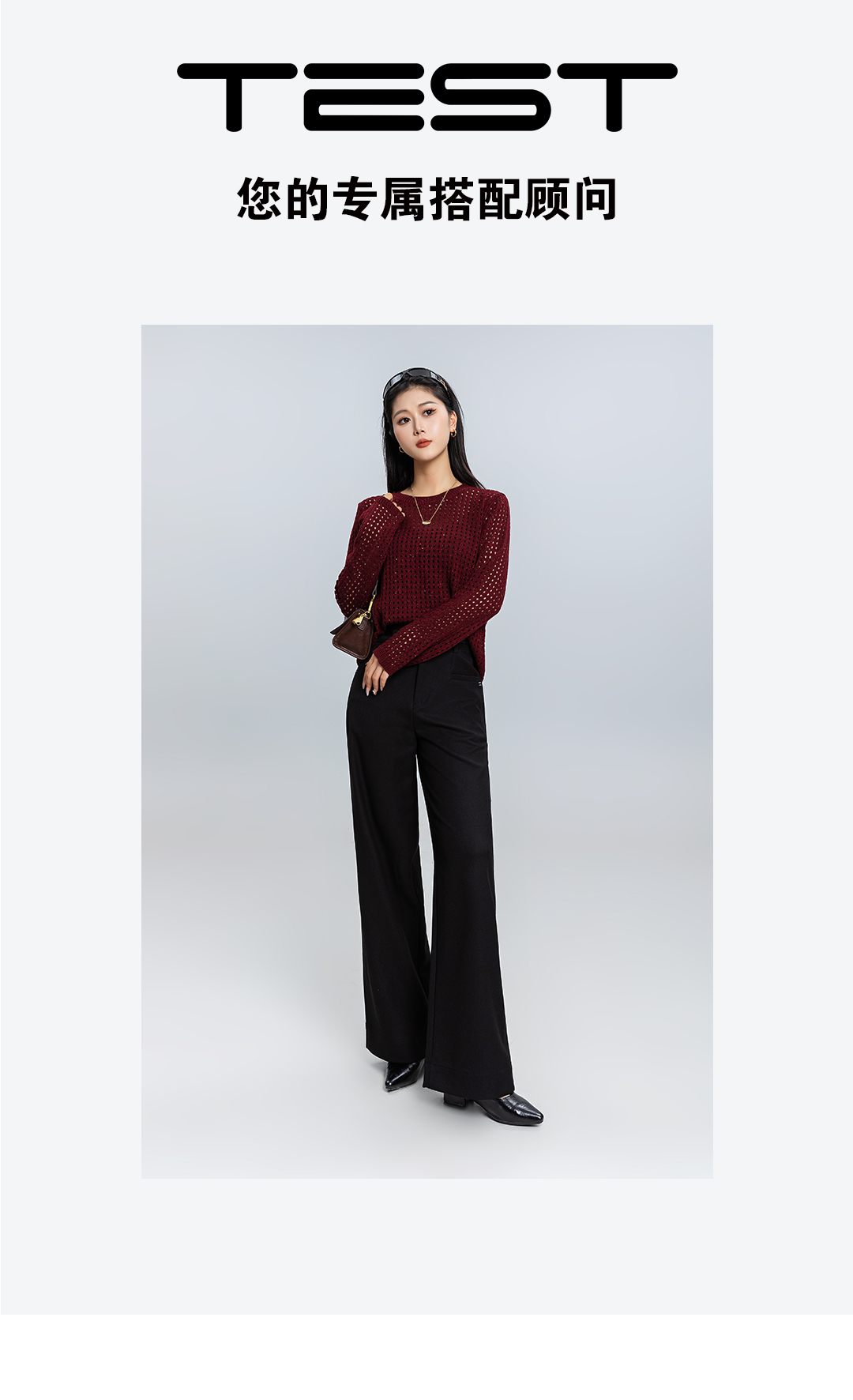 秋上新优雅气质风酒红色镂空针织衫1253086 商品图3