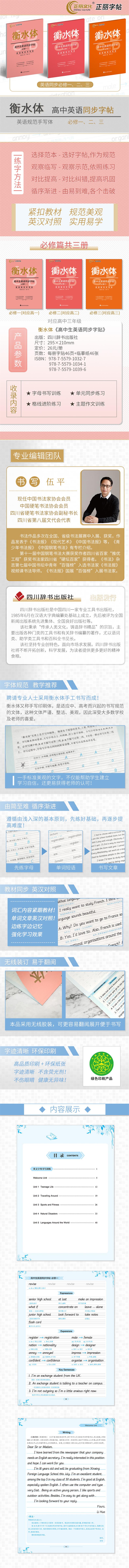本套字帖与人教版英语教材同步,内容涵盖衡水体英文字母书写基本规则、教材要求掌握的英语单词、重点短语、重点句子、重点段落等。在帮助同学们巩固所学习的重点知识的同时,也练得一手漂亮的英文书法。