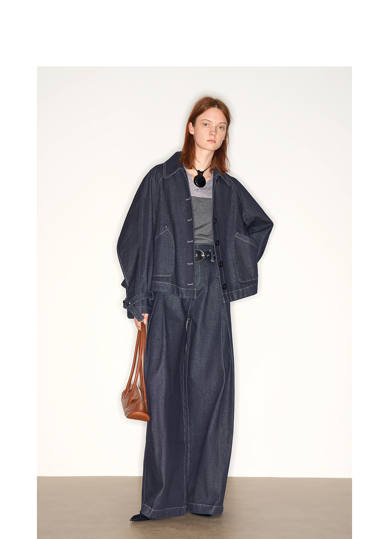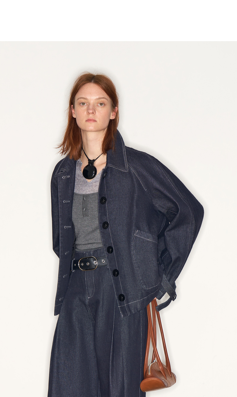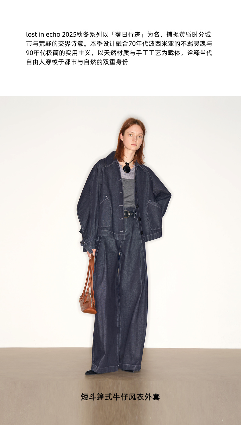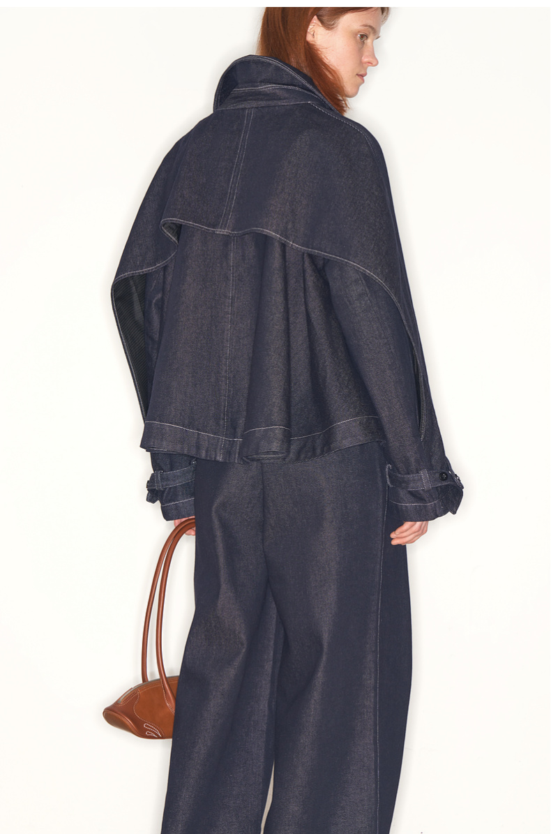 lost in echo2025早秋新款高级时尚宽松斗篷原色牛仔风衣短外套女