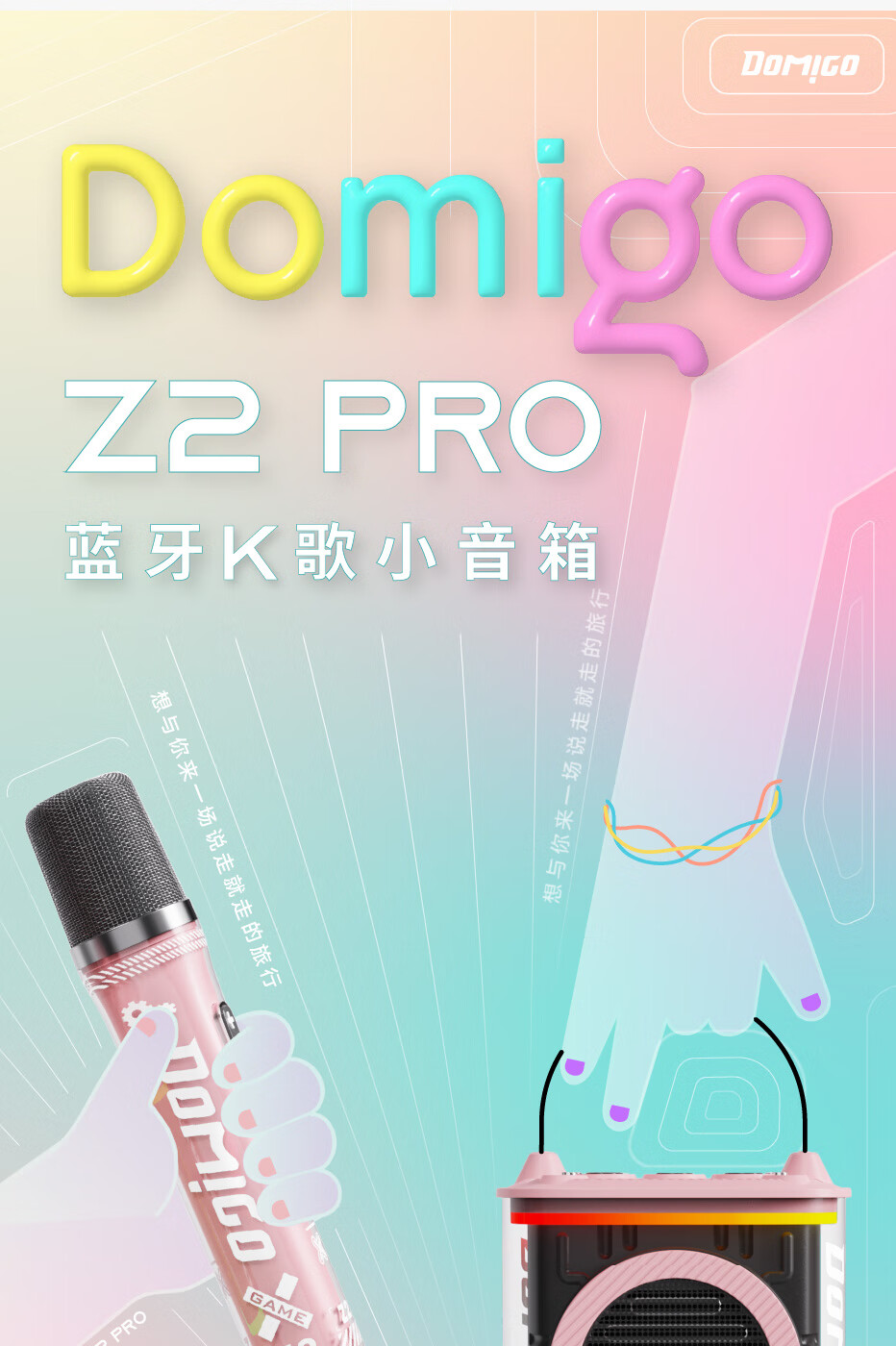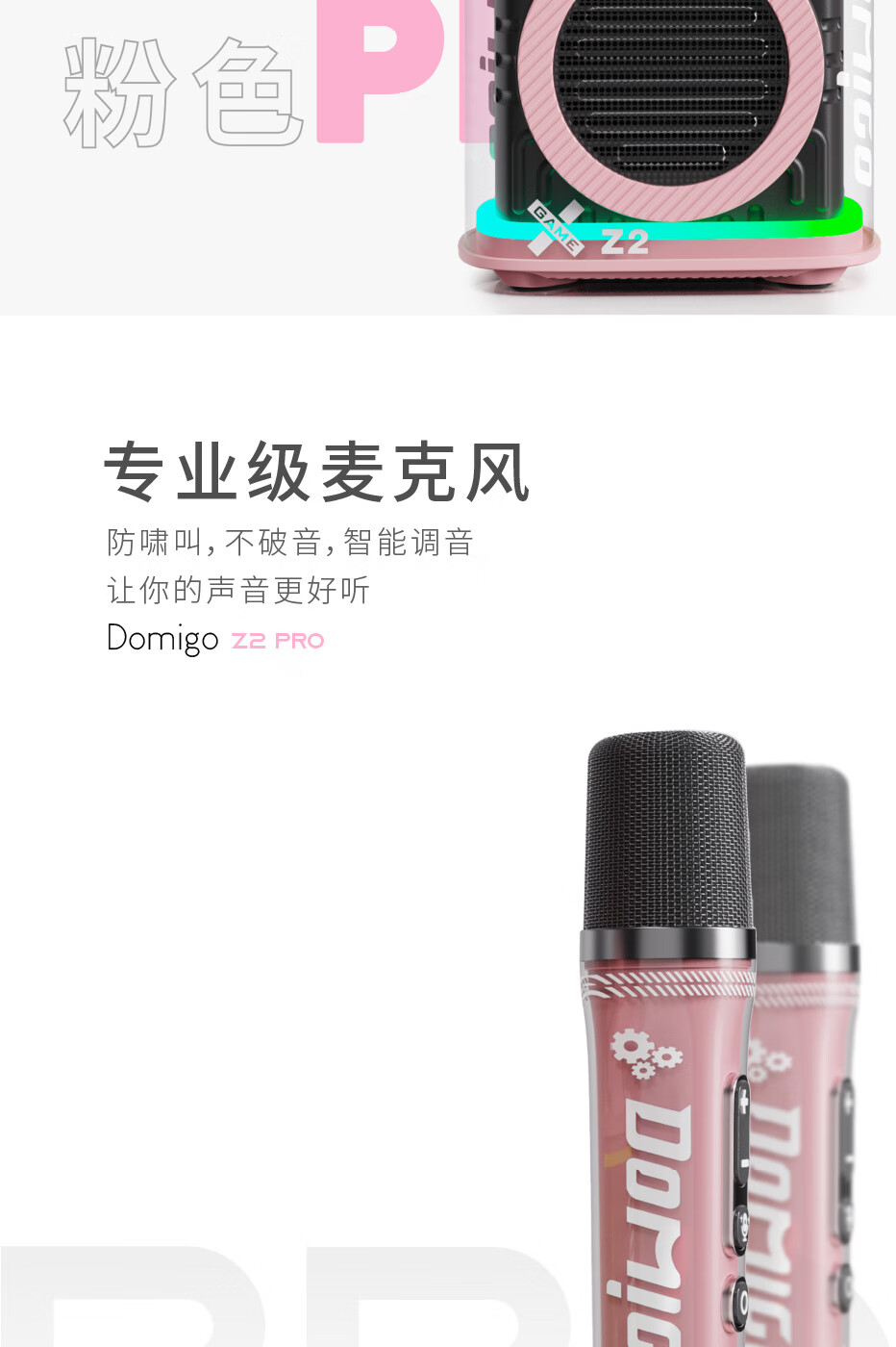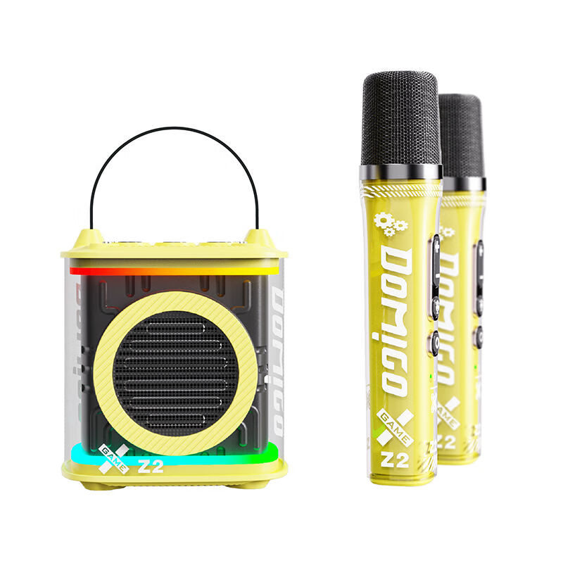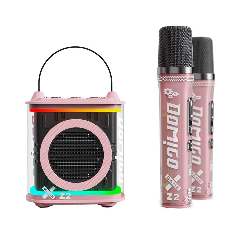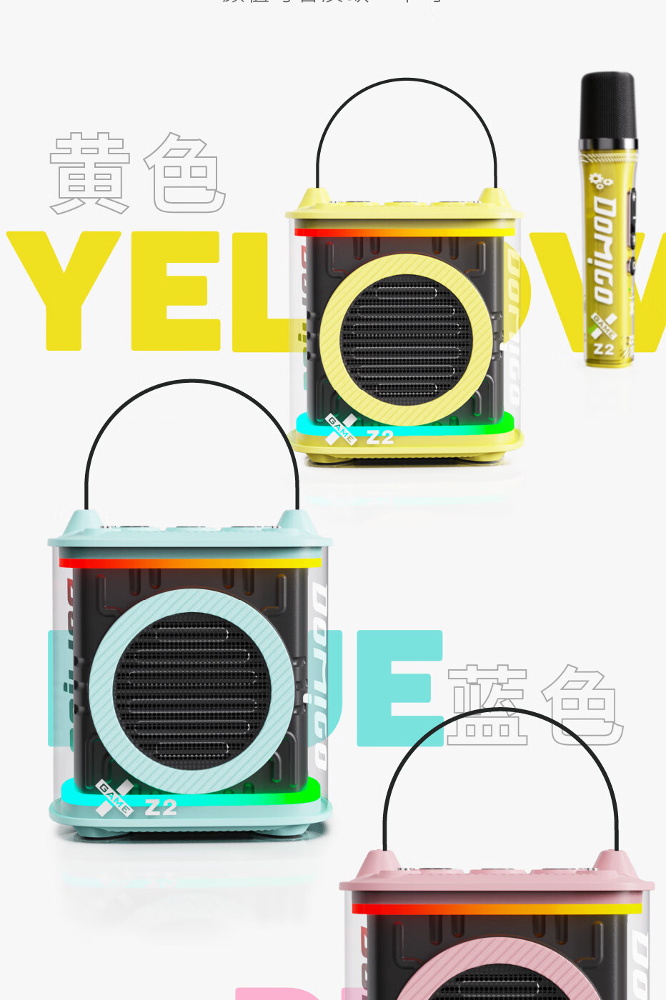 DOMIGO桌面音响Z2Pro蓝牙K歌音响轻量化双话筒唱歌音响K歌无线轻便户外室内音响无线音箱 粉红色/黄色/蓝色