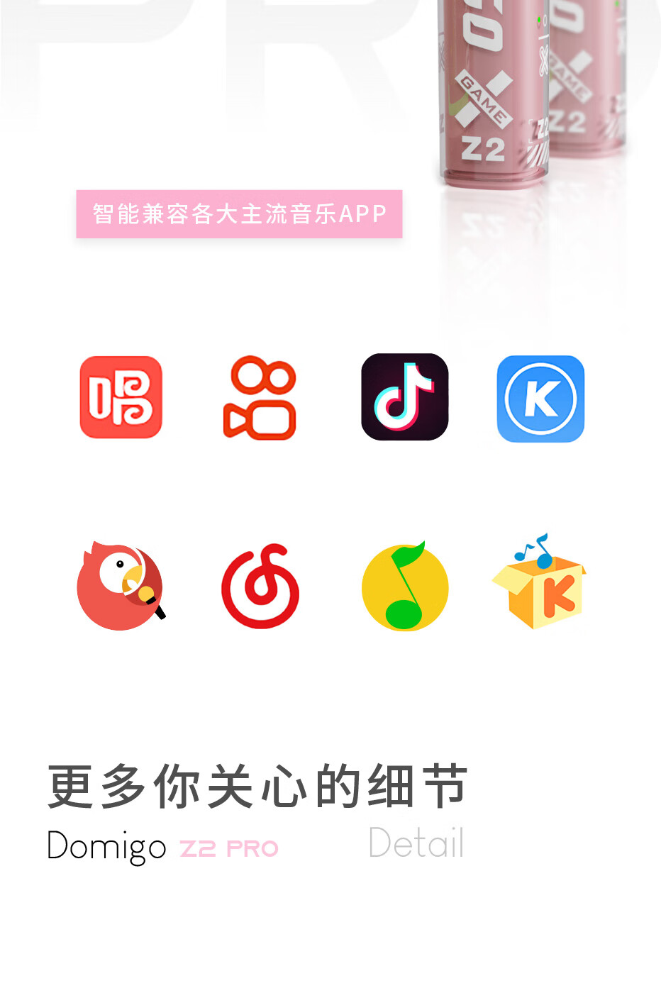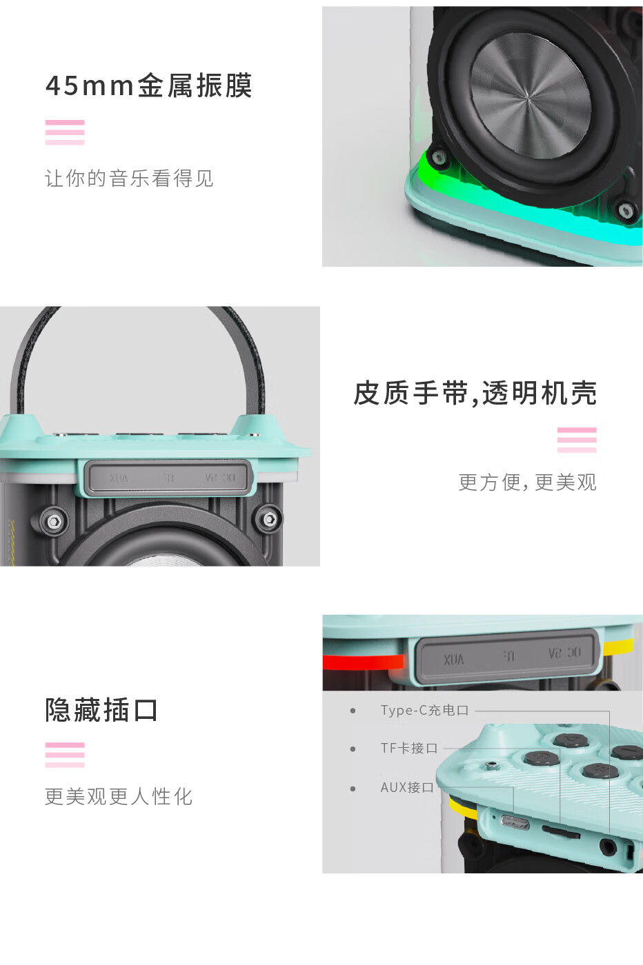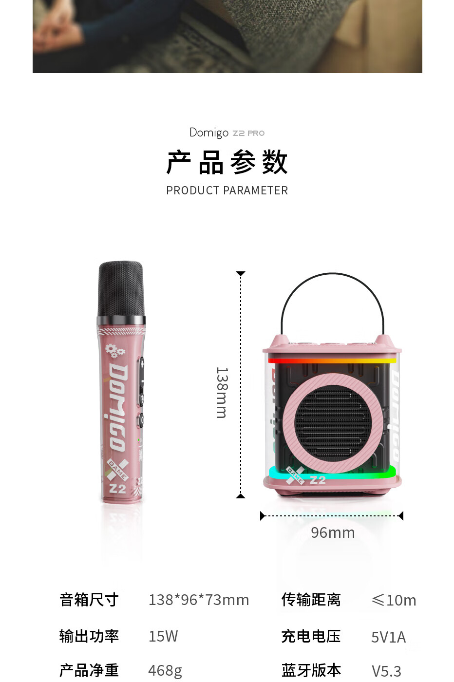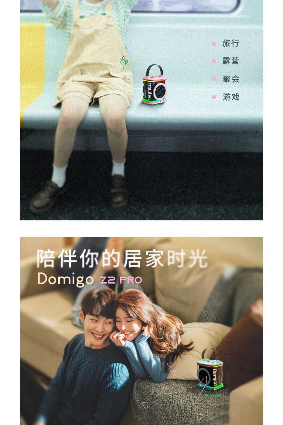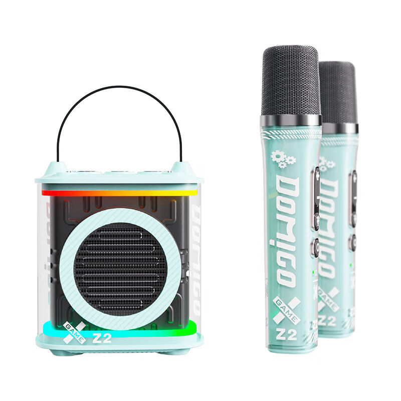 DOMIGO桌面音响Z2Pro蓝牙K歌音响轻量化双话筒唱歌音响K歌无线轻便户外室内音响无线音箱 粉红色/黄色/蓝色