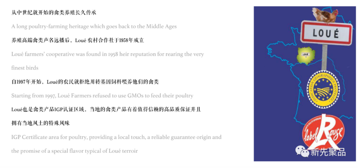 Loué镇的养鸡历史可以追溯到中世纪,但是为了更好的保护当地的养鸡历史和高品质黄皮鸡,自1958年开始当地农场打造了以镇名Loué为名的顶级品牌并得到了法国红标认证,供应法国各大米其林餐厅,其牧场更是受到法国政府的地区IGP认证保护,就像神户和牛一样,这儿产的鸡才能算得上是顶级红标鸡。