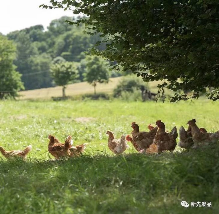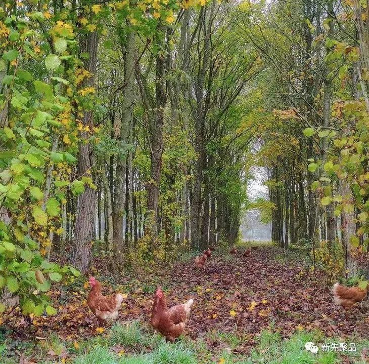 自由放养养殖方法:必须在指定的农场,必须大于2万平方米的的活动空间,充足的草木和树荫,来感受下法国红标鸡的生活条件,简直无敌。