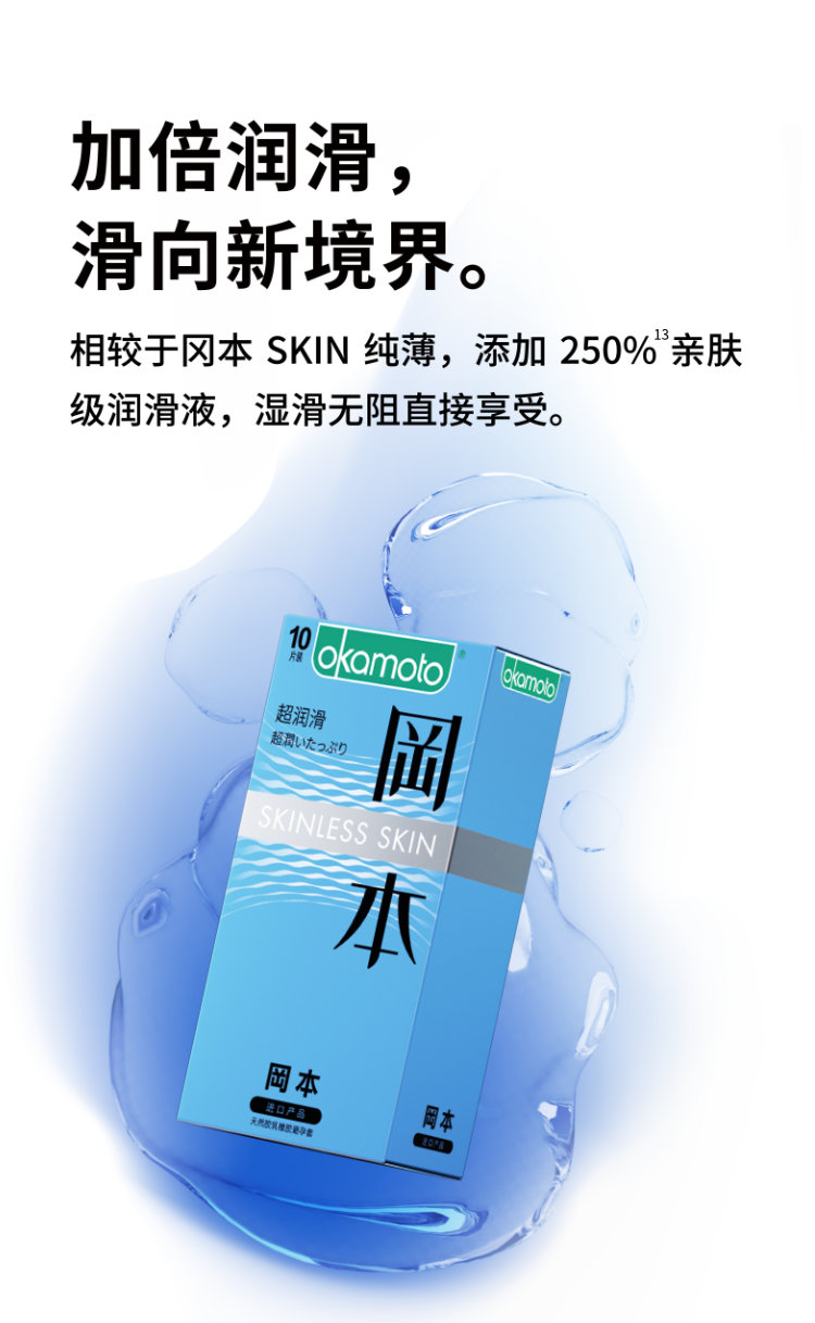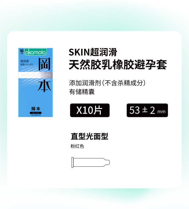 冈本避孕套安全套SKIN超润滑10片装 男用超薄 套套 计生okamoto