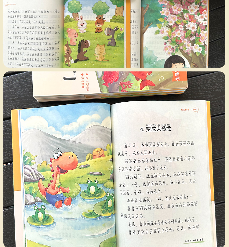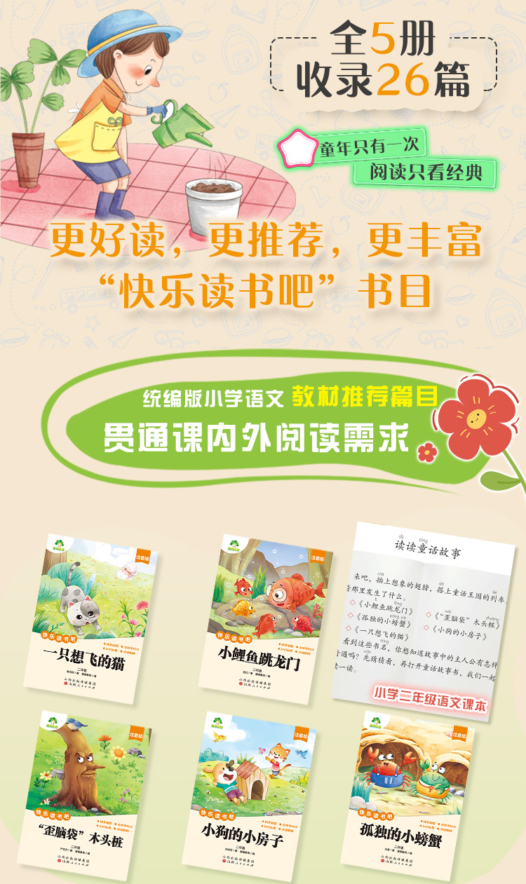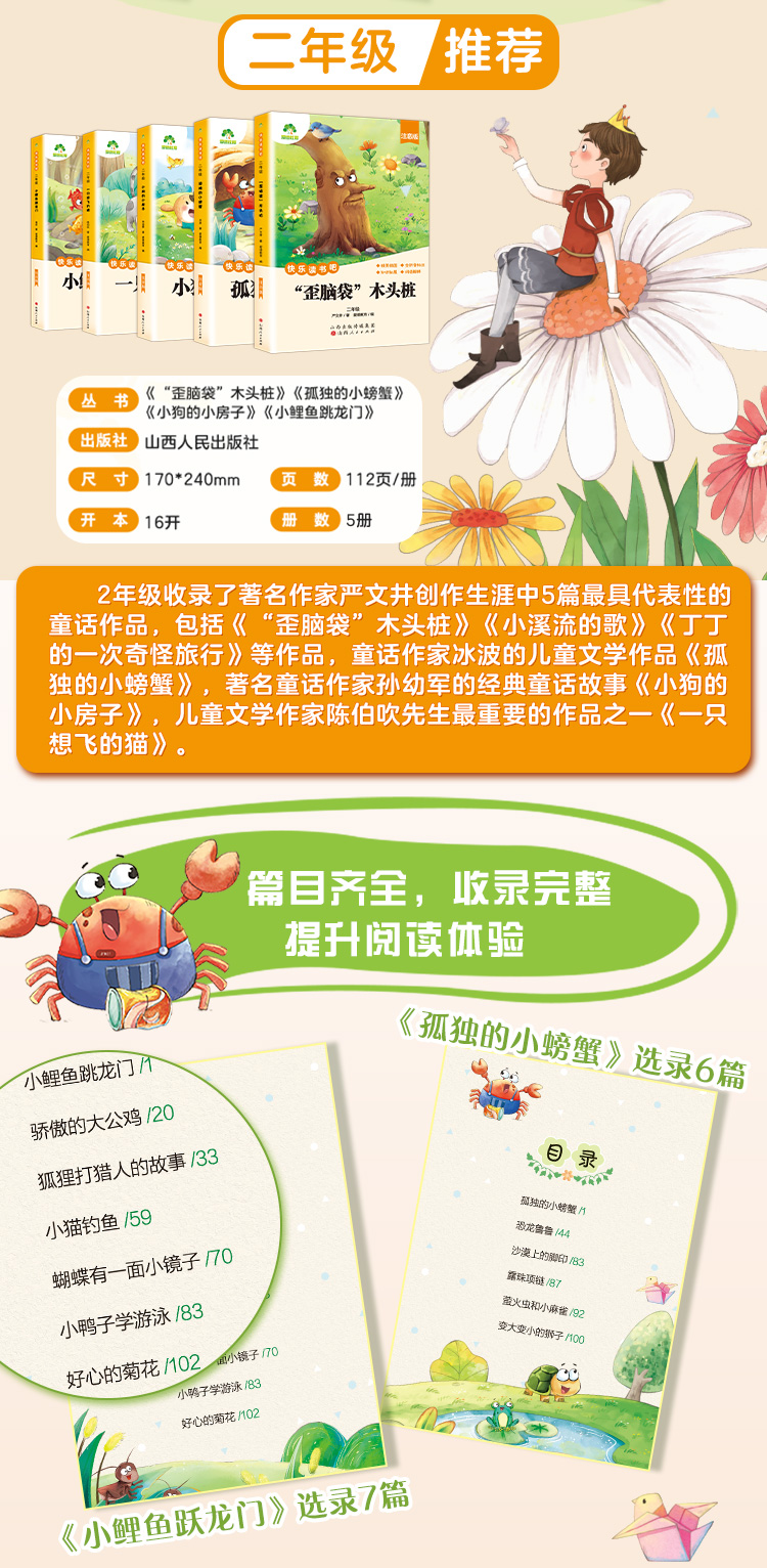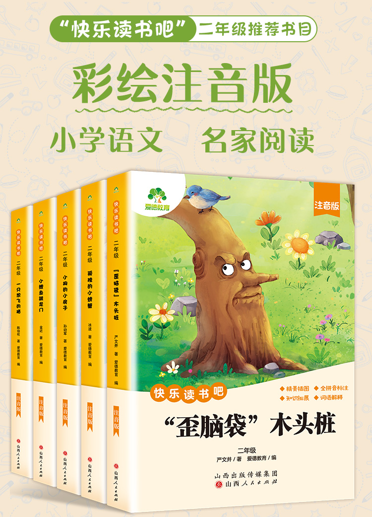 爱德少儿 快乐读书吧二年级 全套5册语文人教版同步小学生课外阅读书籍插图注音版小鲤鱼跃龙门歪脑袋木头桩