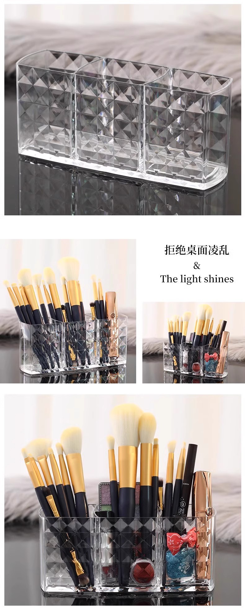 【拿取超便捷❗️桌面小管家】透明笔筒桌面学生办公室亚克力简约文具盒多格多功能大容量纳盒。jd