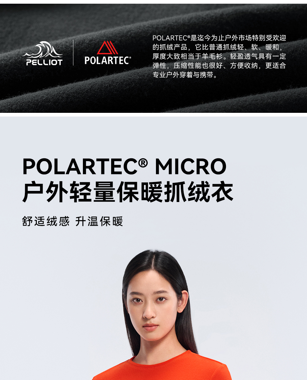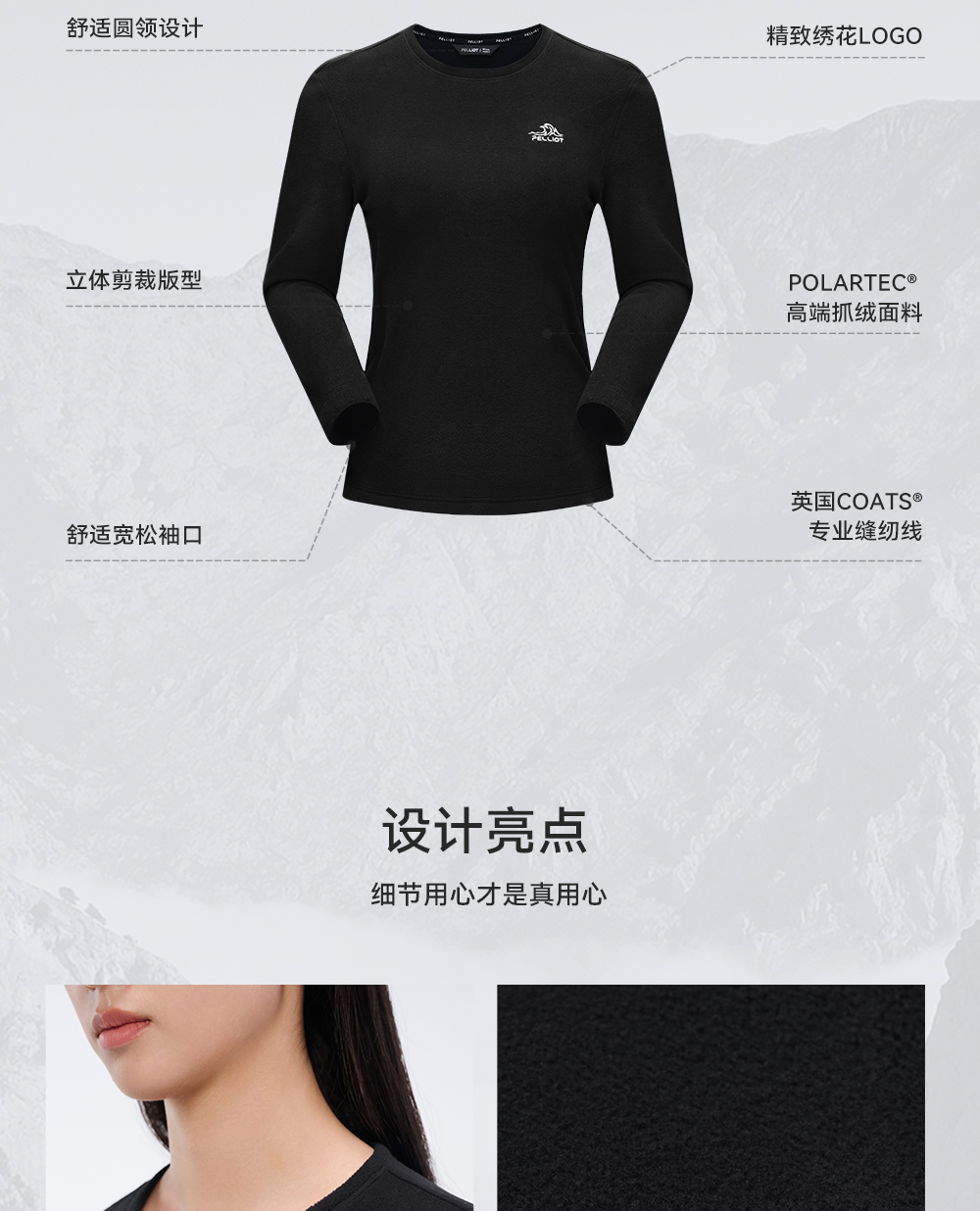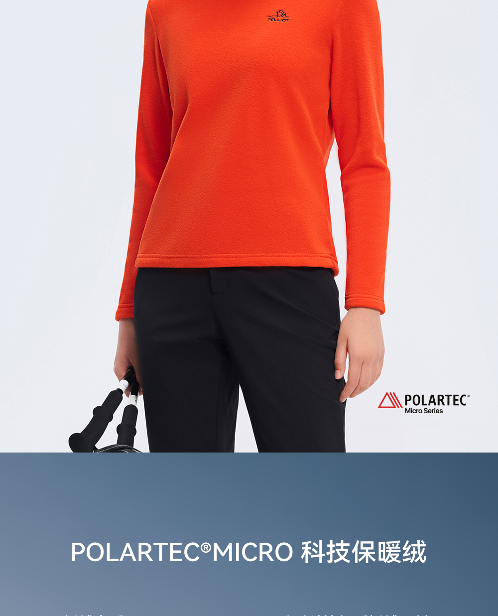 伯希和户外Polartec圆领抓绒衣女款轻量保暖摇粒绒打底衫运动上衣