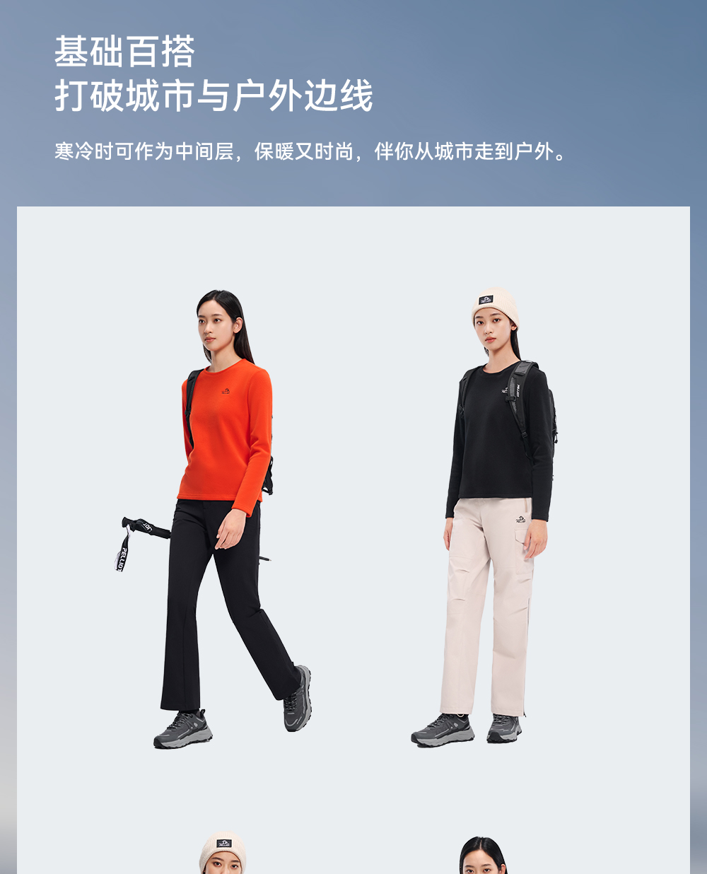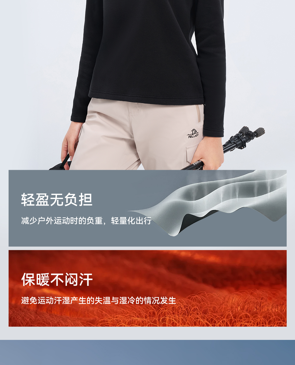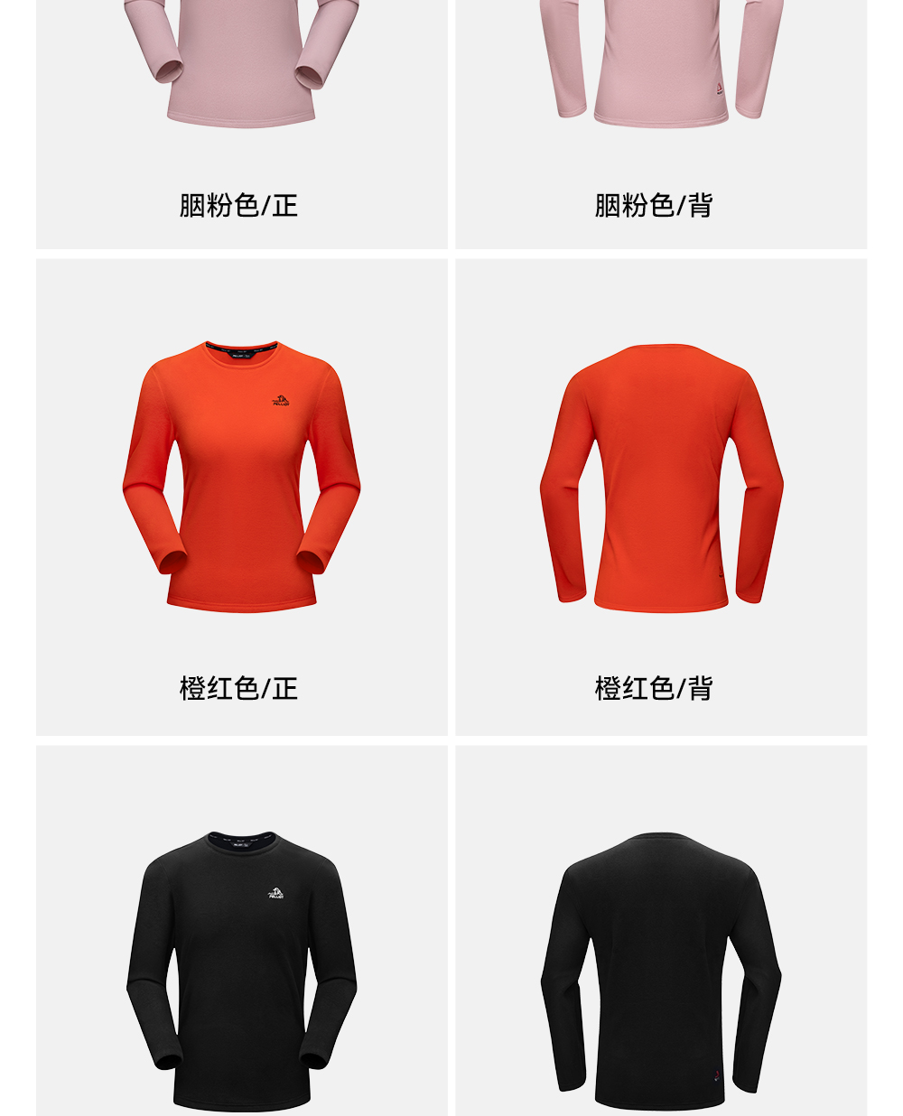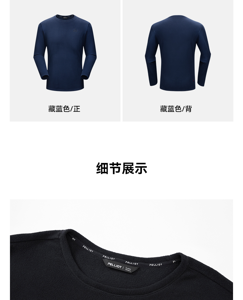 伯希和户外Polartec圆领抓绒衣女款轻量保暖摇粒绒打底衫运动上衣