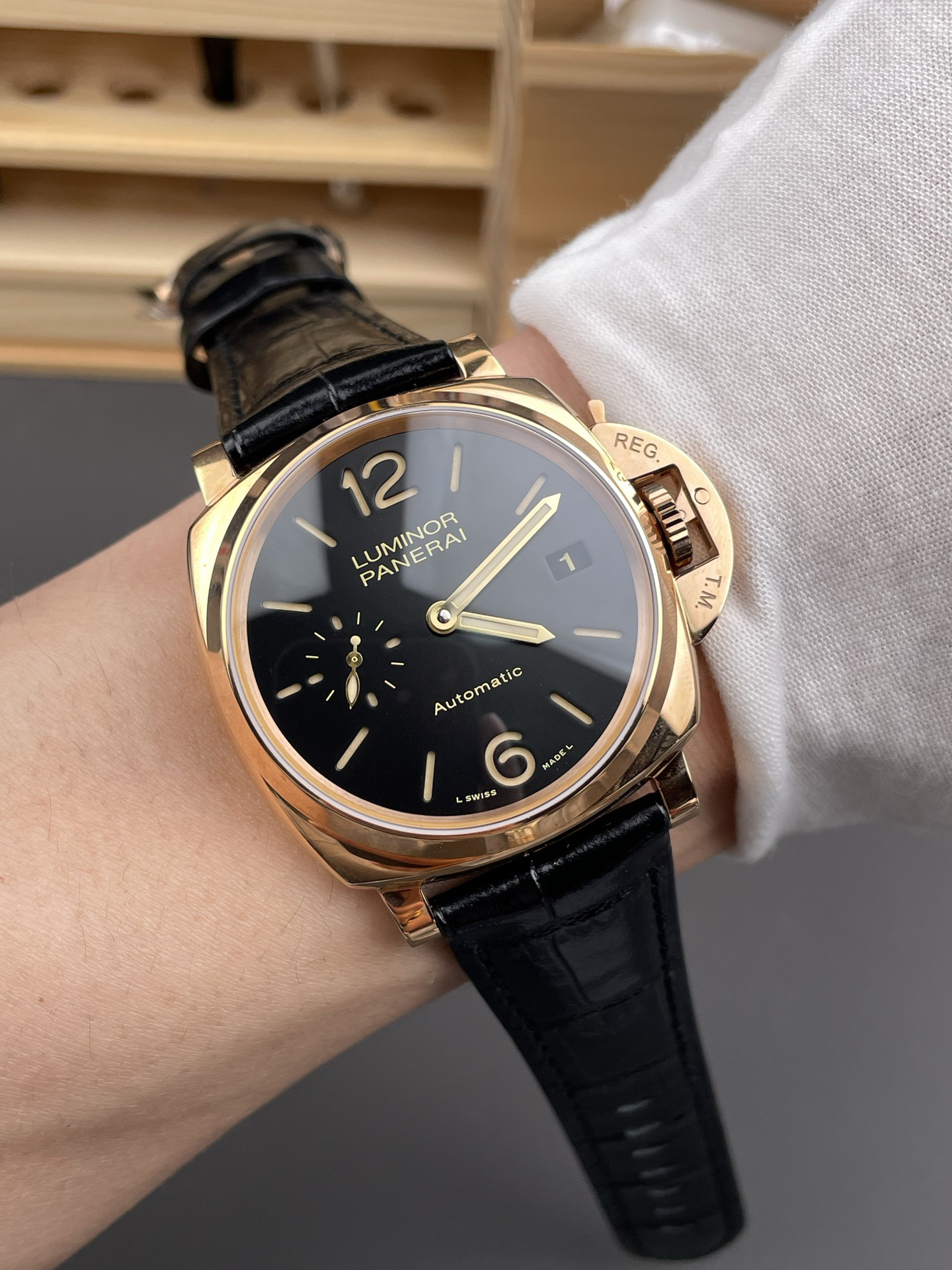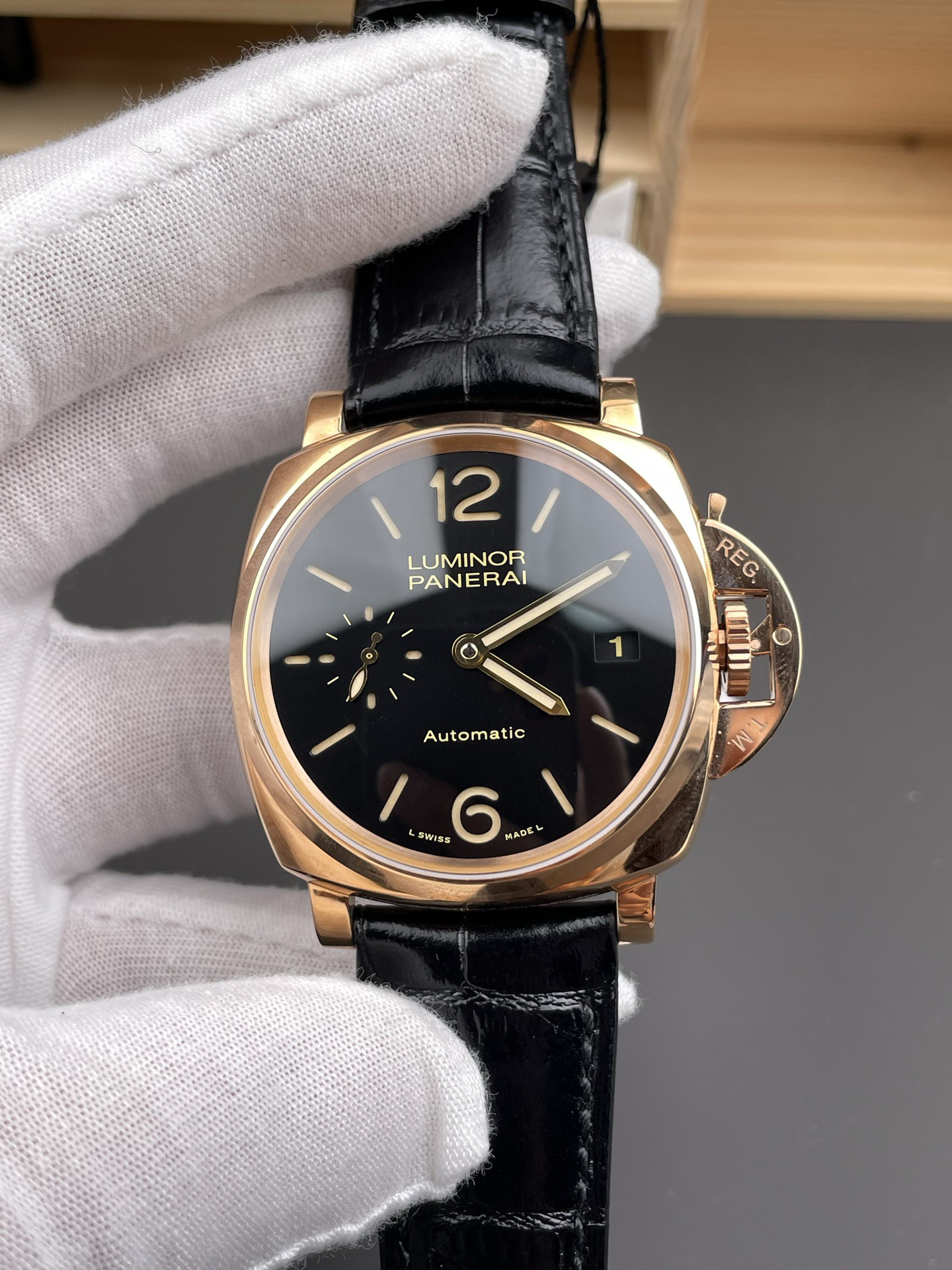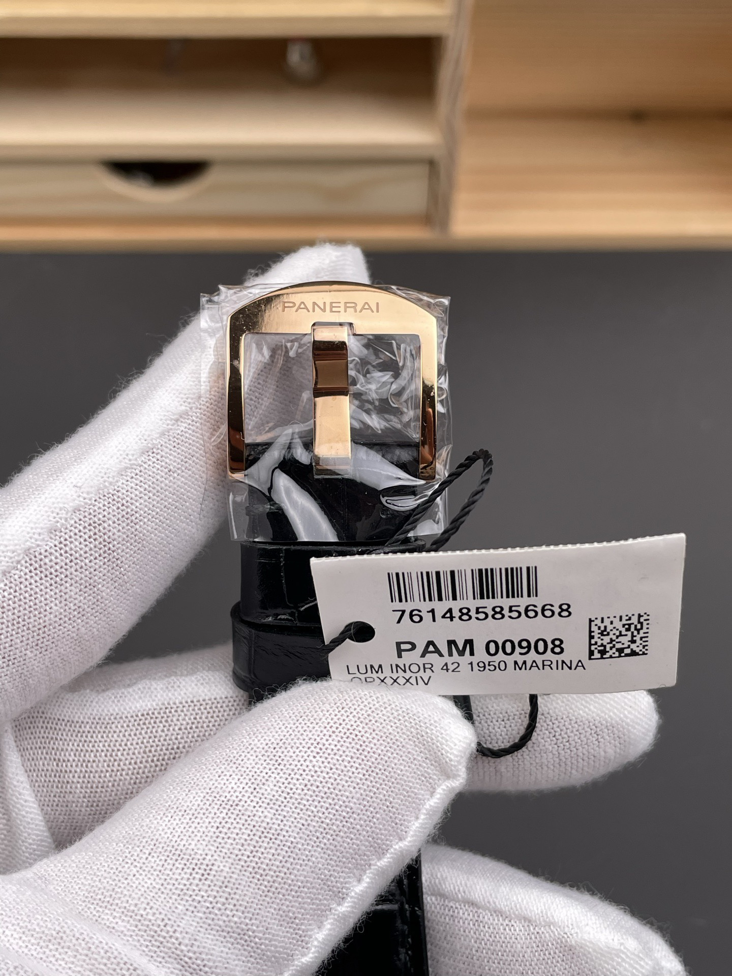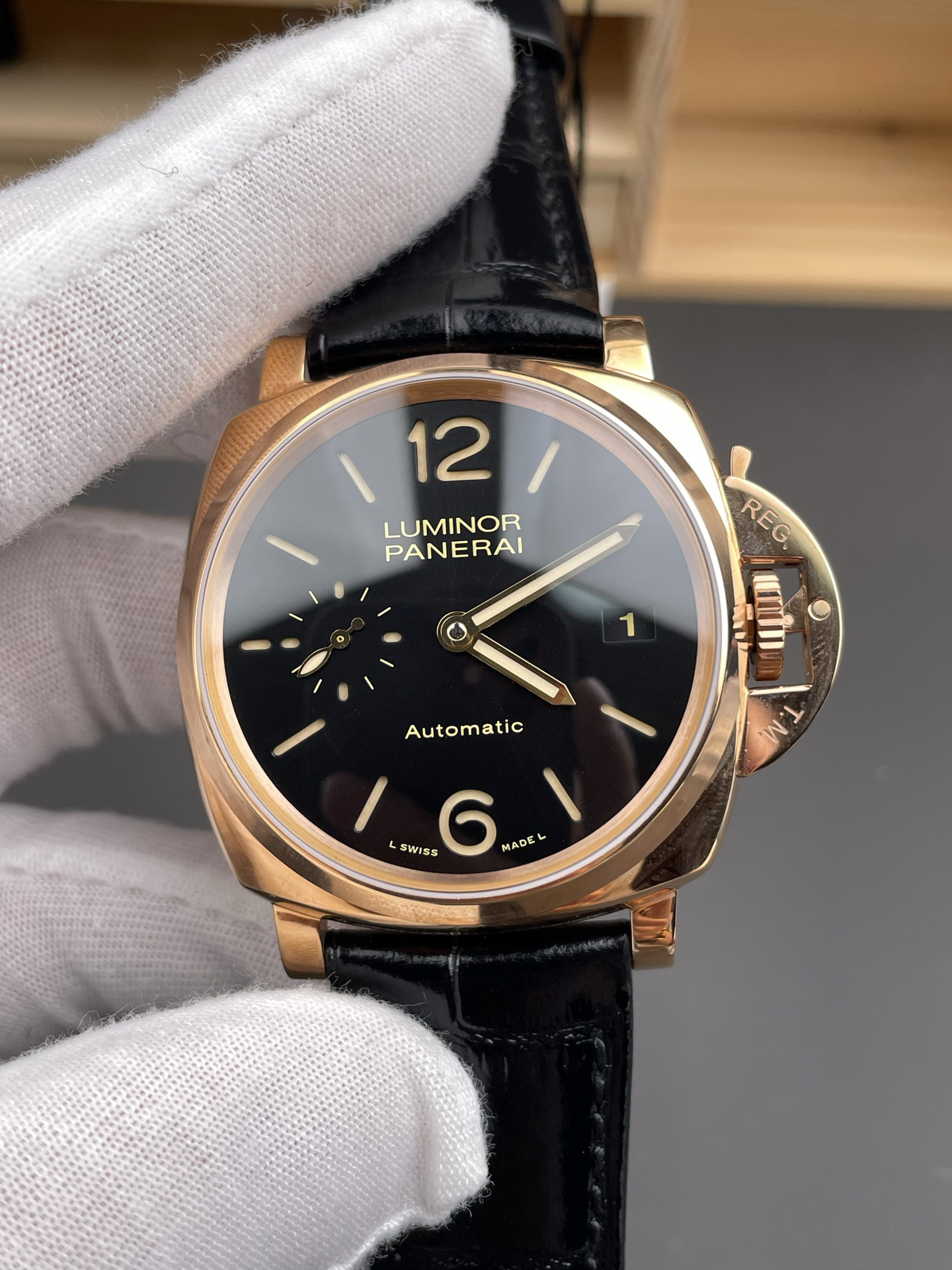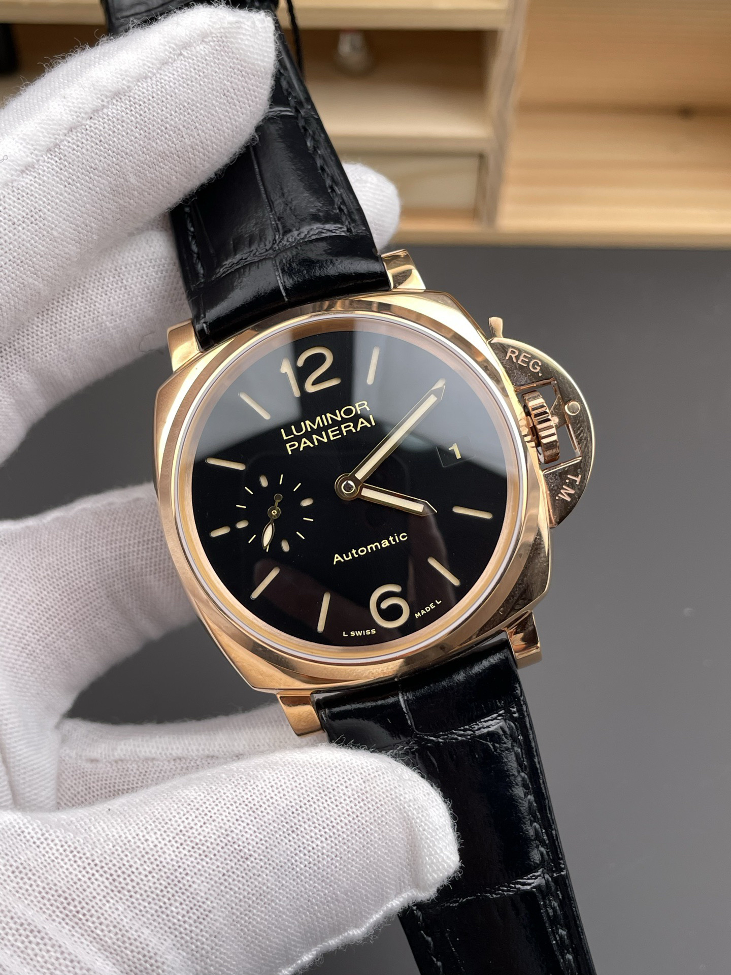 VS沛纳海pam908 优雅典范红金腕表!一款适合亚洲手腕的红金腕表。男士腕表,皮表带,自动机械机芯,透底。