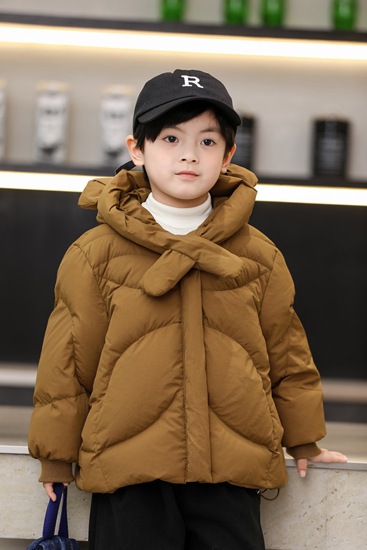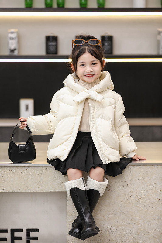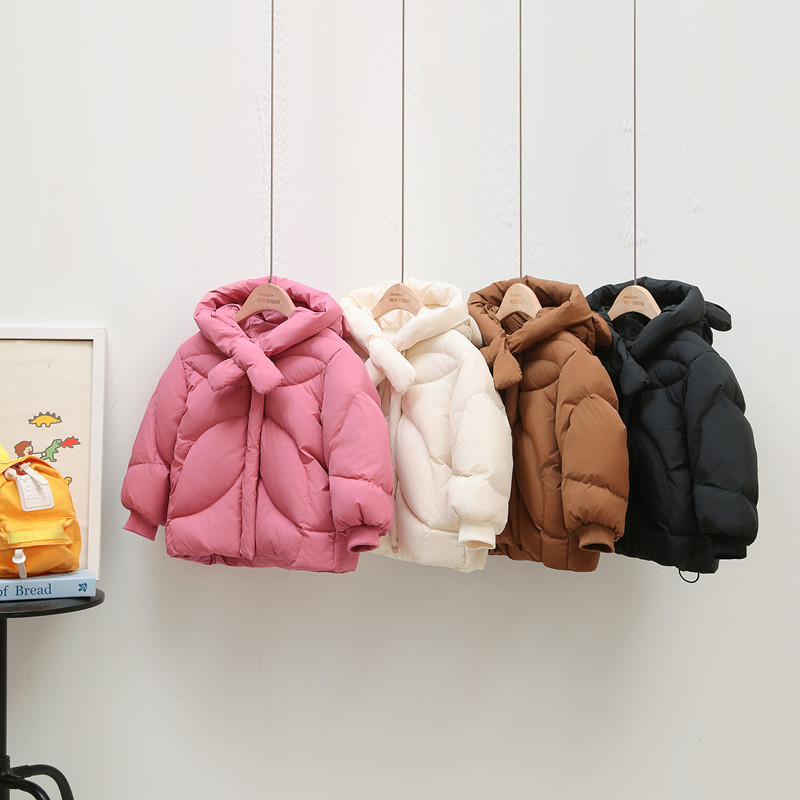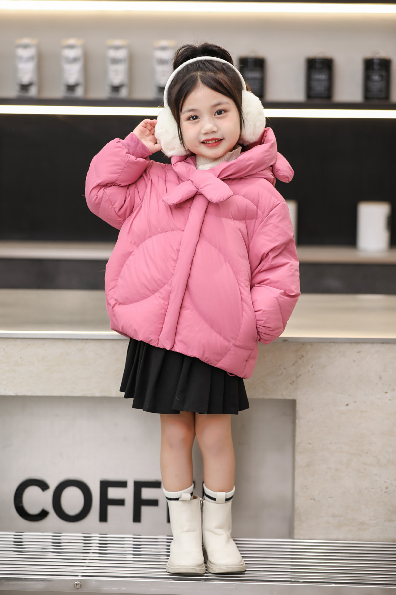 【YW】无忧购儿童羽绒服90白鸭绒短款加厚围巾款小耳朵外套24602(截单后3-5天发货)