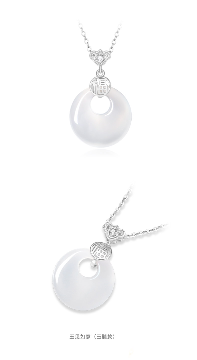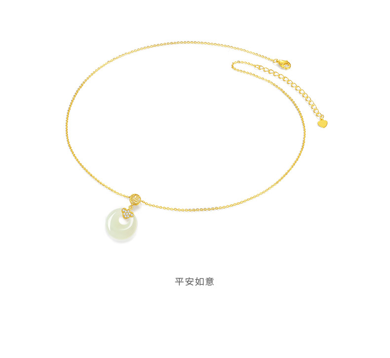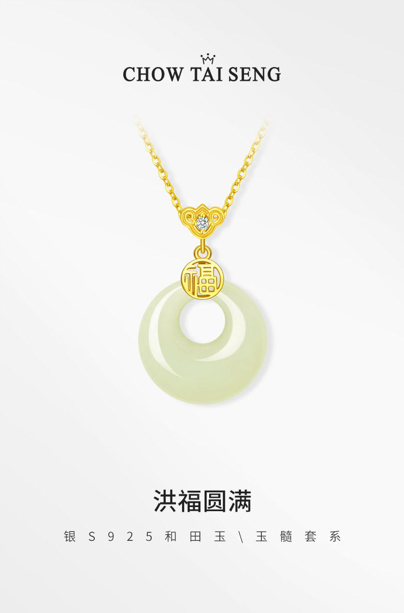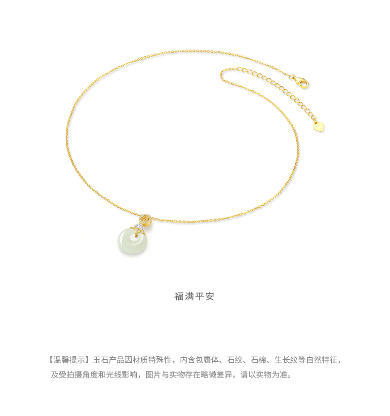 周大生平安扣和田玉纯银项链女款新中式国风锁骨链七夕礼物送女友