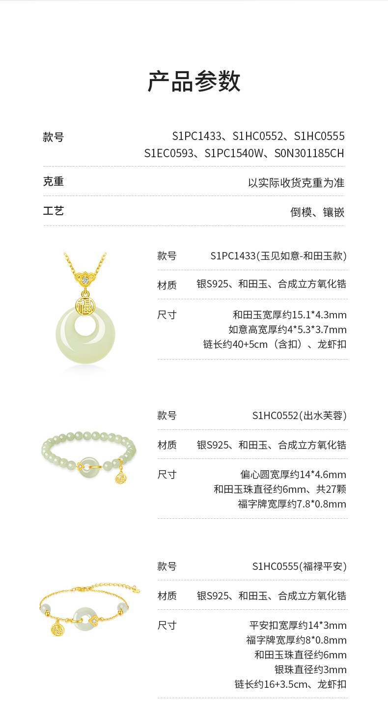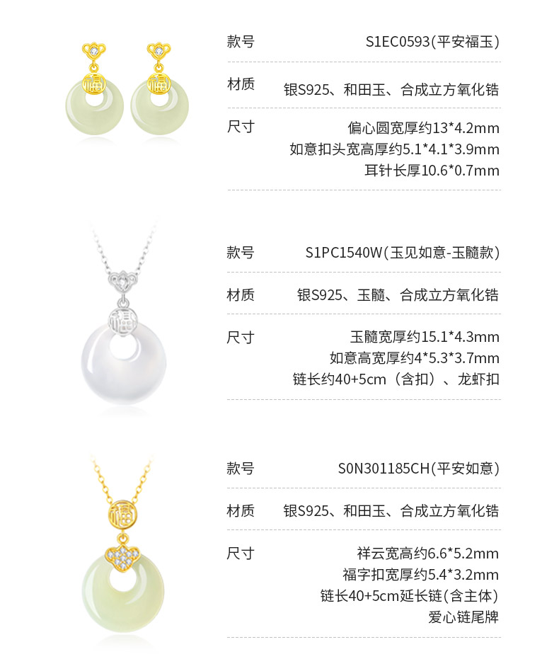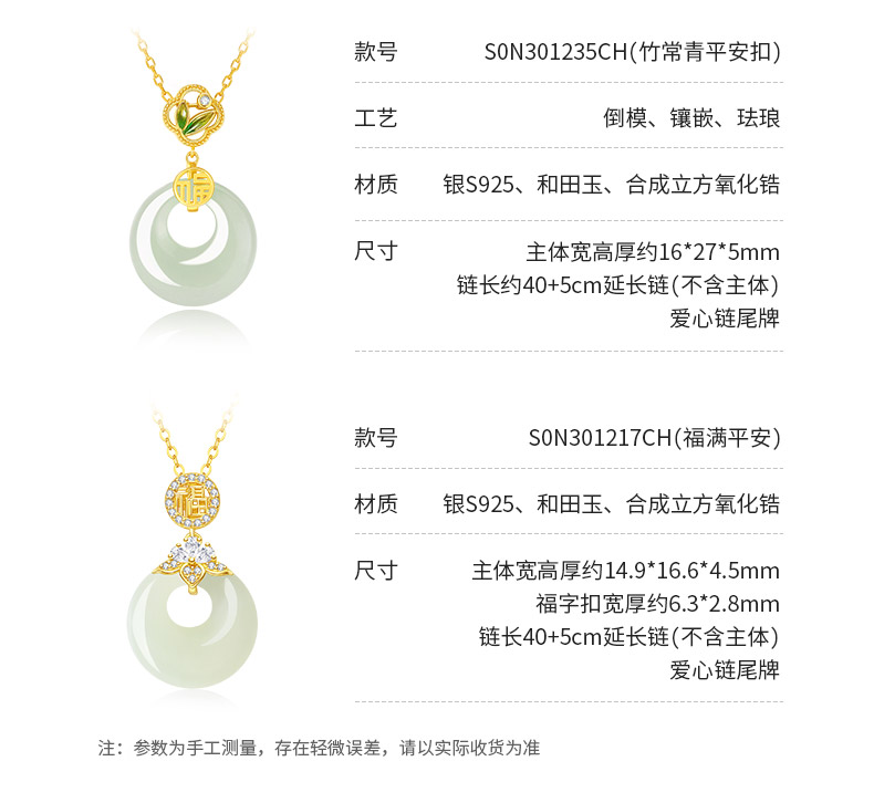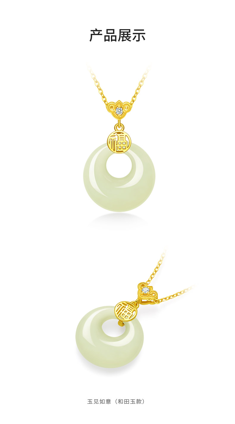 周大生平安扣和田玉纯银项链女款新中式国风锁骨链七夕礼物送女友