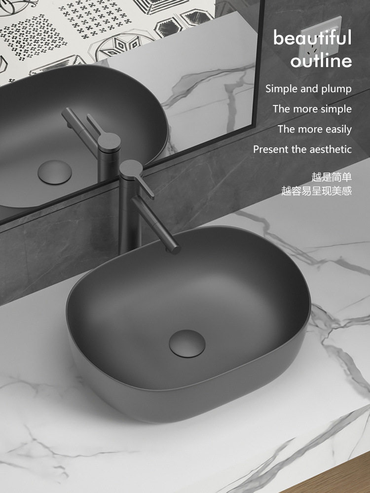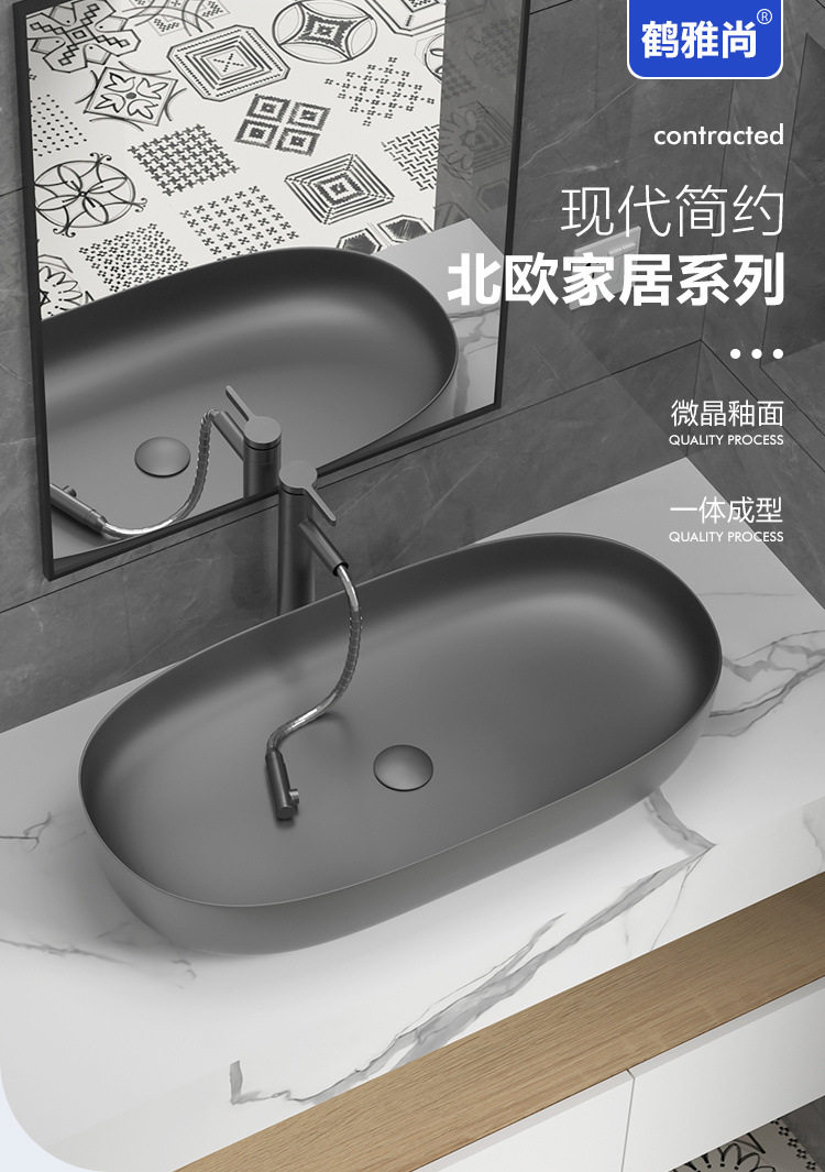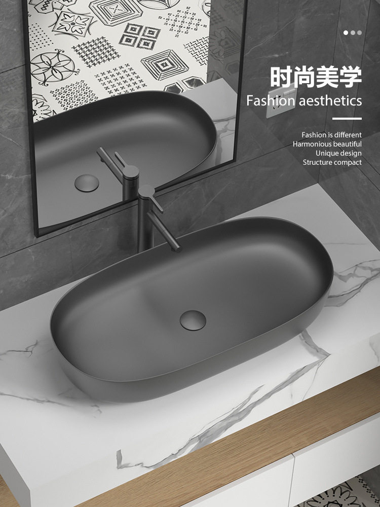 灰色盆枪尺寸洗手盆椭圆洗脸盆卡其色卫生间陶瓷法式艺术台上盆大
