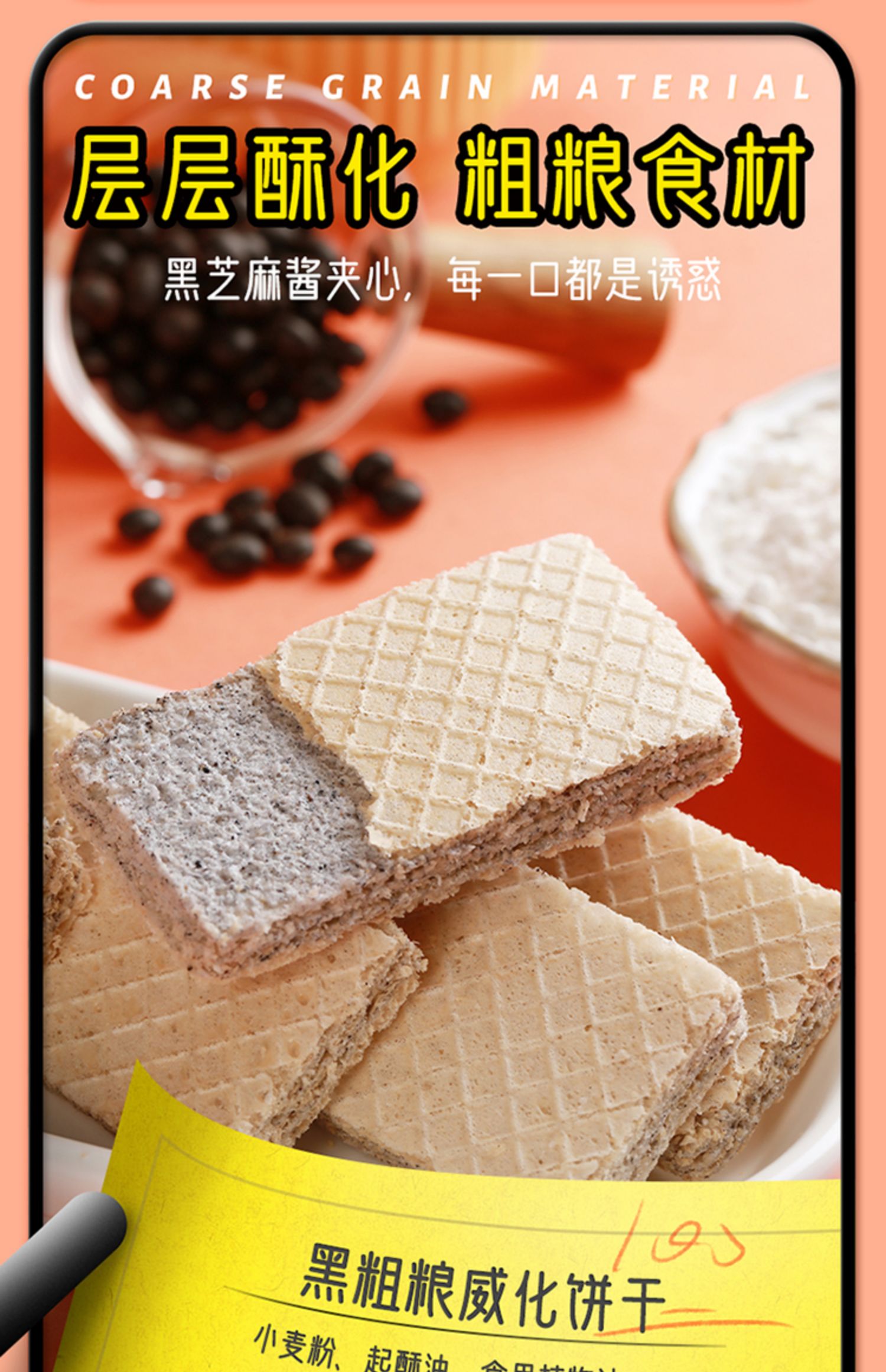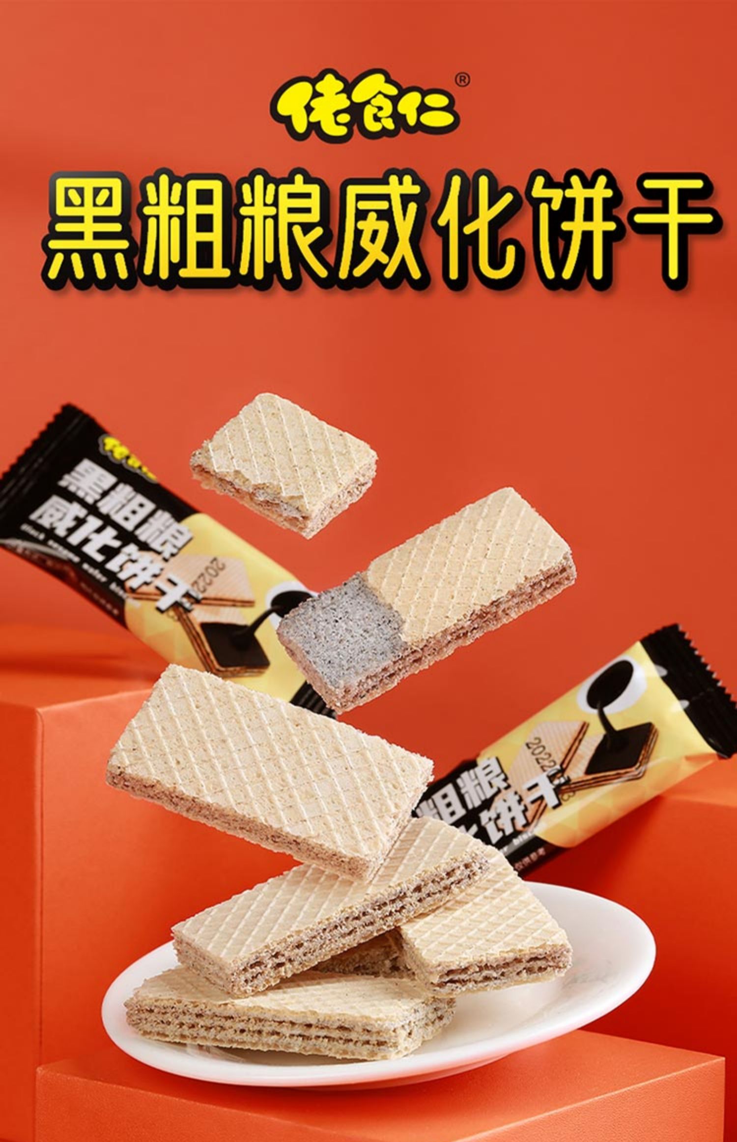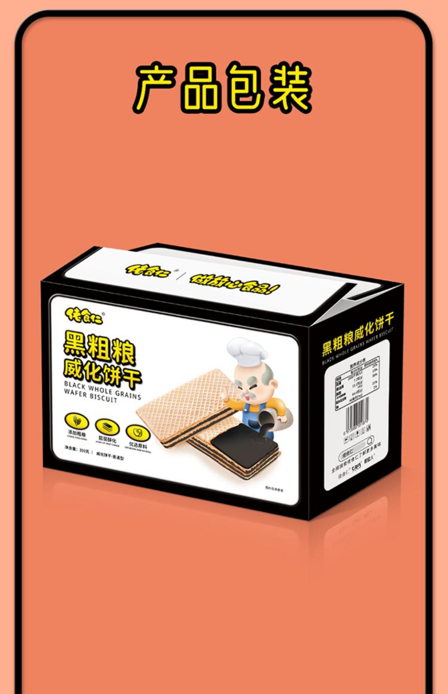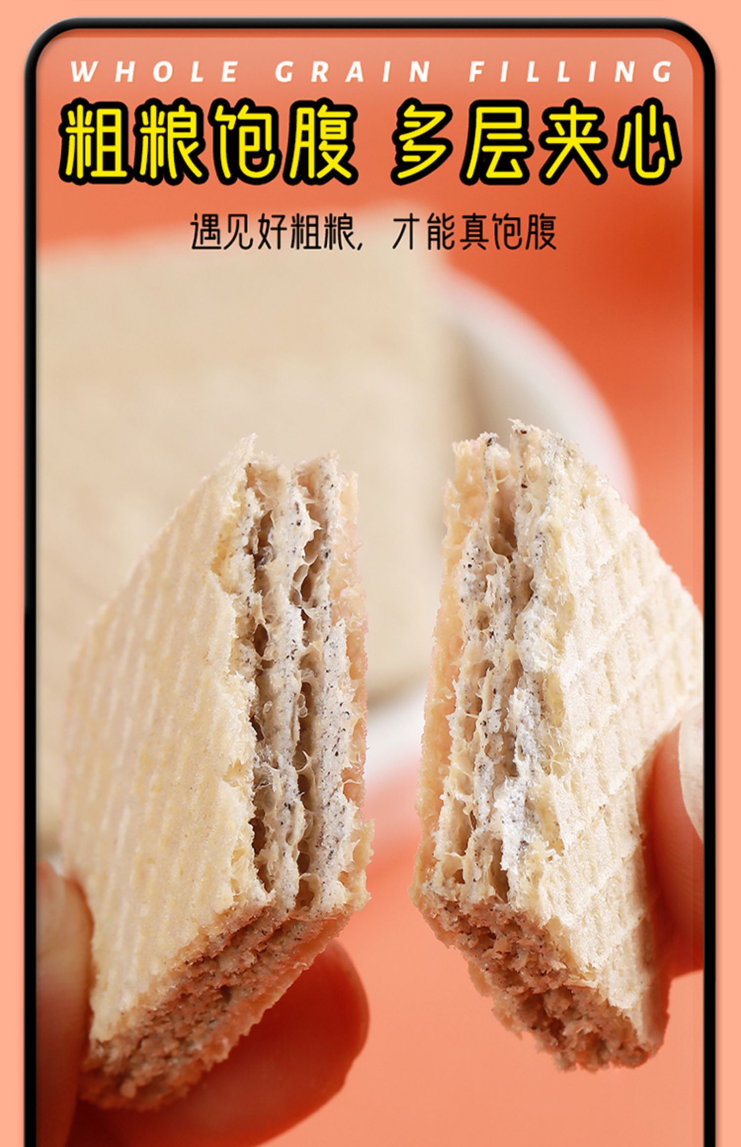 佬食仁黑粗粮威化饼整箱健康零食五谷杂粮多口味早餐夹心饼干面包