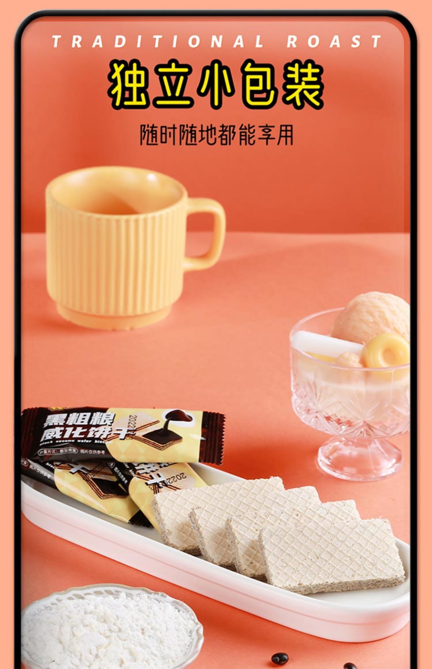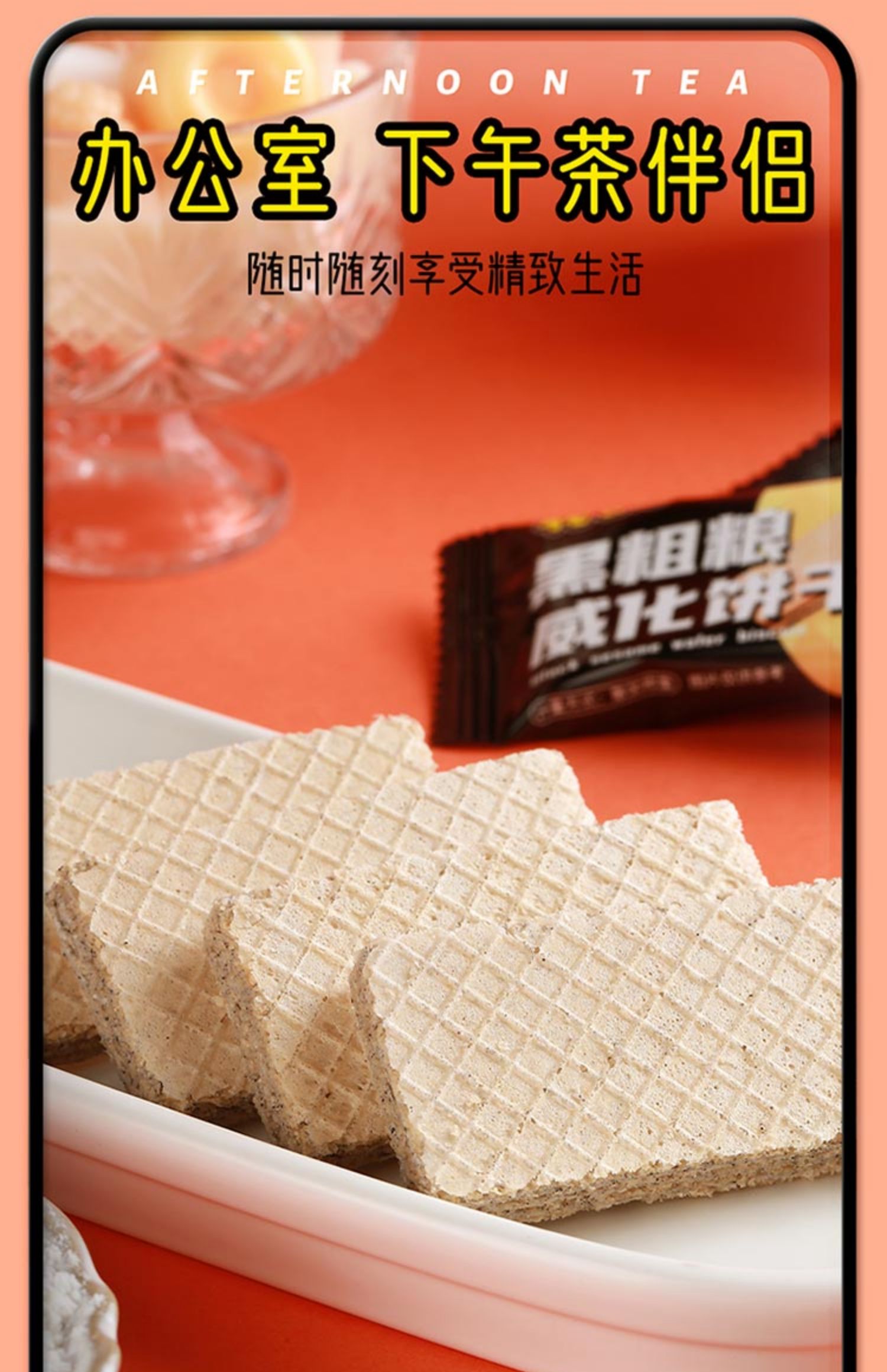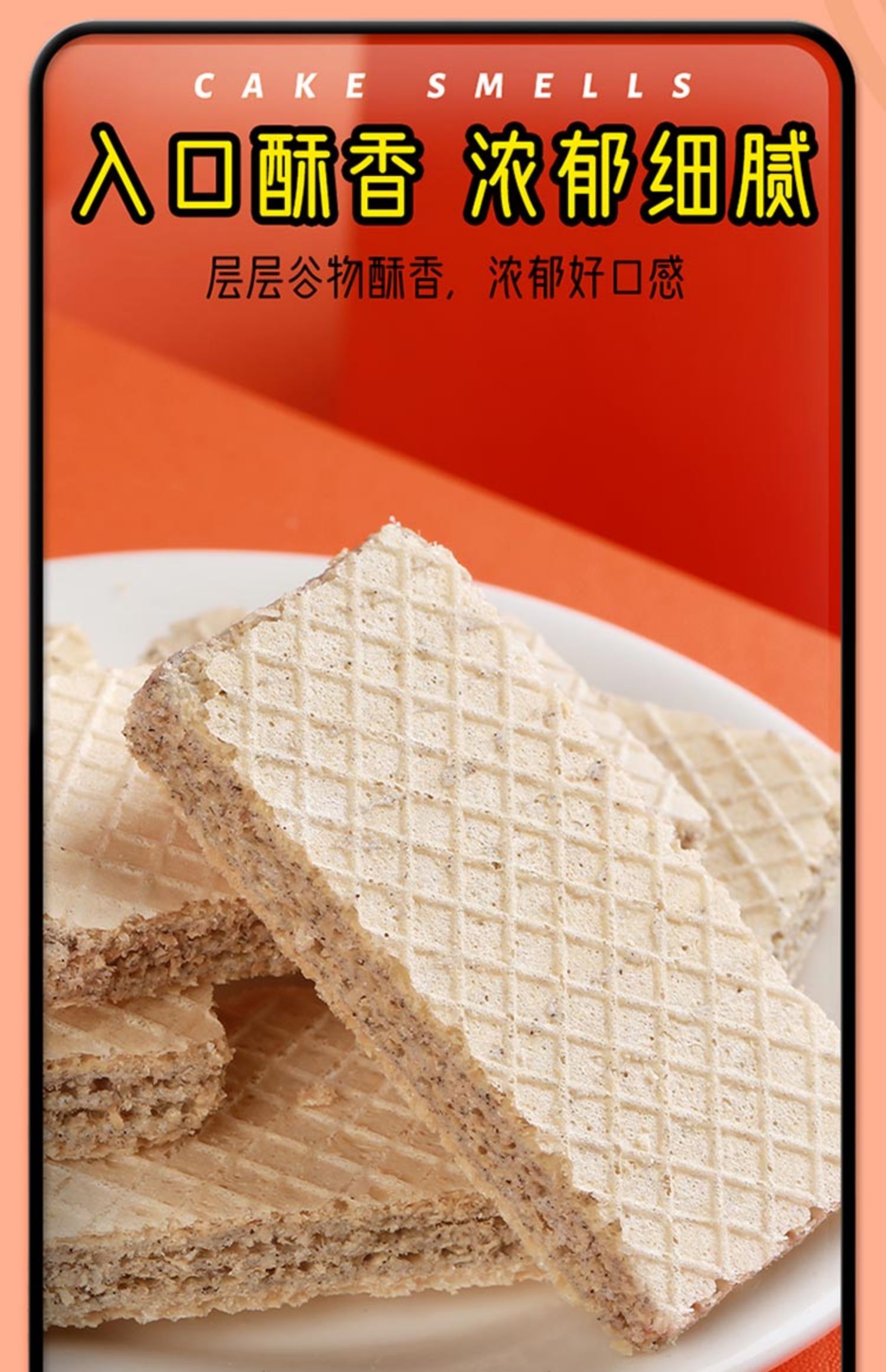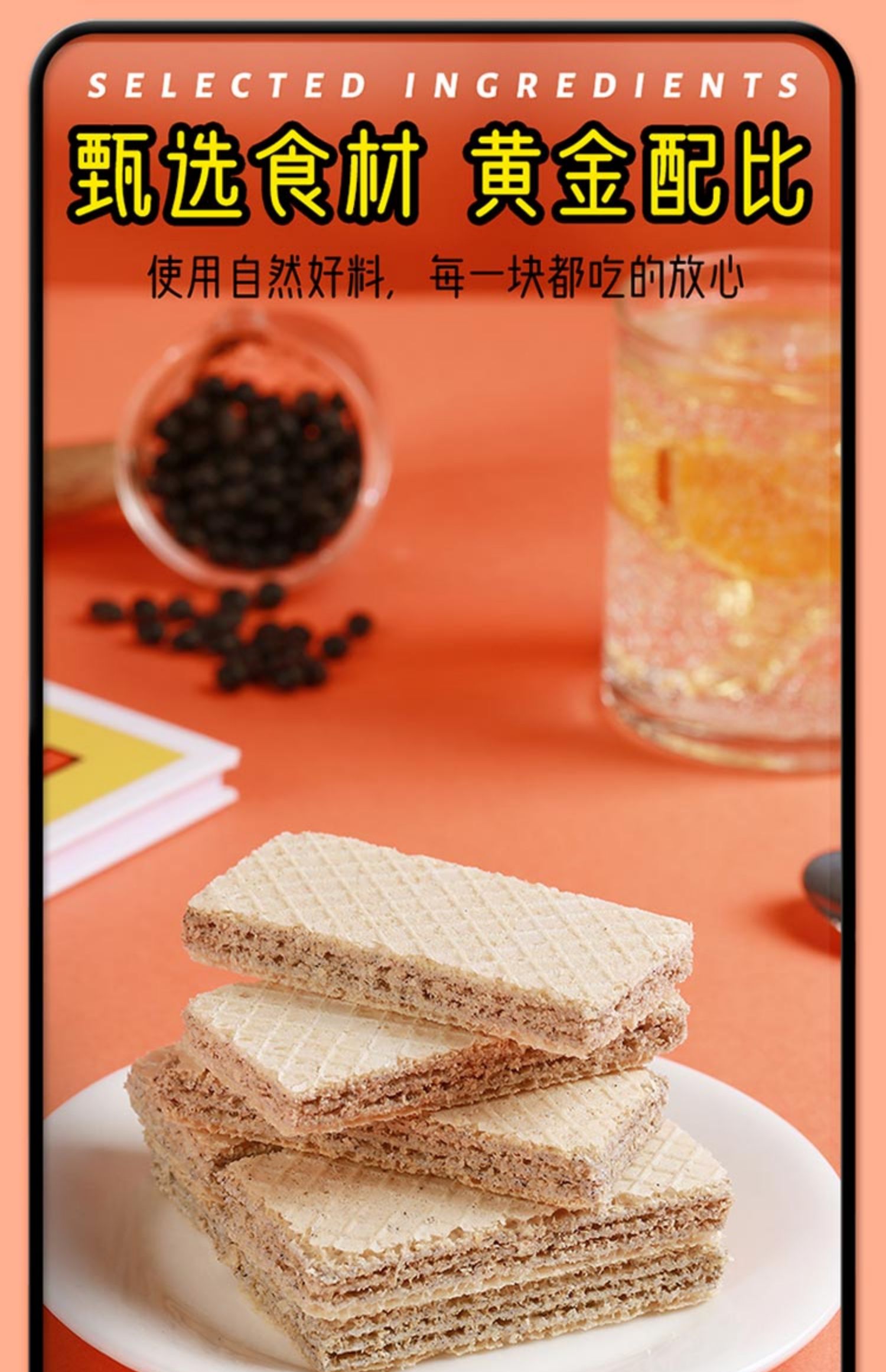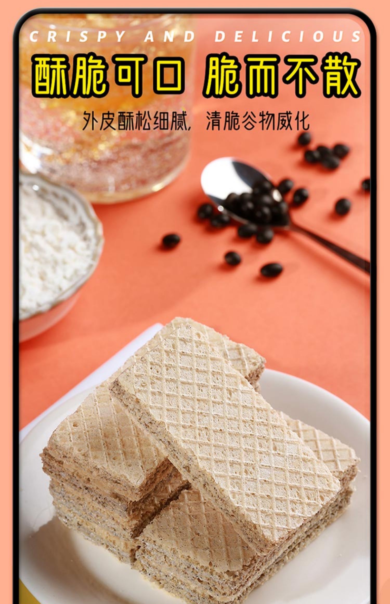 佬食仁黑粗粮威化饼整箱健康零食五谷杂粮多口味早餐夹心饼干面包