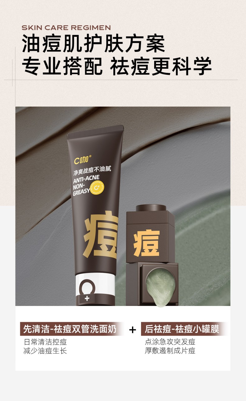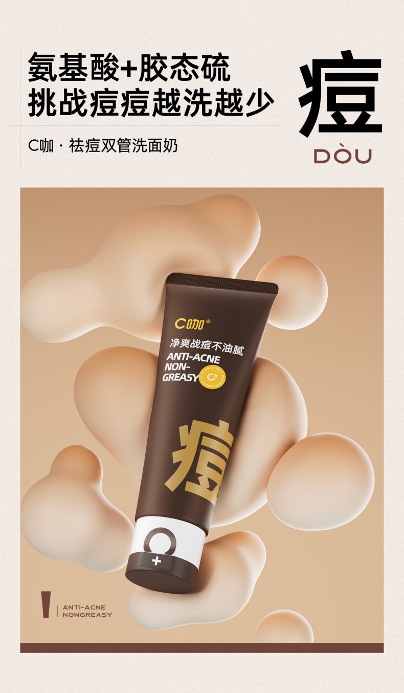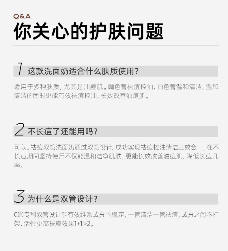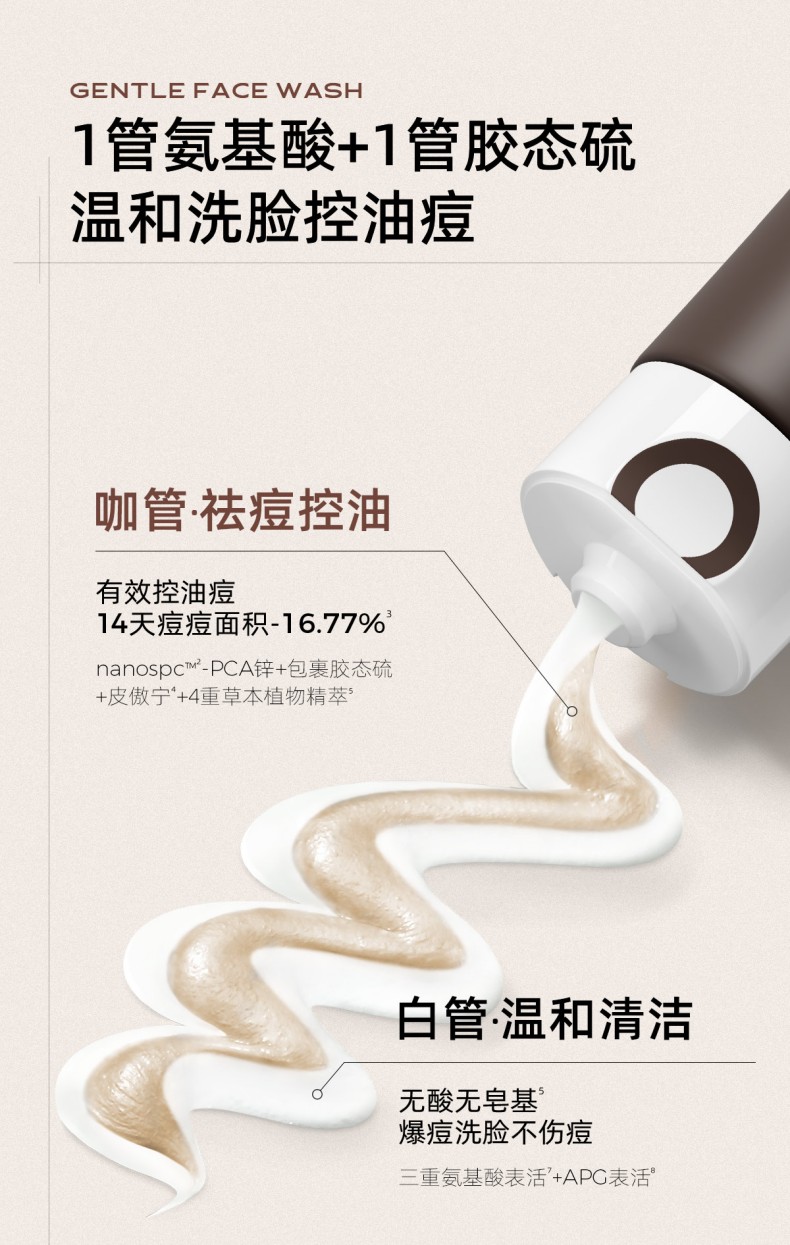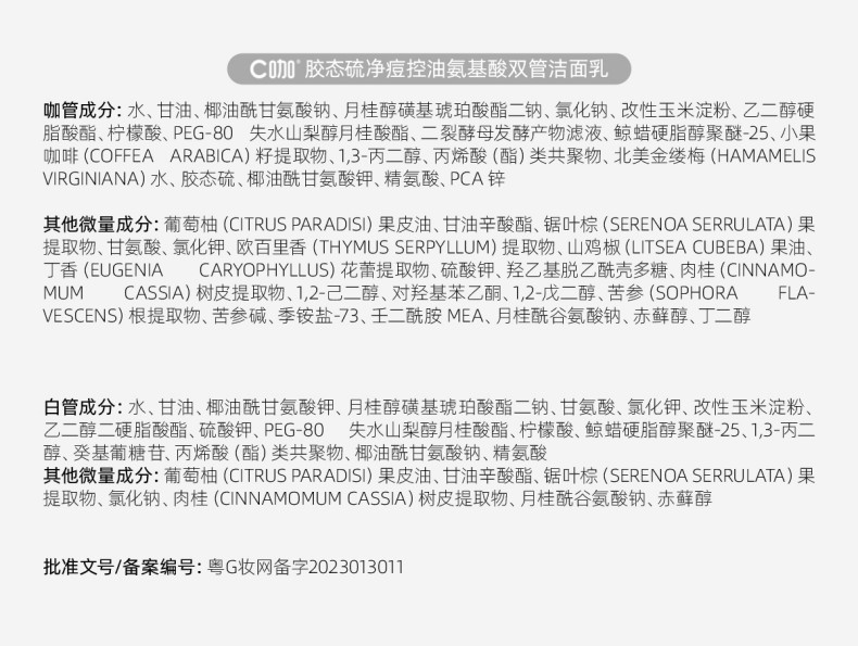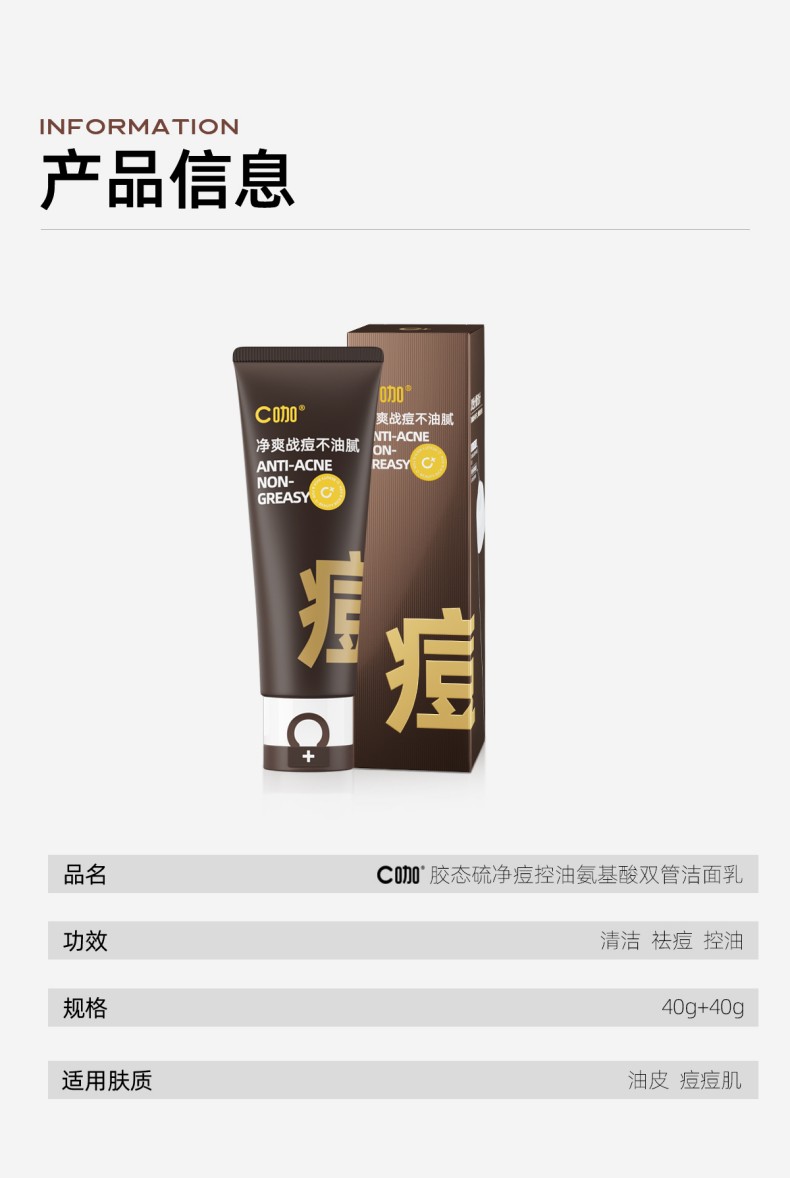 C咖胶态硫净痘控油氨基酸双管洁面乳2支装(40g+40g洗面奶 80g*2支,送痘双管旅行装2g*5包/盒*1)