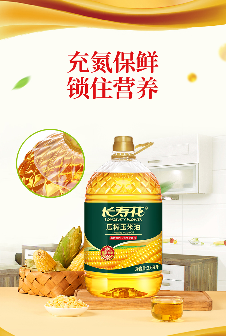 长寿花压榨玉米油3.68L*2桶非转基因物理压榨一级食用油烘焙油植物油
