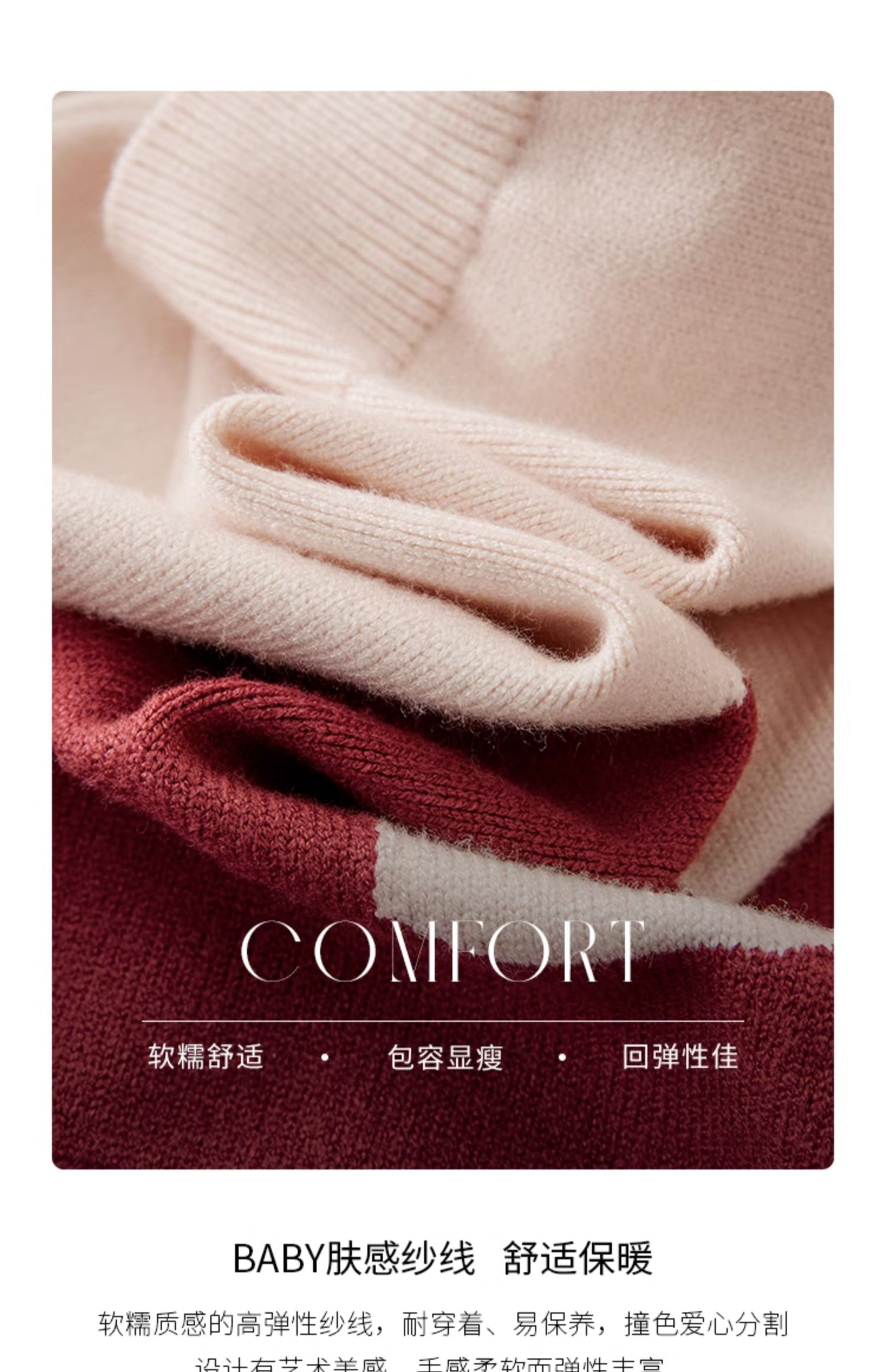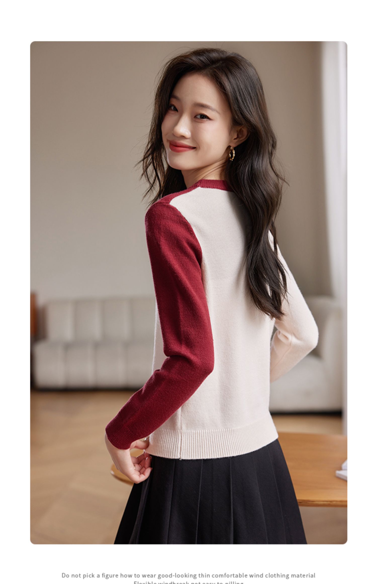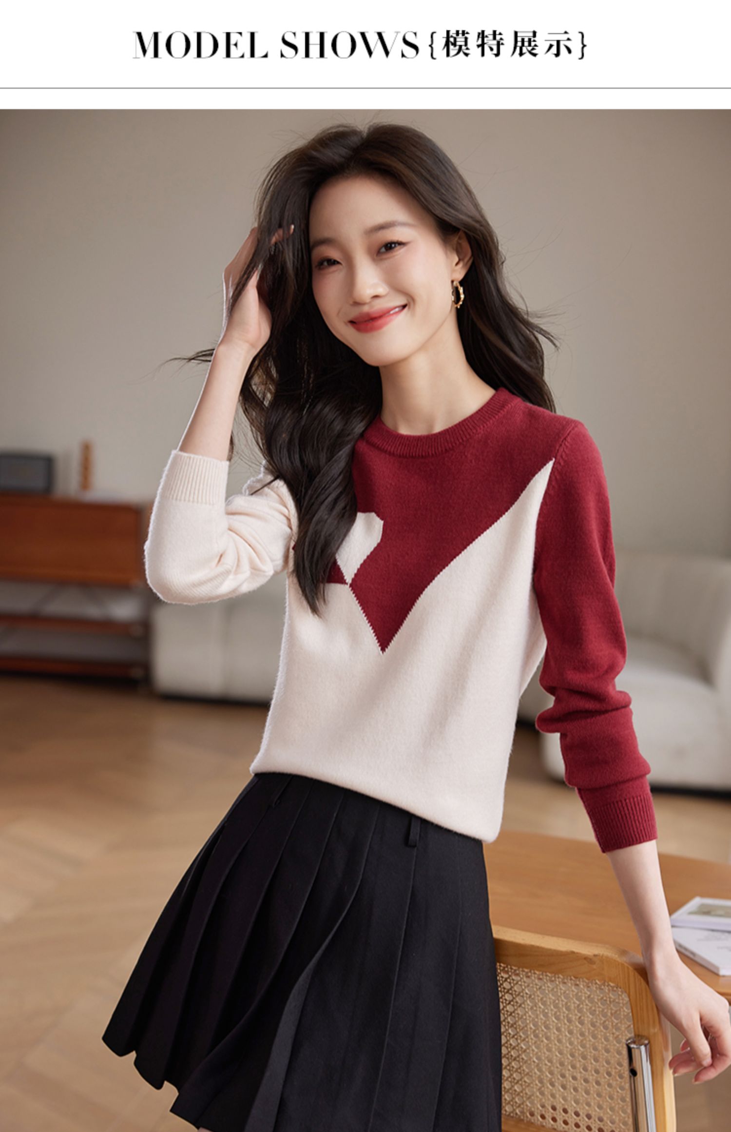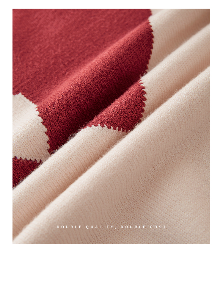 【年终特卖】熙世界红色撞色拼接慵懒毛衣女高级感宽松圆领针织衫2025秋冬新款