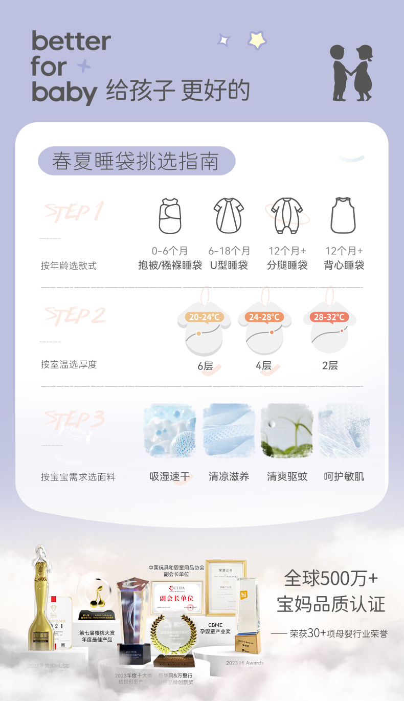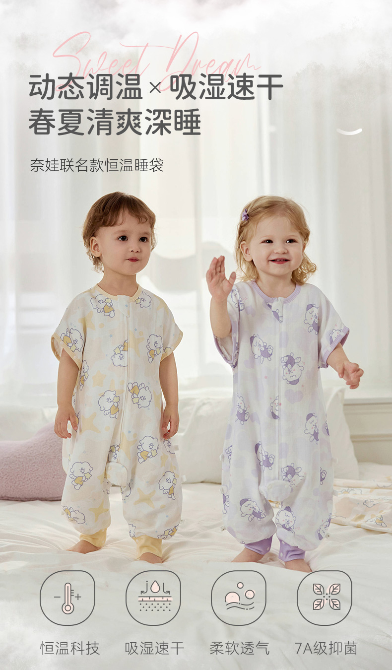 【2025年春夏新品】i-baby奈娃纱布恒温分腿睡袋儿童抑菌夏季薄款恒温宝宝防踢被四季
