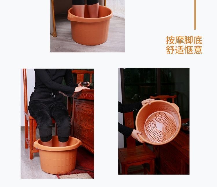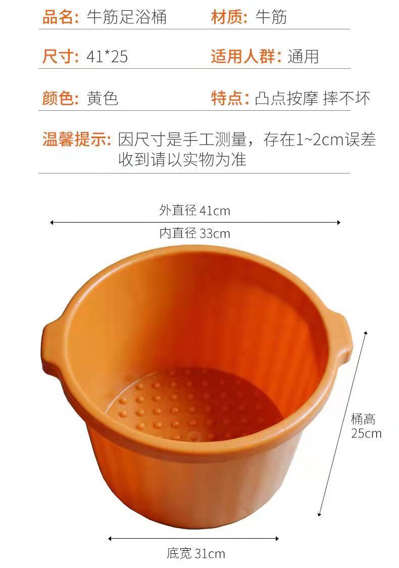 过小腿塑料牛筋穴位按摩泡脚桶加高加厚按摩足浴店专用足浴盆加深牛筋洗脚桶 25cm