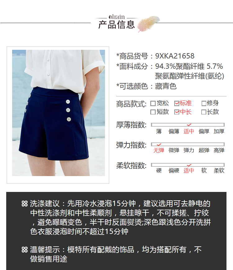 - “精致”是欧芮儿olrain品牌文化的核心,欧芮儿认为,精致的女人,不但要外在动人,更要内在迷人,内外兼修,有魅力、有气质、有内涵,自信而不自傲,优雅而不矫揉,自有万种风情而不轻浮,更不故作矜持。