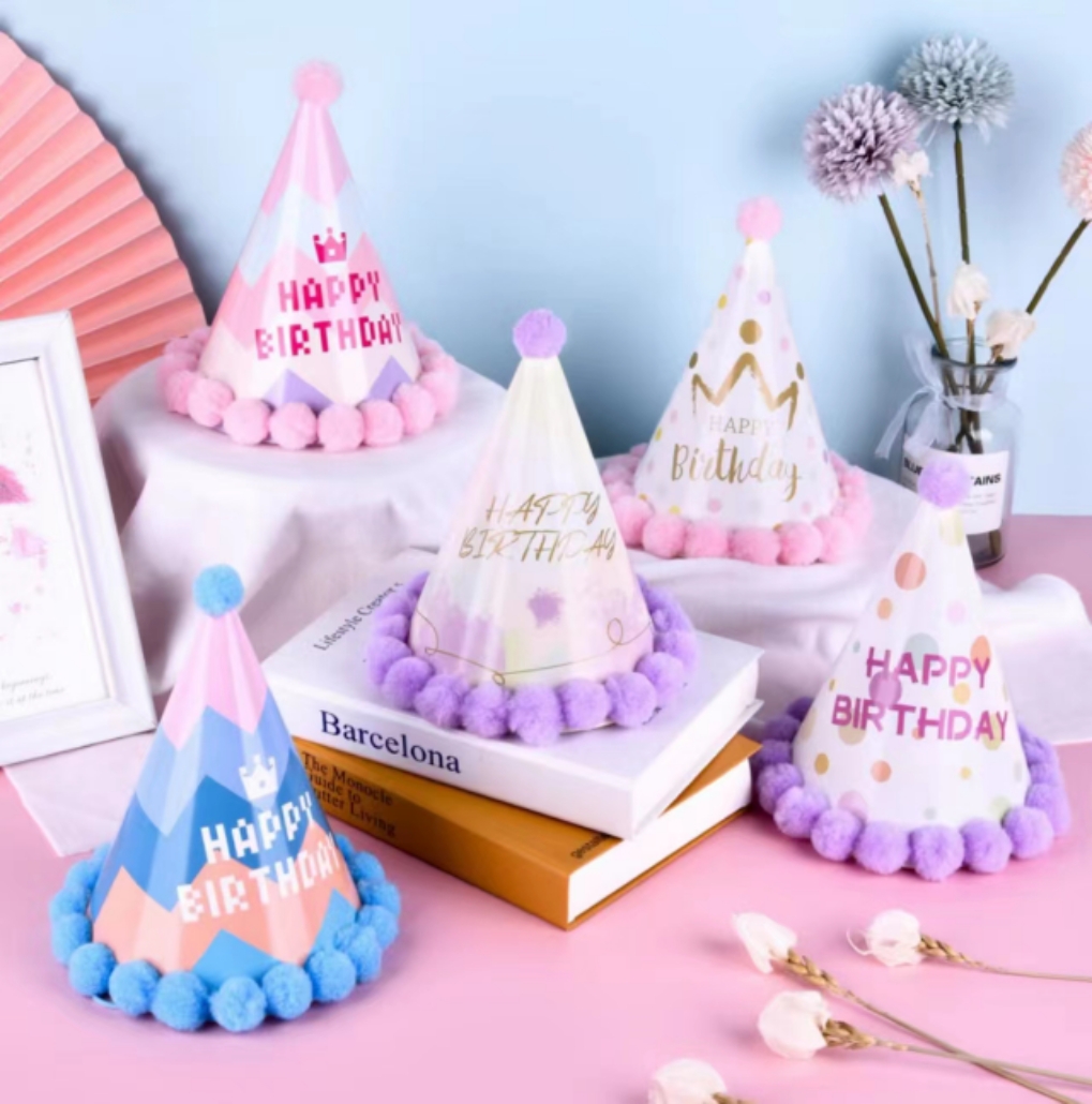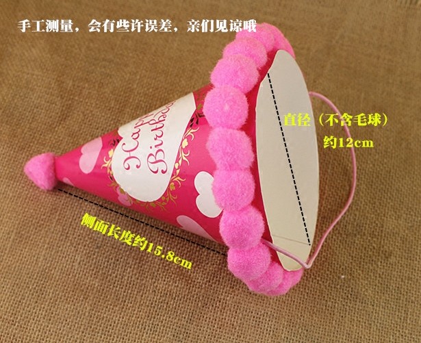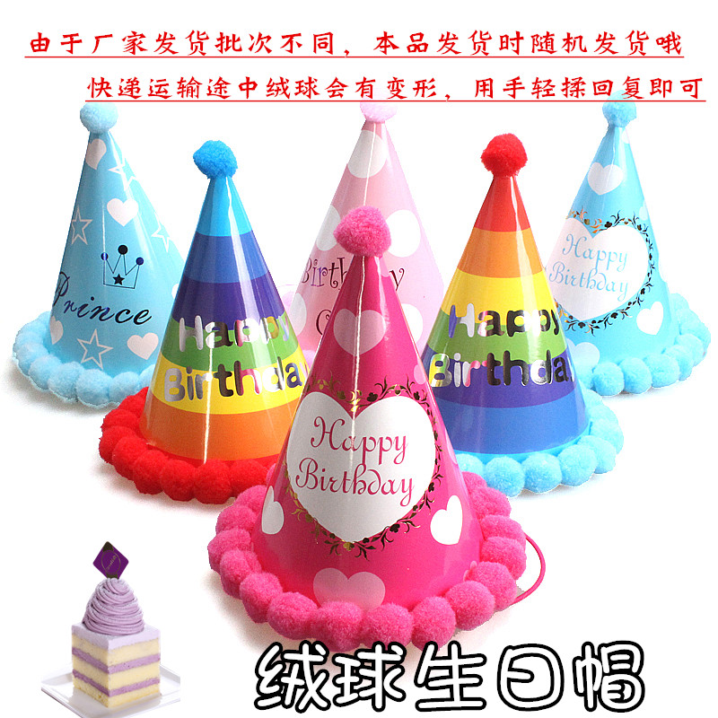 绒球生日帽 宝宝儿童成人卡通可爱生日帽 毛球尖角派对帽子