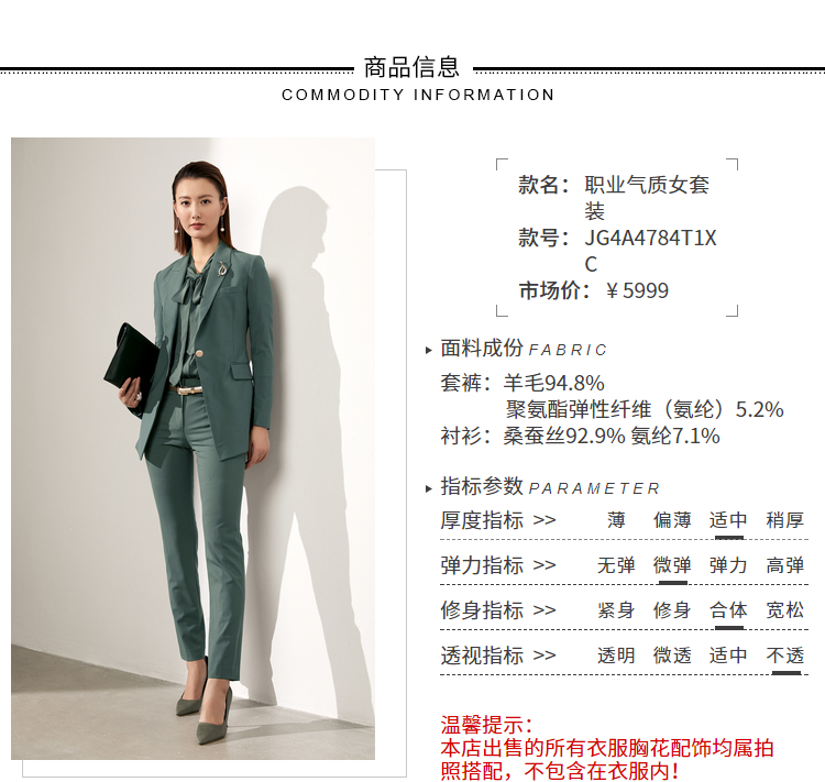 颈袖添香-套裤-JG4A4784T1XC “华尔街精英” 女裤套装 羊毛
