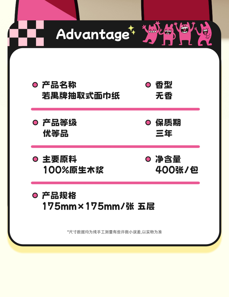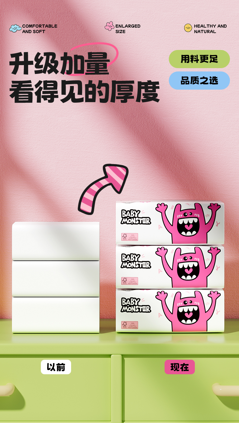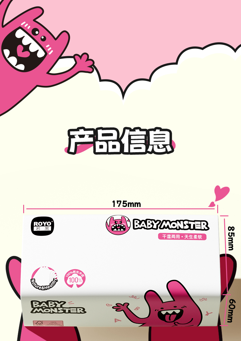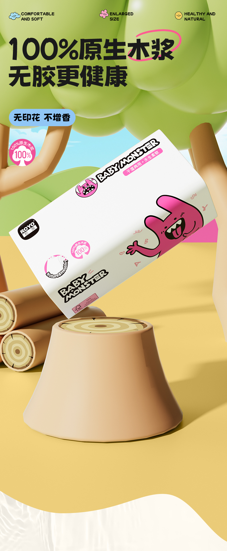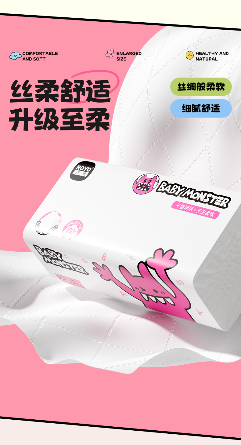 若禺软抽纸小怪兽系列100%原生木浆5层加厚400张/包1件20包湿水可用柔软舒适RR2109