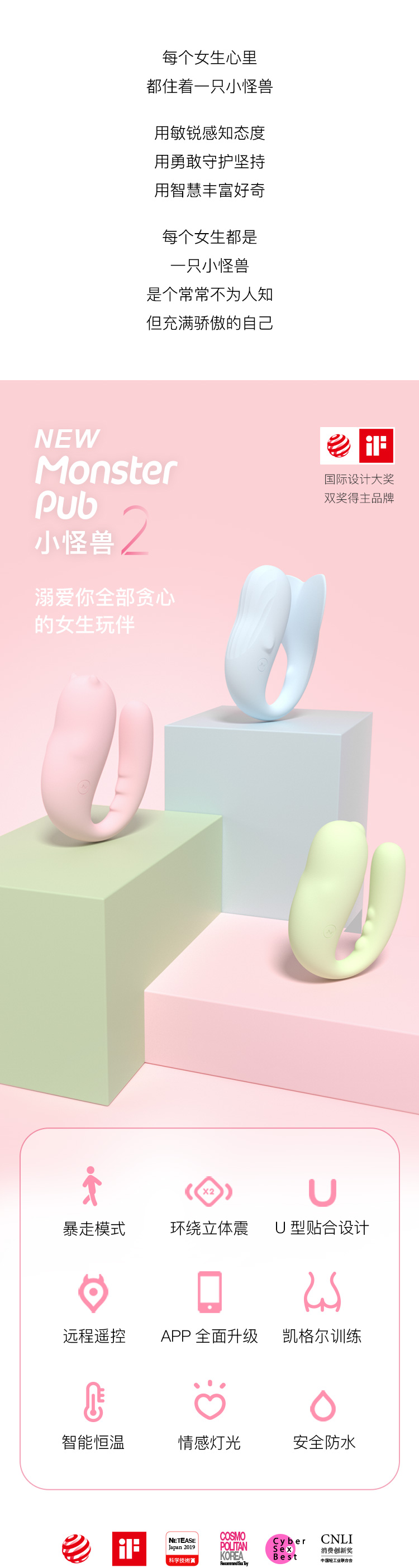 【小怪兽2代青春版】Monster Pub2蜜曰小怪兽远程遥控智能情趣跳蛋静音无线震动-怪兽优选